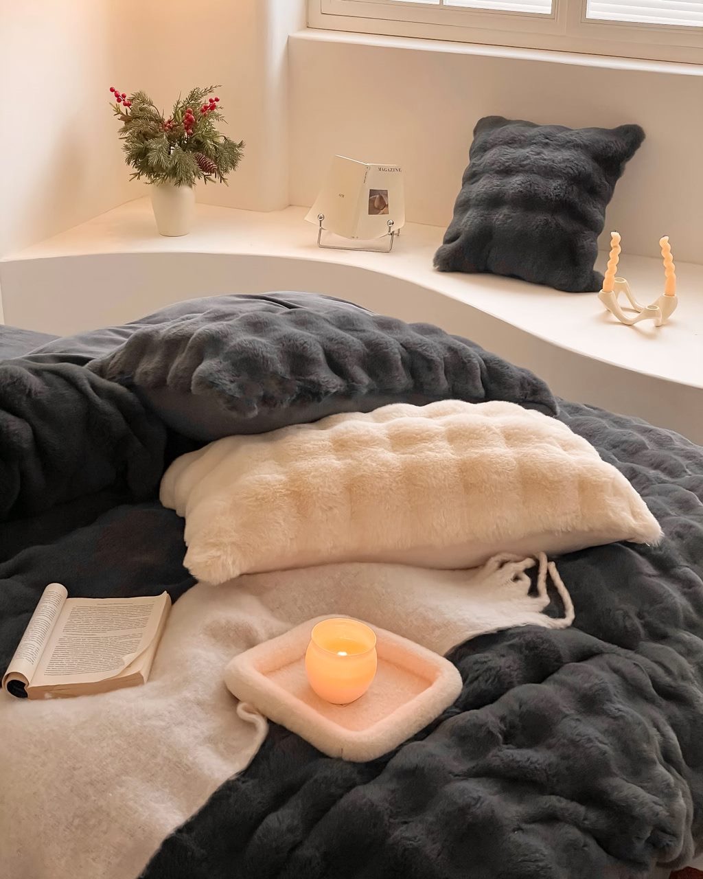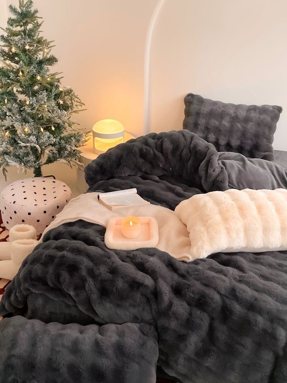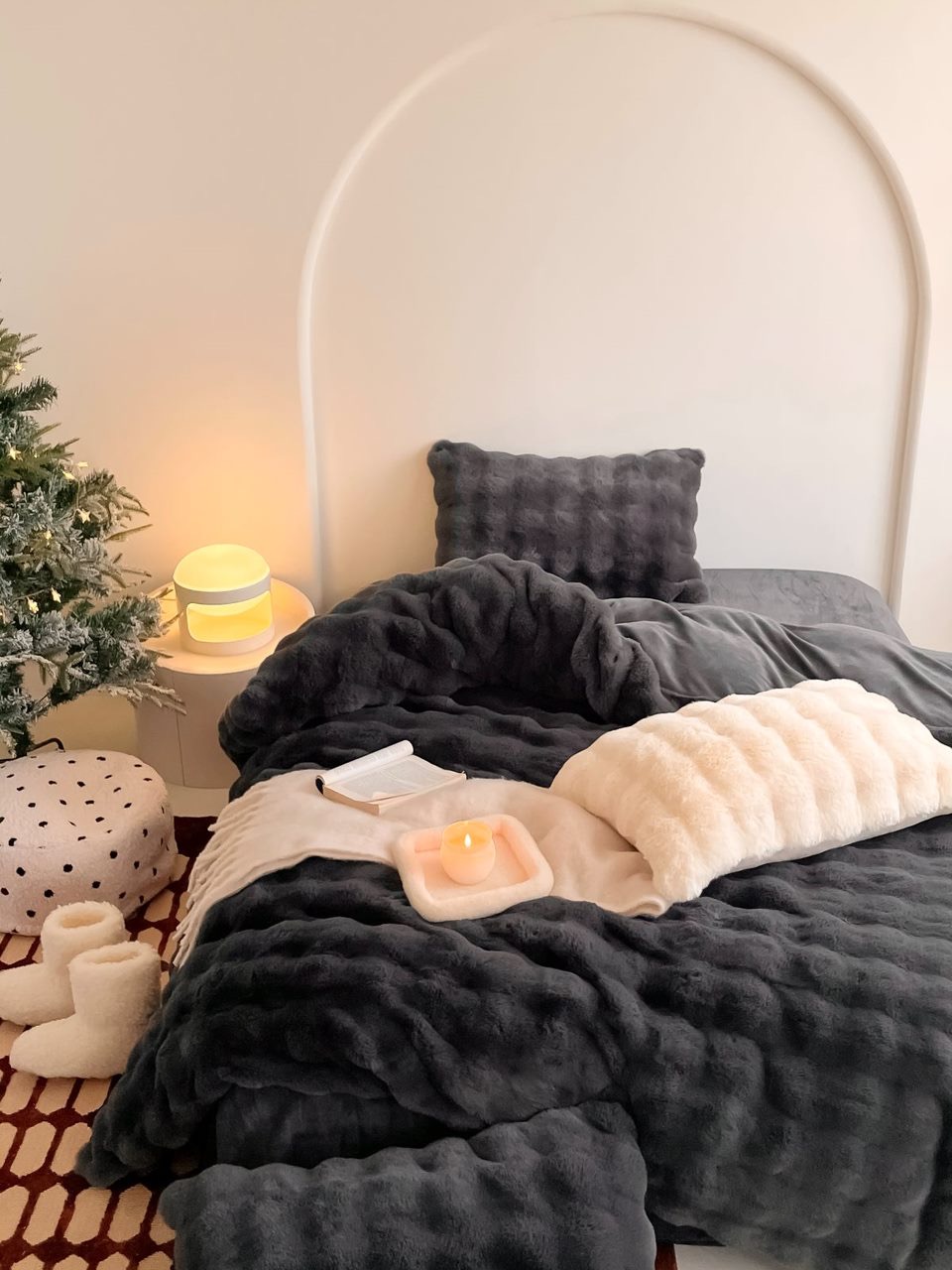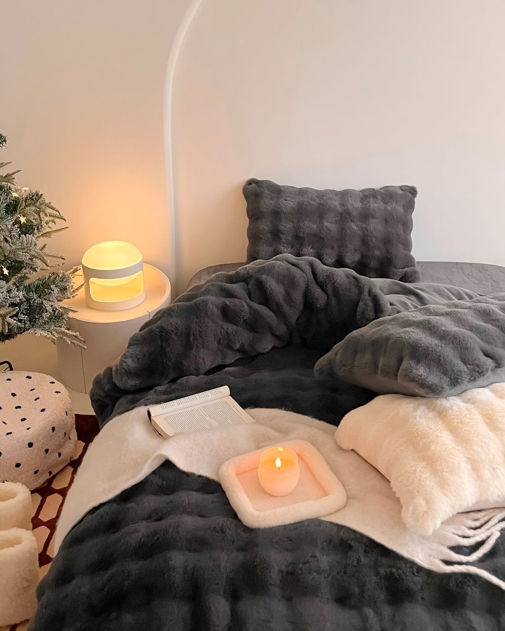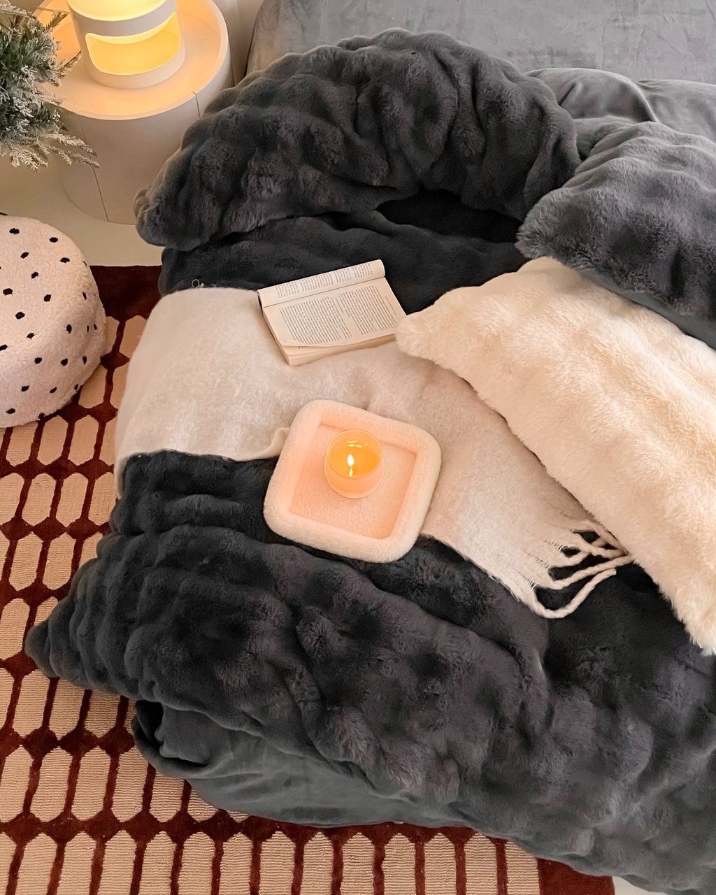 Lenjerie de Pat Dublu din Blanita Artificiala de Iepure – Rasfatul Suprem in Fiecare Noapte!Imagineaza-ti cum te scufunzi intr-un pat moale, pufos, calduros… O senzatie atat de placuta incat parca te imbratiseaza o blanita fina de iepure. Asta iti ofera lenjeria noastra de pat dublu din blanita artificiala premium – lux, confort si un somn linistit, noapte de noapte! ✔ Ce face aceasta lenjerie atat de speciala?● Blanita artificiala identica cu cea naturala – Textura ultra-fina, recreat