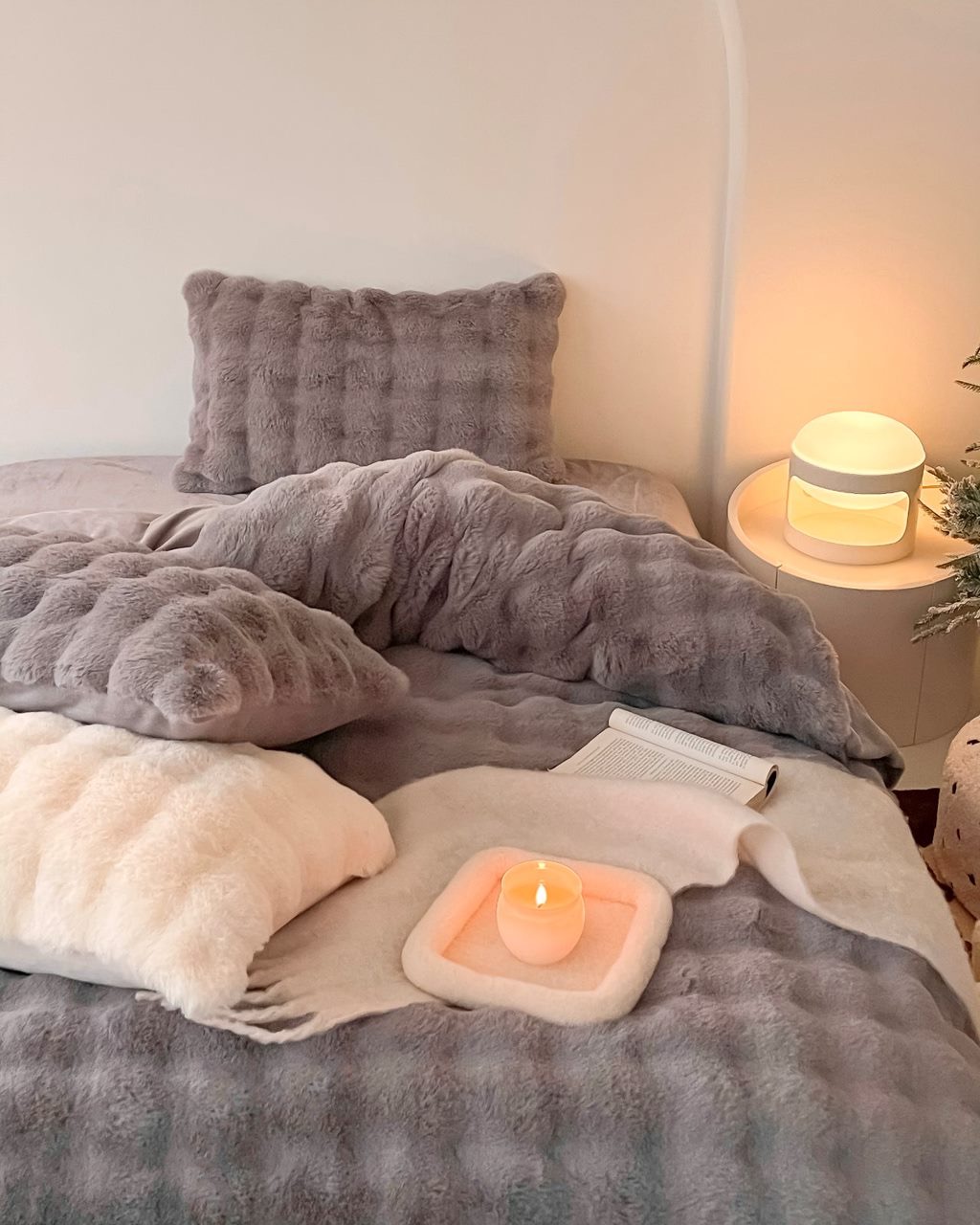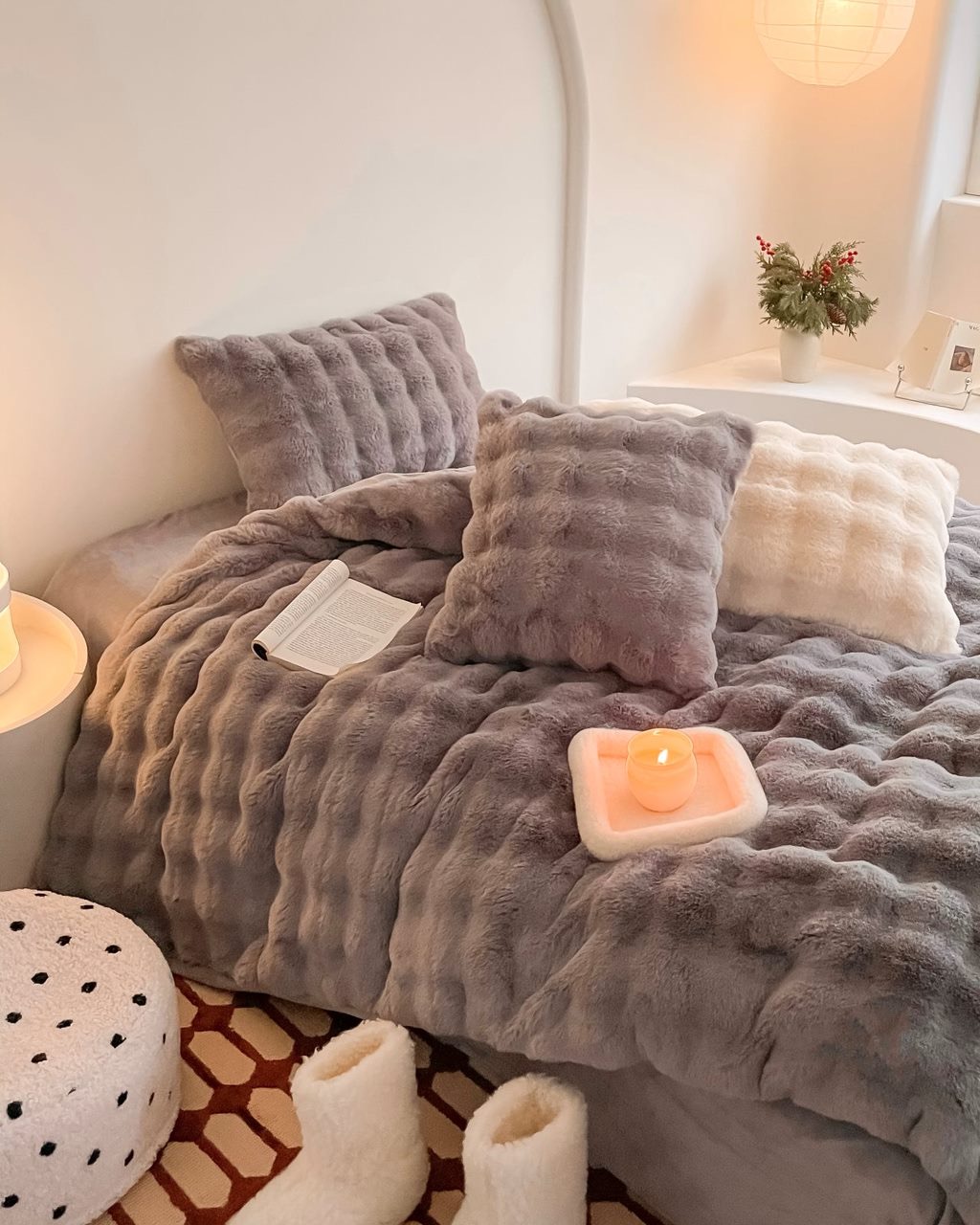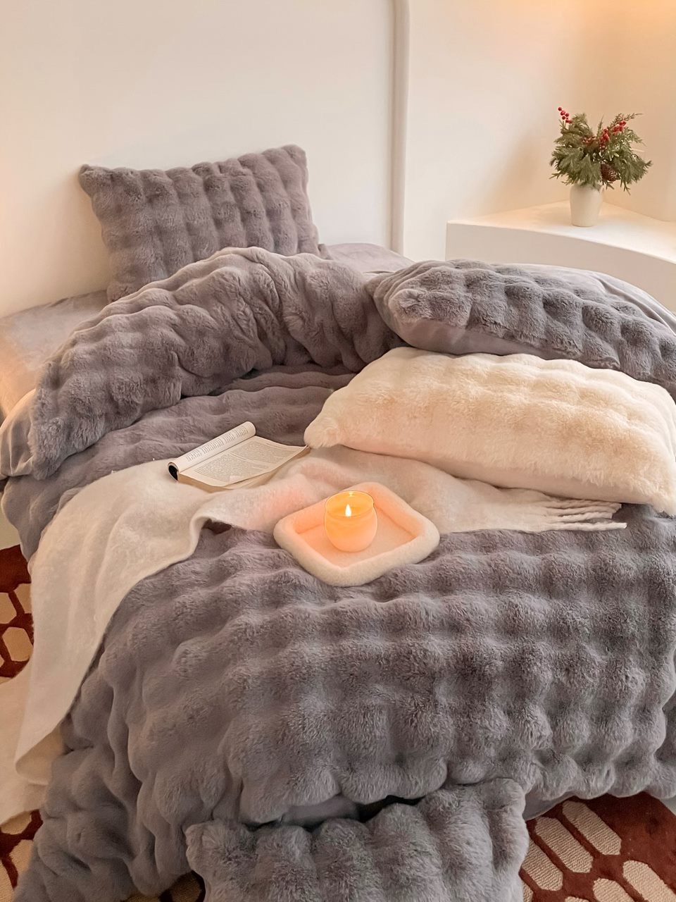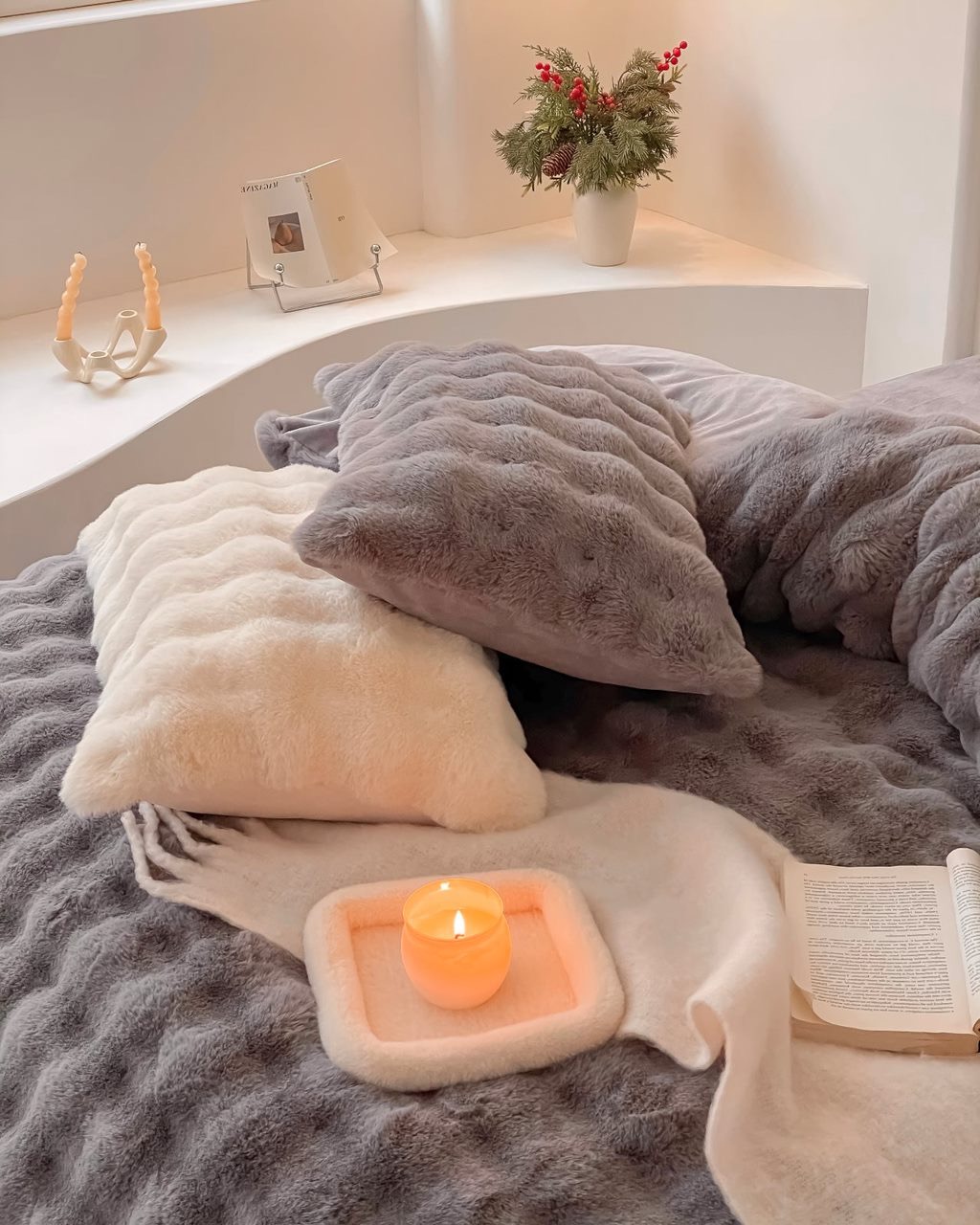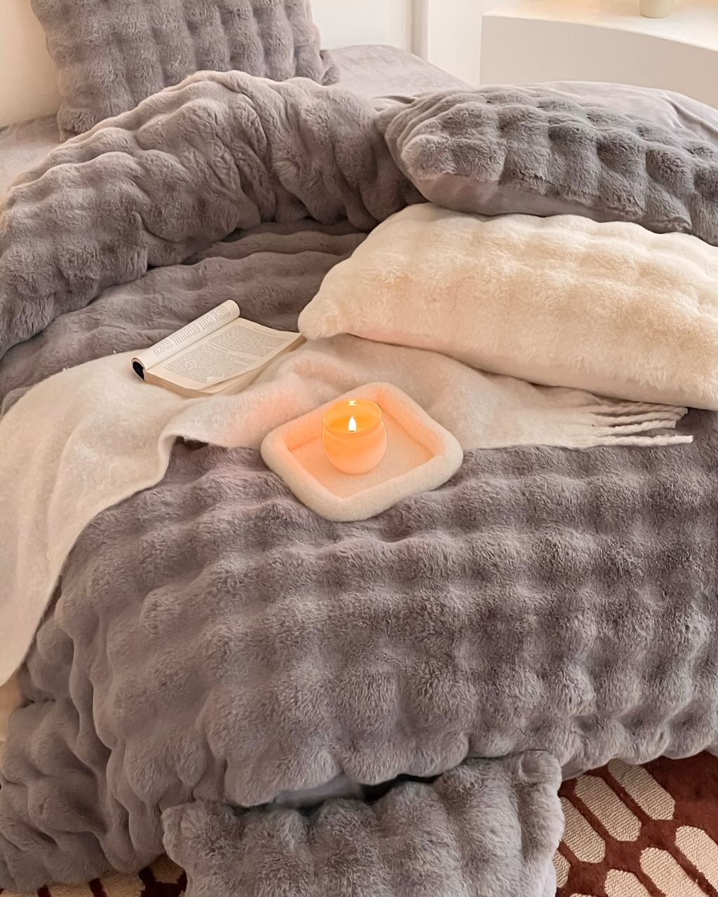 Lenjerie de Pat Dublu din Blanita Artificiala de Iepure – Rasfatul Suprem in Fiecare Noapte!Imagineaza-ti cum te scufunzi intr-un pat moale, pufos, calduros… O senzatie atat de placuta incat parca te imbratiseaza o blanita fina de iepure. Asta iti ofera lenjeria noastra de pat dublu din blanita artificiala premium – lux, confort si un somn linistit, noapte de noapte! ✔ Ce face aceasta lenjerie atat de speciala?● Blanita artificiala identica cu cea naturala – Textura ultra-fina, recreat