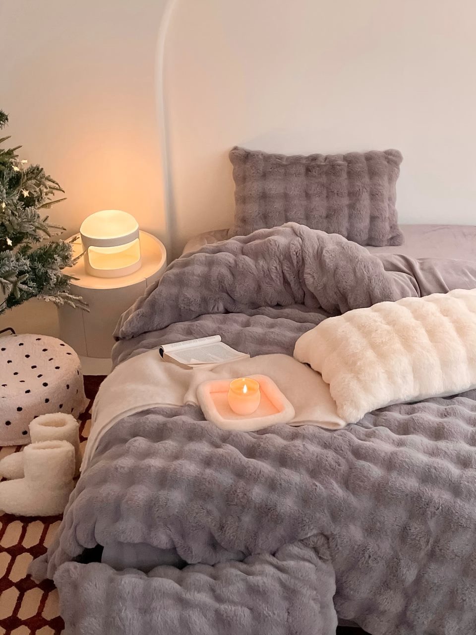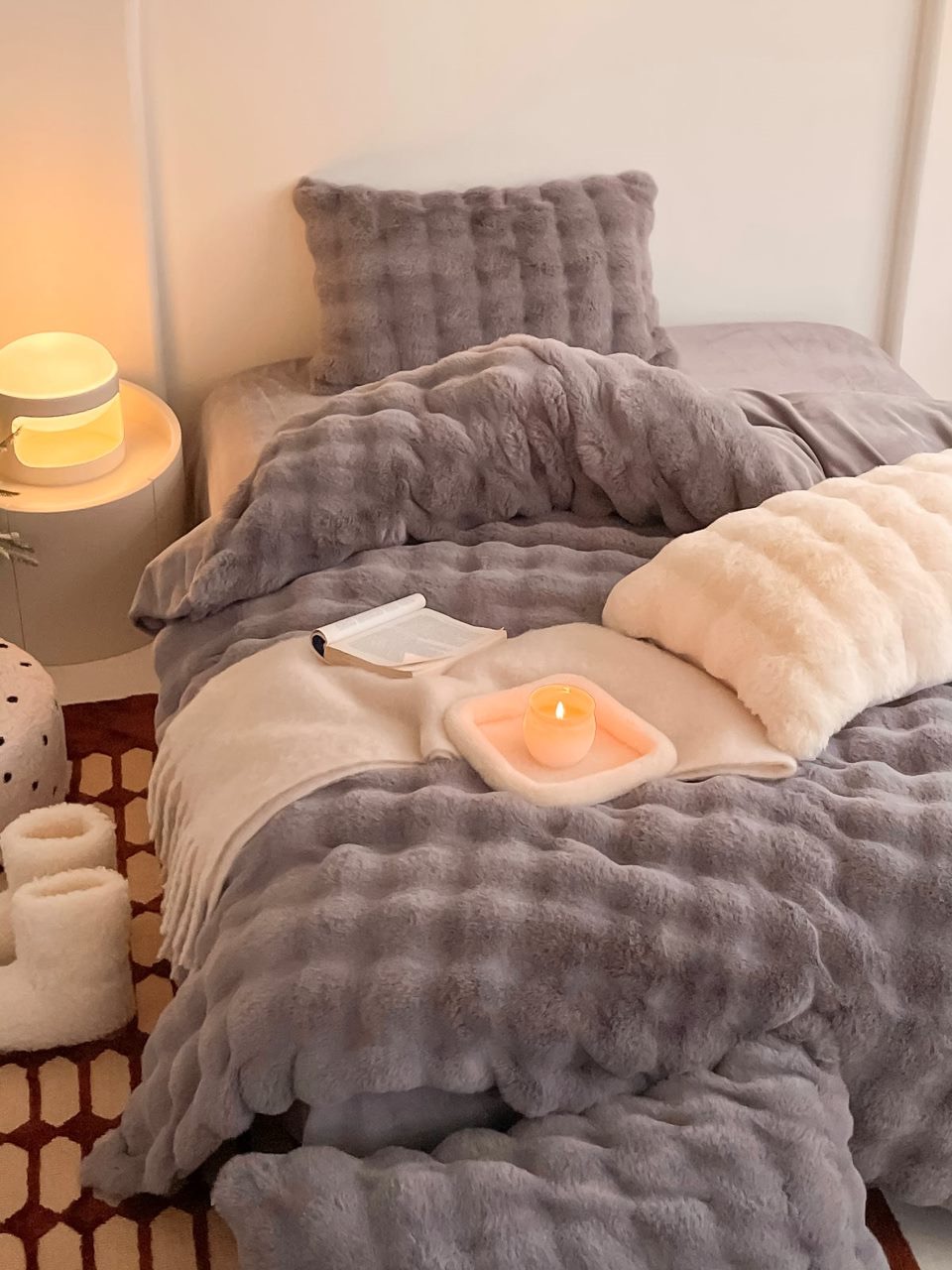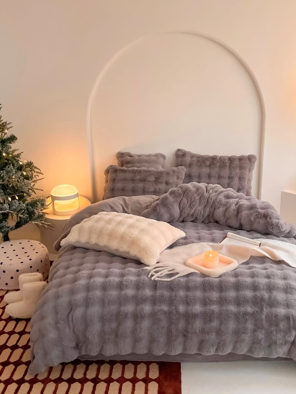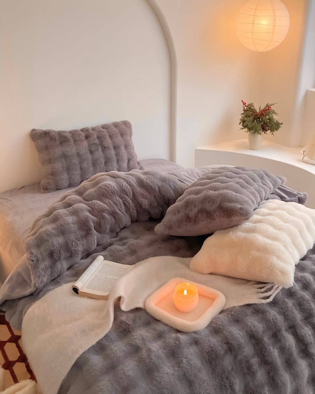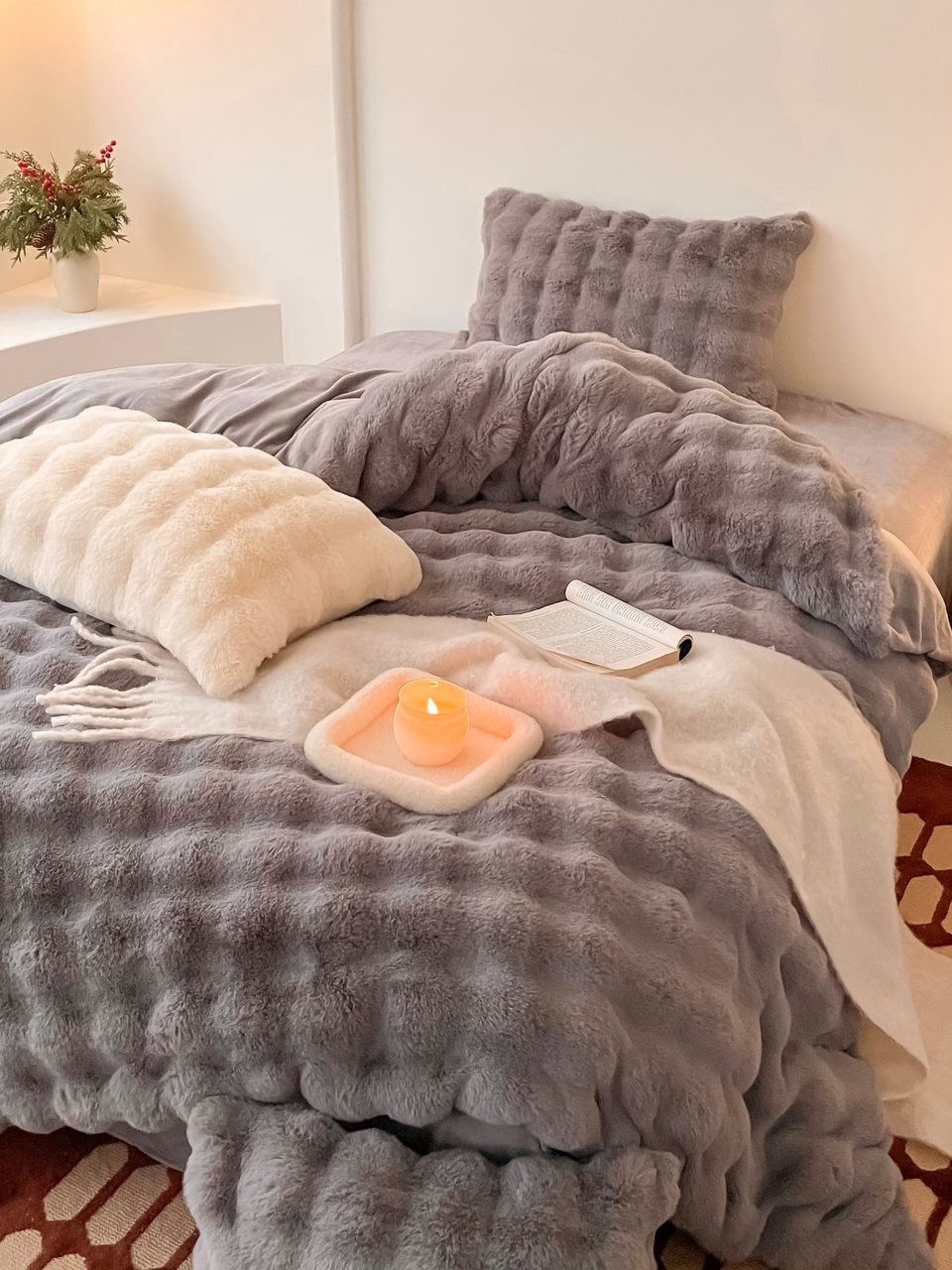 Lenjerie de Pat Dublu din Blanita Artificiala de Iepure – Rasfatul Suprem in Fiecare Noapte!Imagineaza-ti cum te scufunzi intr-un pat moale, pufos, calduros… O senzatie atat de placuta incat parca te imbratiseaza o blanita fina de iepure. Asta iti ofera lenjeria noastra de pat dublu din blanita artificiala premium – lux, confort si un somn linistit, noapte de noapte! ✔ Ce face aceasta lenjerie atat de speciala?● Blanita artificiala identica cu cea naturala – Textura ultra-fina, recreat