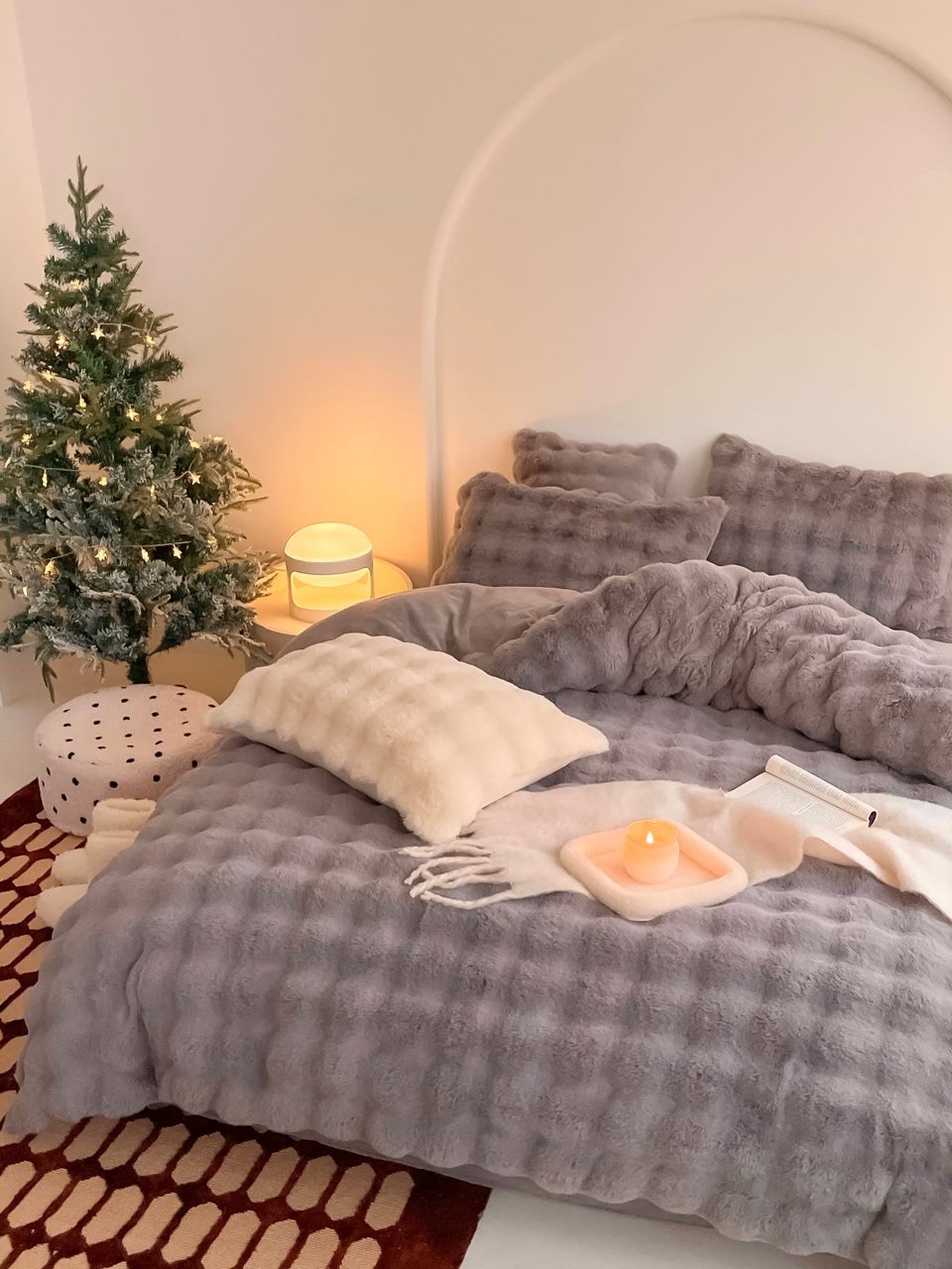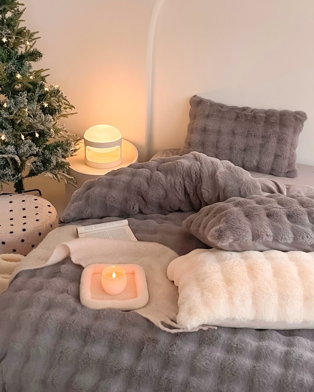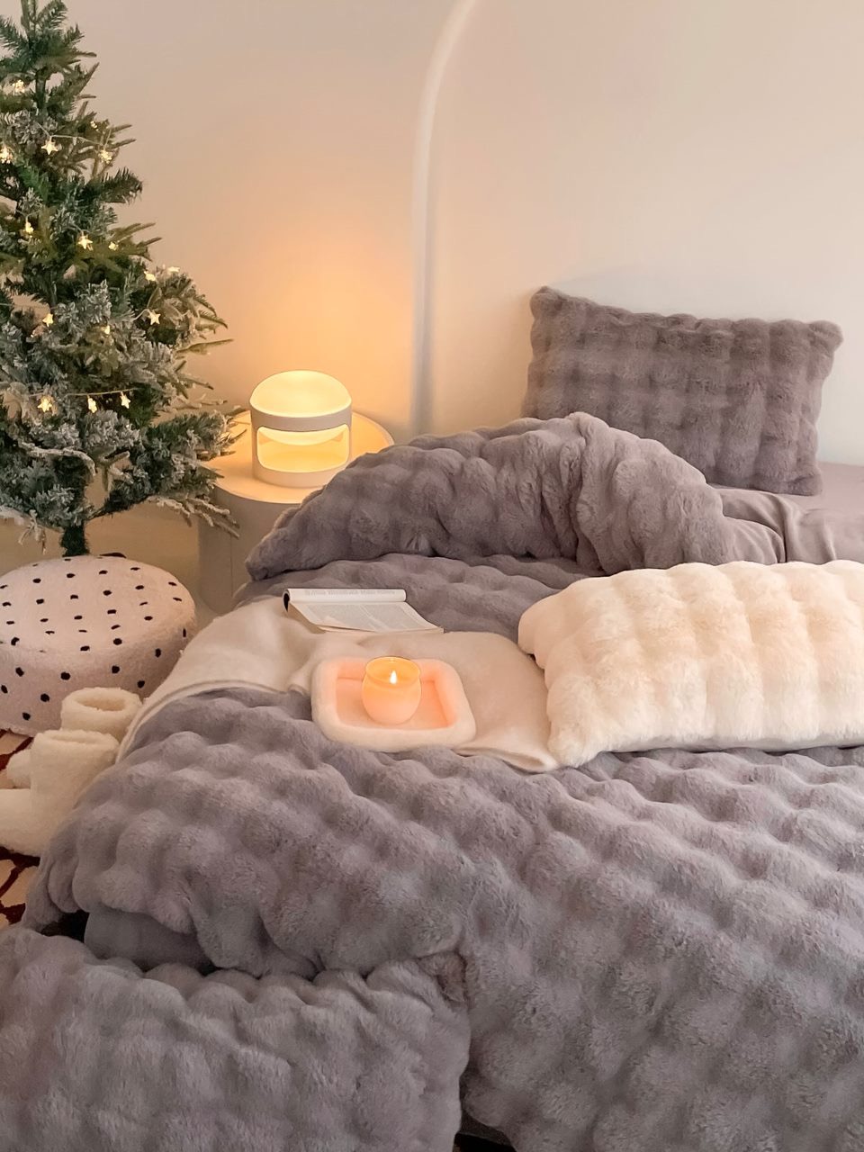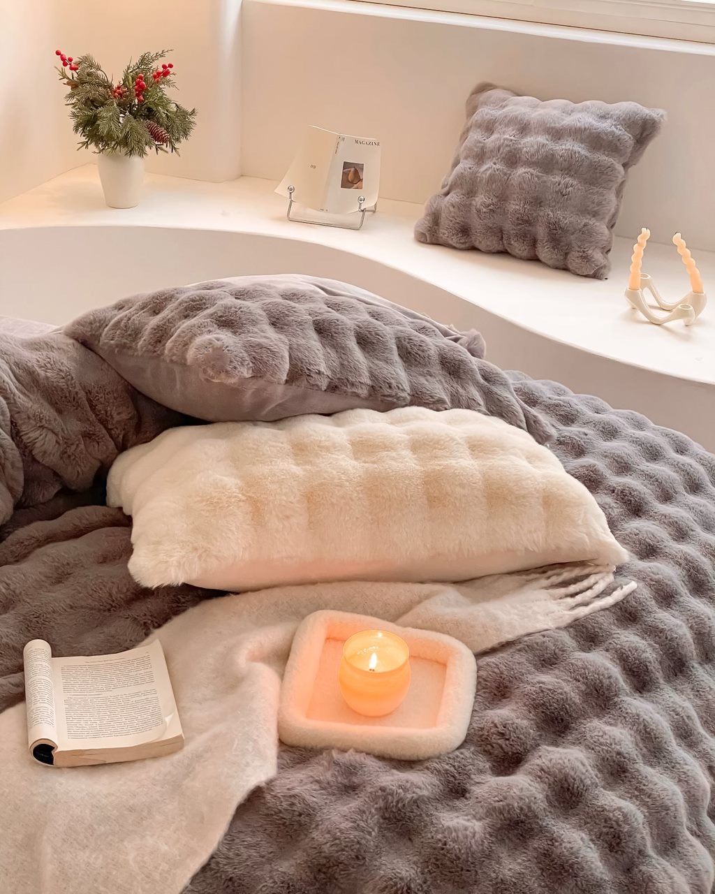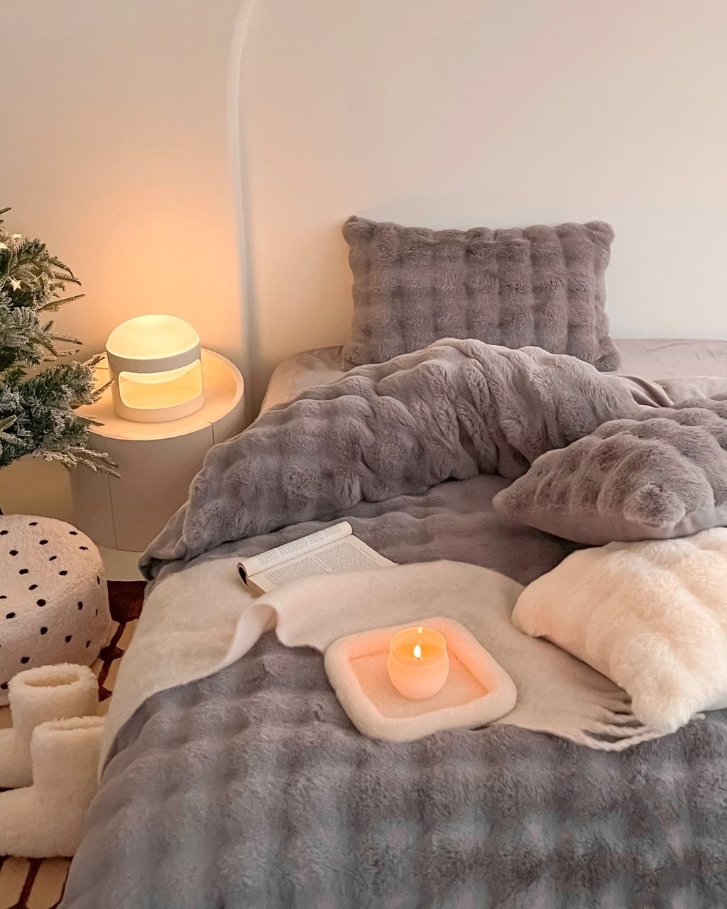 Lenjerie de Pat Dublu din Blanita Artificiala de Iepure – Rasfatul Suprem in Fiecare Noapte!Imagineaza-ti cum te scufunzi intr-un pat moale, pufos, calduros… O senzatie atat de placuta incat parca te imbratiseaza o blanita fina de iepure. Asta iti ofera lenjeria noastra de pat dublu din blanita artificiala premium – lux, confort si un somn linistit, noapte de noapte! ✔ Ce face aceasta lenjerie atat de speciala?● Blanita artificiala identica cu cea naturala – Textura ultra-fina, recreat