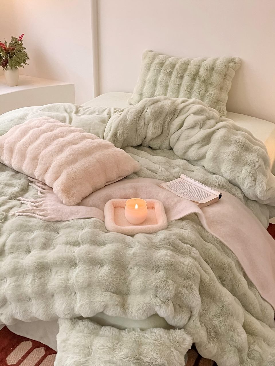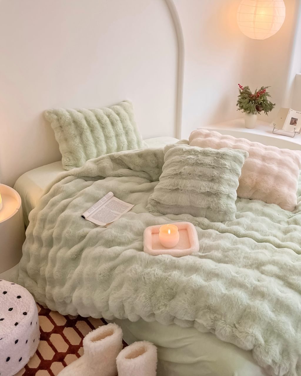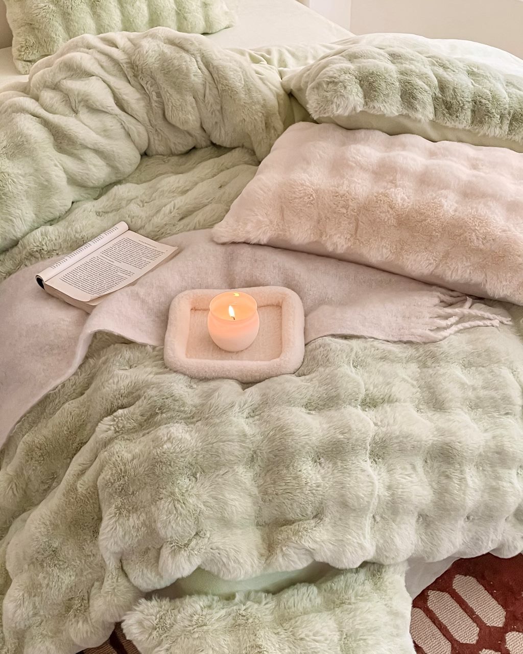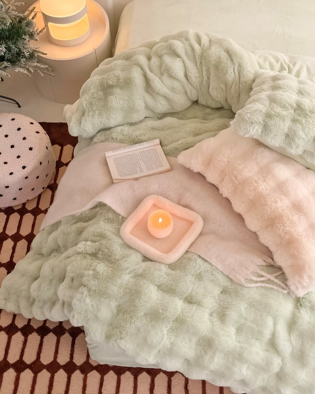 Lenjerie de Pat Dublu din Blanita Artificiala de Iepure – Rasfatul Suprem in Fiecare Noapte!Imagineaza-ti cum te scufunzi intr-un pat moale, pufos, calduros… O senzatie atat de placuta incat parca te imbratiseaza o blanita fina de iepure. Asta iti ofera lenjeria noastra de pat dublu din blanita artificiala premium – lux, confort si un somn linistit, noapte de noapte! ✔ Ce face aceasta lenjerie atat de speciala?● Blanita artificiala identica cu cea naturala – Textura ultra-fina, recreat