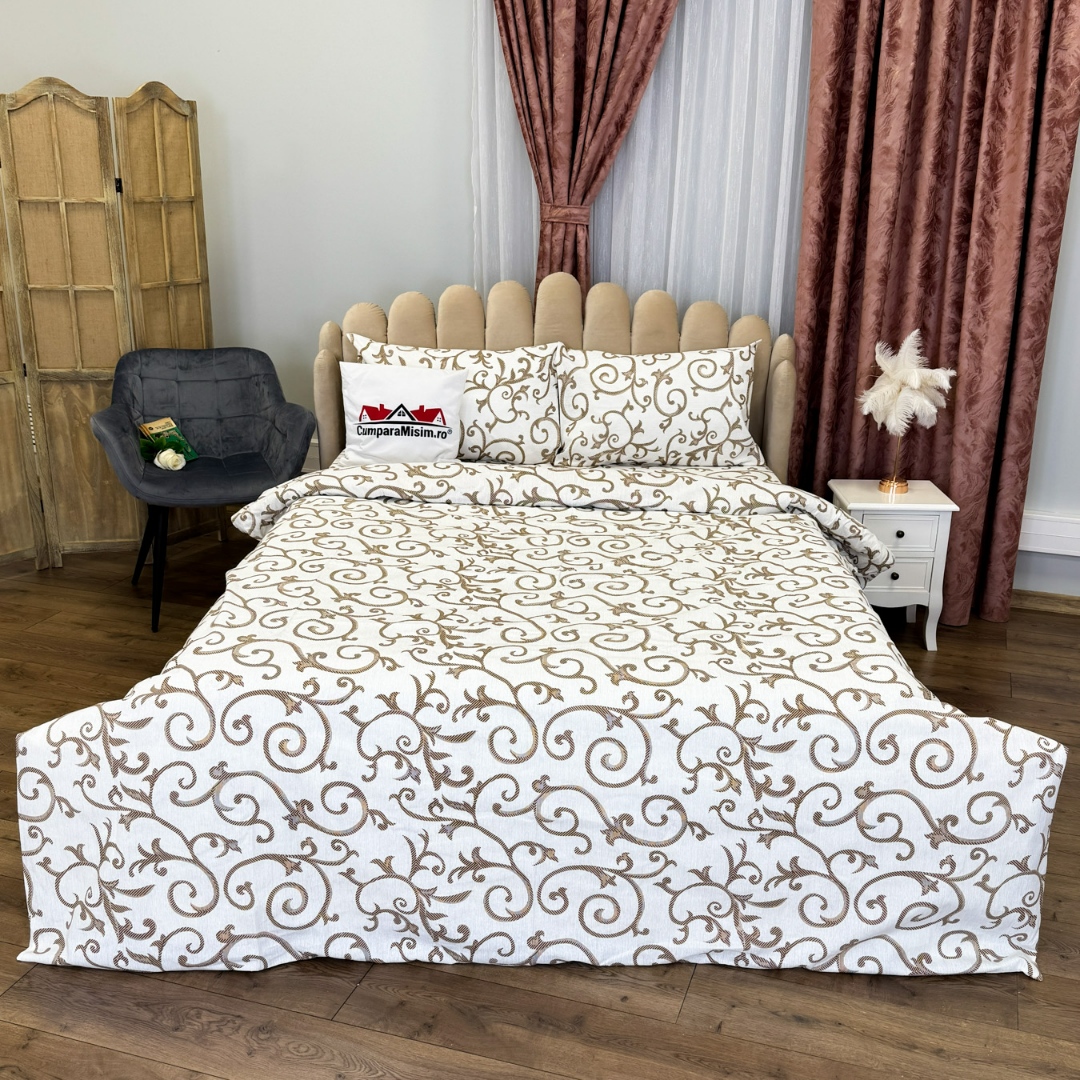 Lenjerie de pat dublu din policoton – 4 piese, realizata manual in atelierul Cumparamisim Confort, rezistenta si stil – toate intr-un singur set creat cu grija in Romania. Lenjeria de pat din policoton, Cumparamisim, imbina perfect calitatea bumbacului natural cu avantajele poliesterului, rezultand un produs durabil, usor de intretinut si placut la atingere. Croita manual in atelierul nostru, aceasta lenjerie aduce un plus de rafinament dormitorului tau si sustine munca artizanilor loc