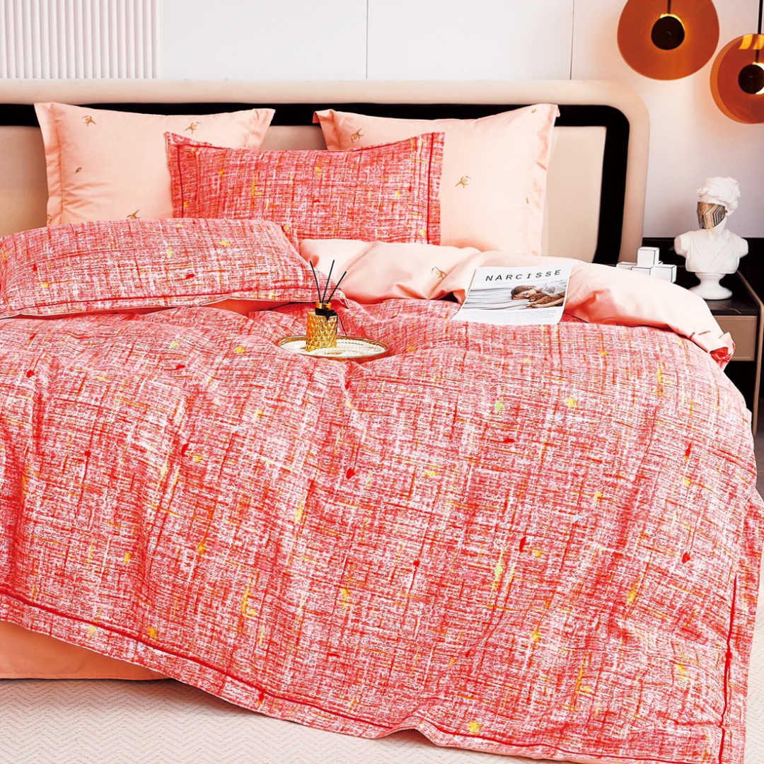 Lenjerie de Pat Dublu, Super Premium, Finet Ranforsat, 6 Piese, Ambalat in Cutie de Lux, Somon, uni
