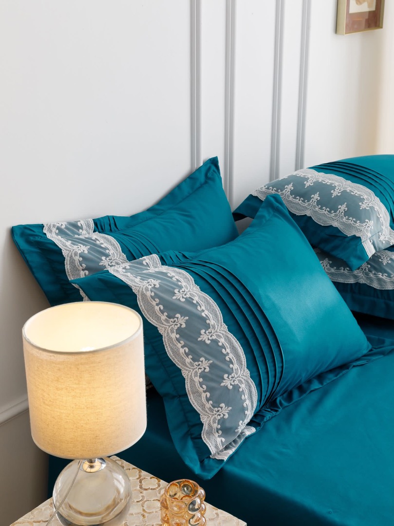 Lenjerie de Pat 6 Piese – Finet Soft Touch cu Pliuri Brodate in forma de Inimioara si Dantela Delicata O lenjerie de pat care imbina eleganta detaliilor brodate cu rasfatul unui material ultra-moale – Finet Soft Touch, acum si mai fin la atingere. Designul cu inimioare brodate si pliuri fine, lucrate atent, este completat de dantela rafinata aplicata pe o latura a fetelor de perna, pentru un efect vizual deosebit si un plus de rafinament in orice dormitor. Material premium: Finet