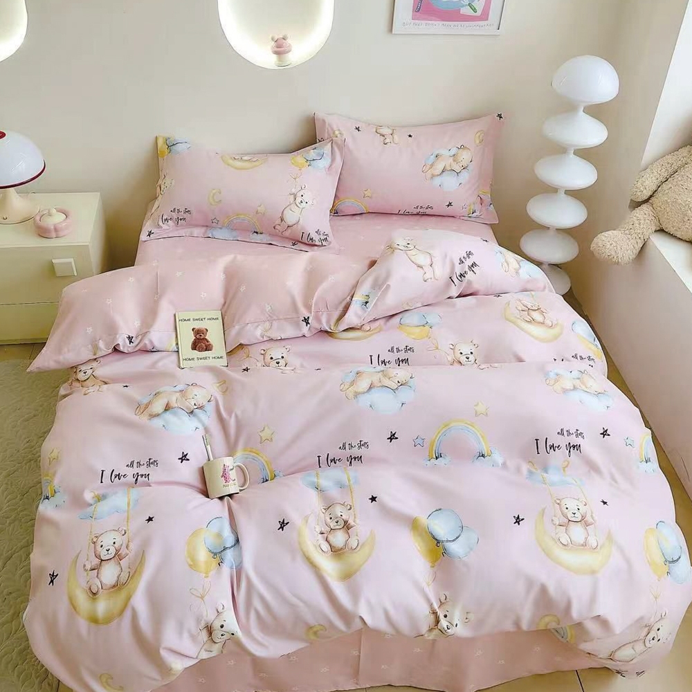 Lenjerie pat 1 PERSOANA, FINET, 4 piese, Roz, ursuleti