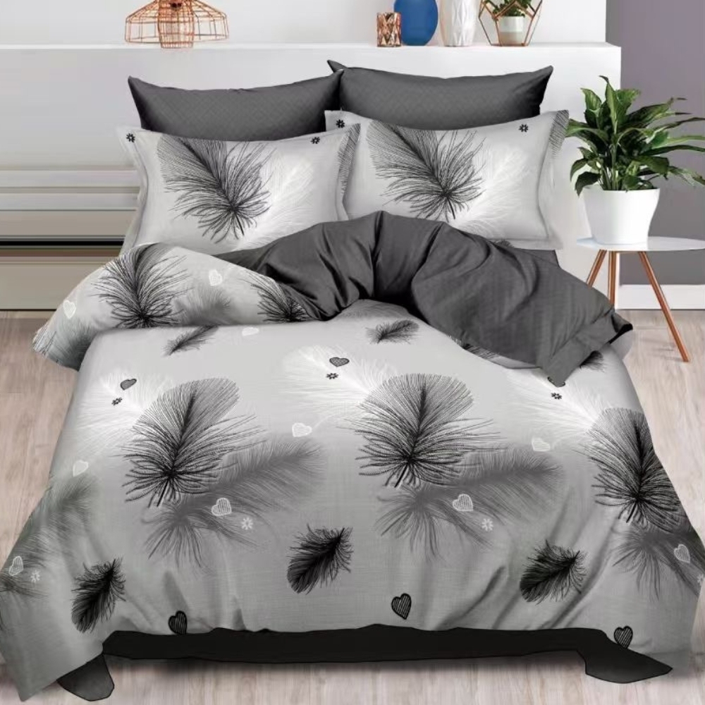 Lenjerie pat dublu, Finet, 6 piese, Gri, Alb, Negru, pene