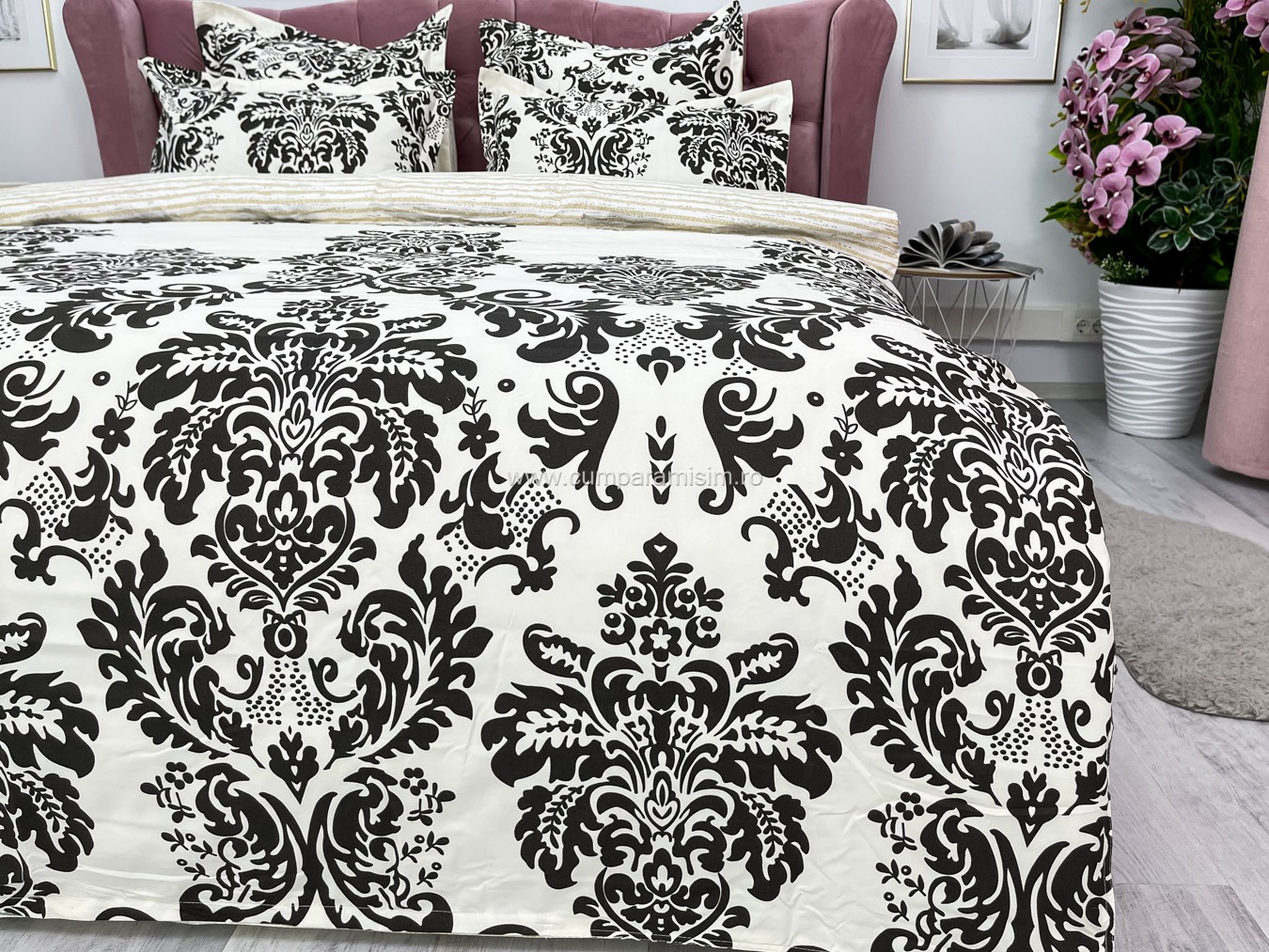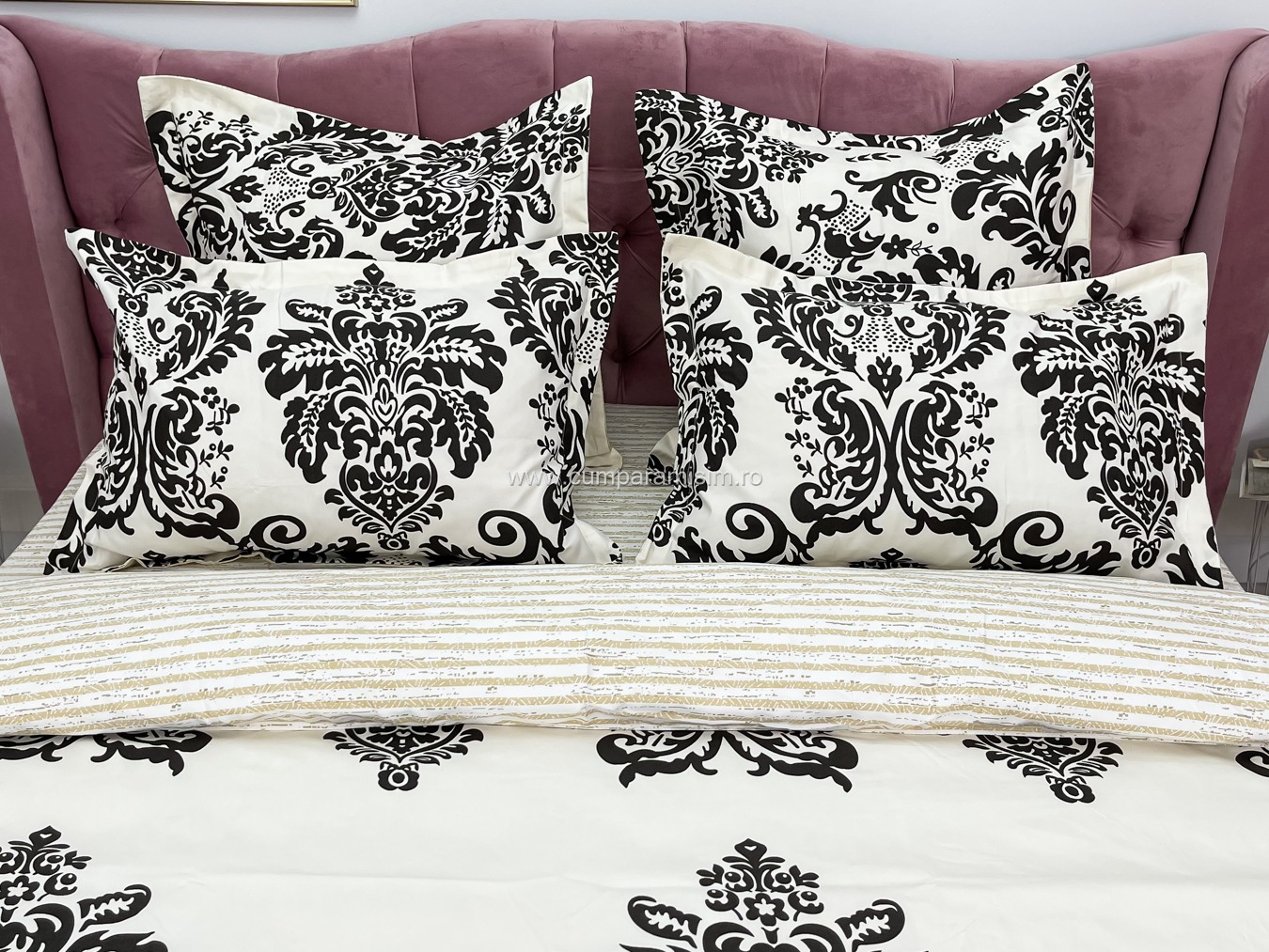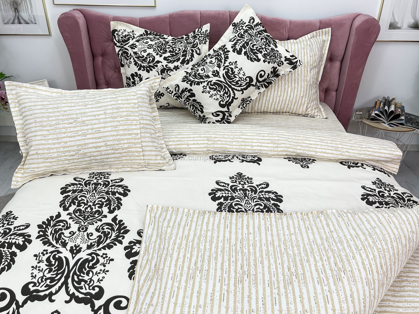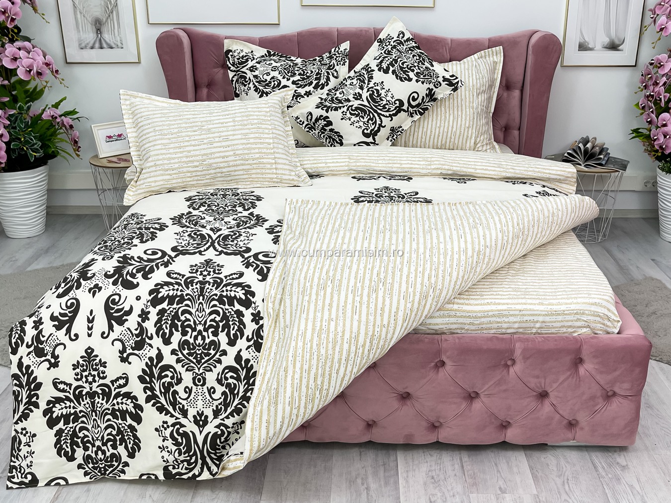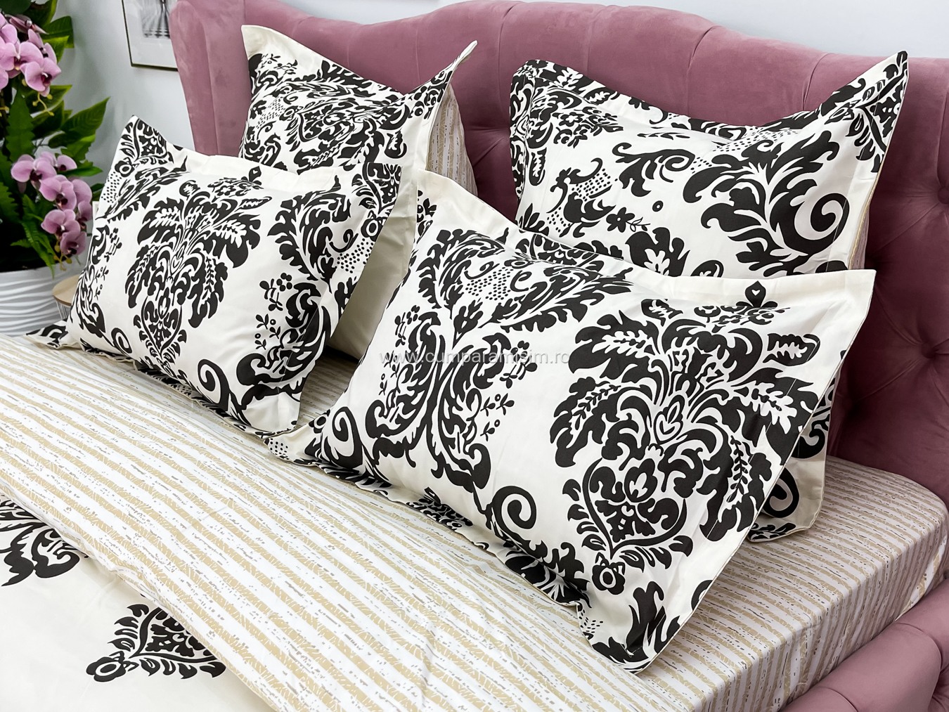 Lenjerie pat dublu cu ELASTIC, Finet, 6 piese, Bej, model oriental