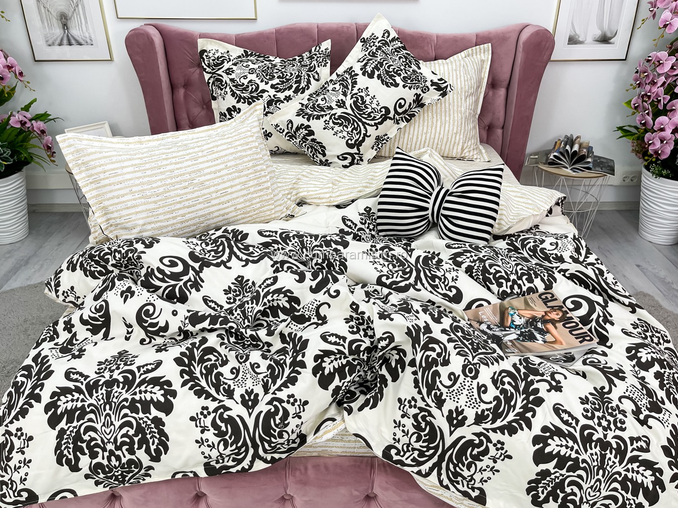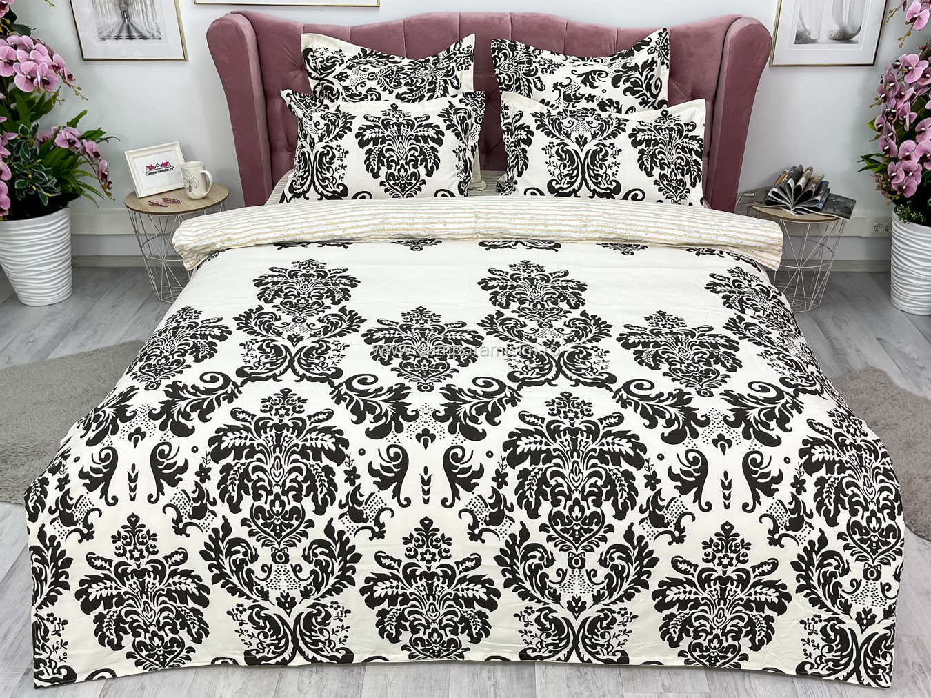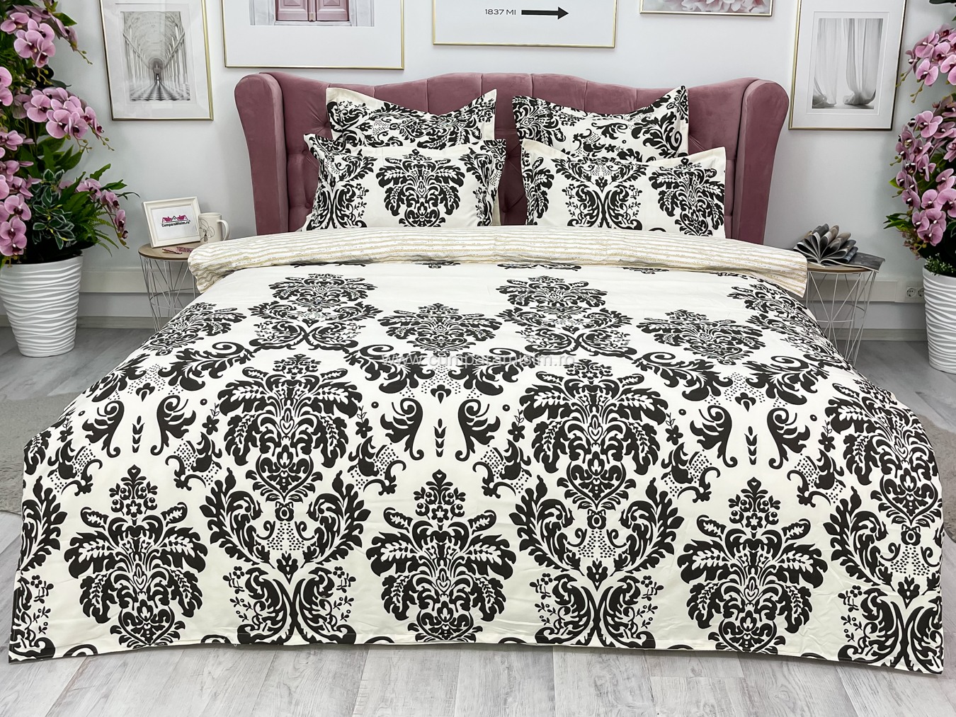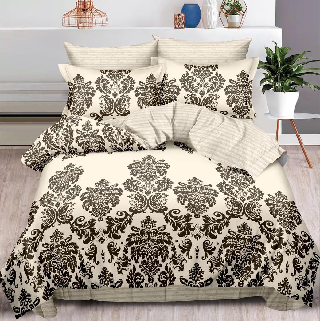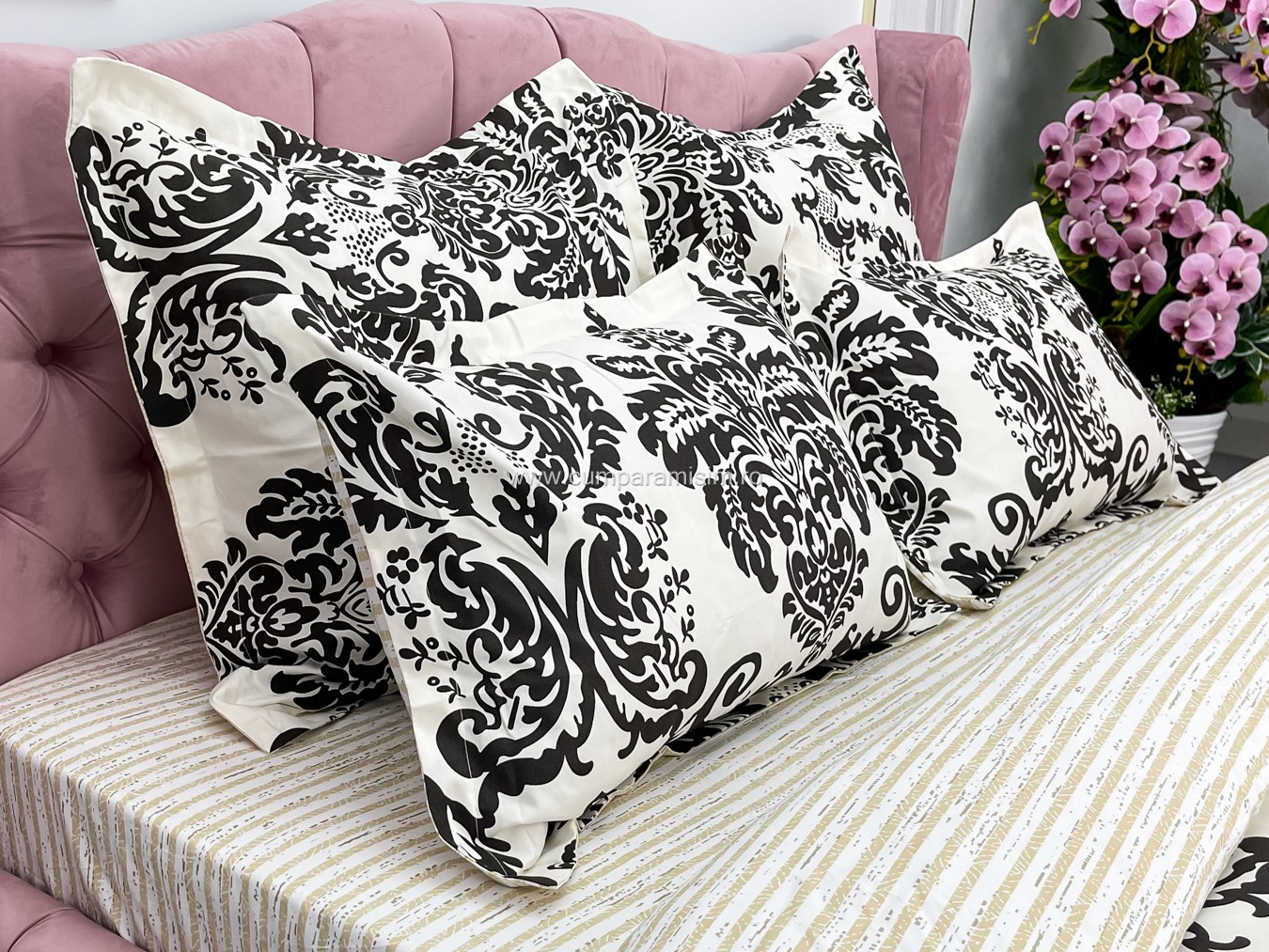 Lenjerie pat dublu cu ELASTIC, Finet, 6 piese, Bej, model oriental