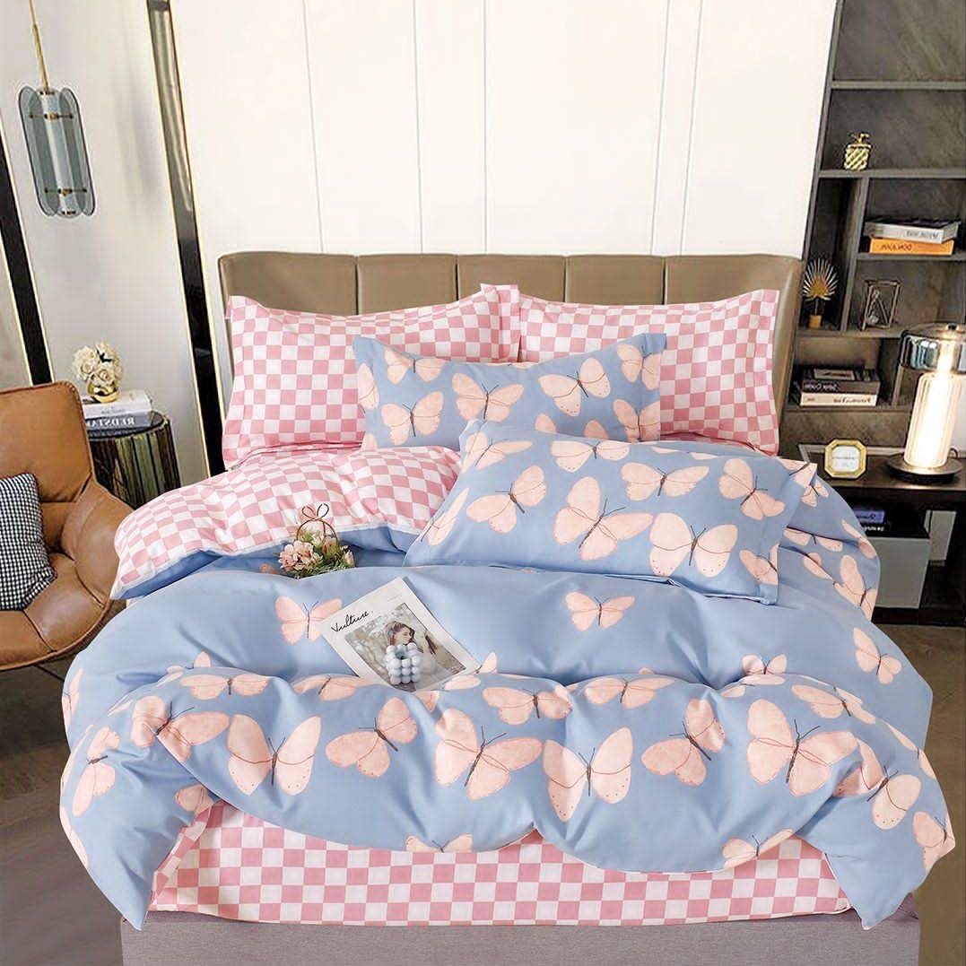Lenjerie pat dublu, Finet, 6 piese, Roz, fluturi