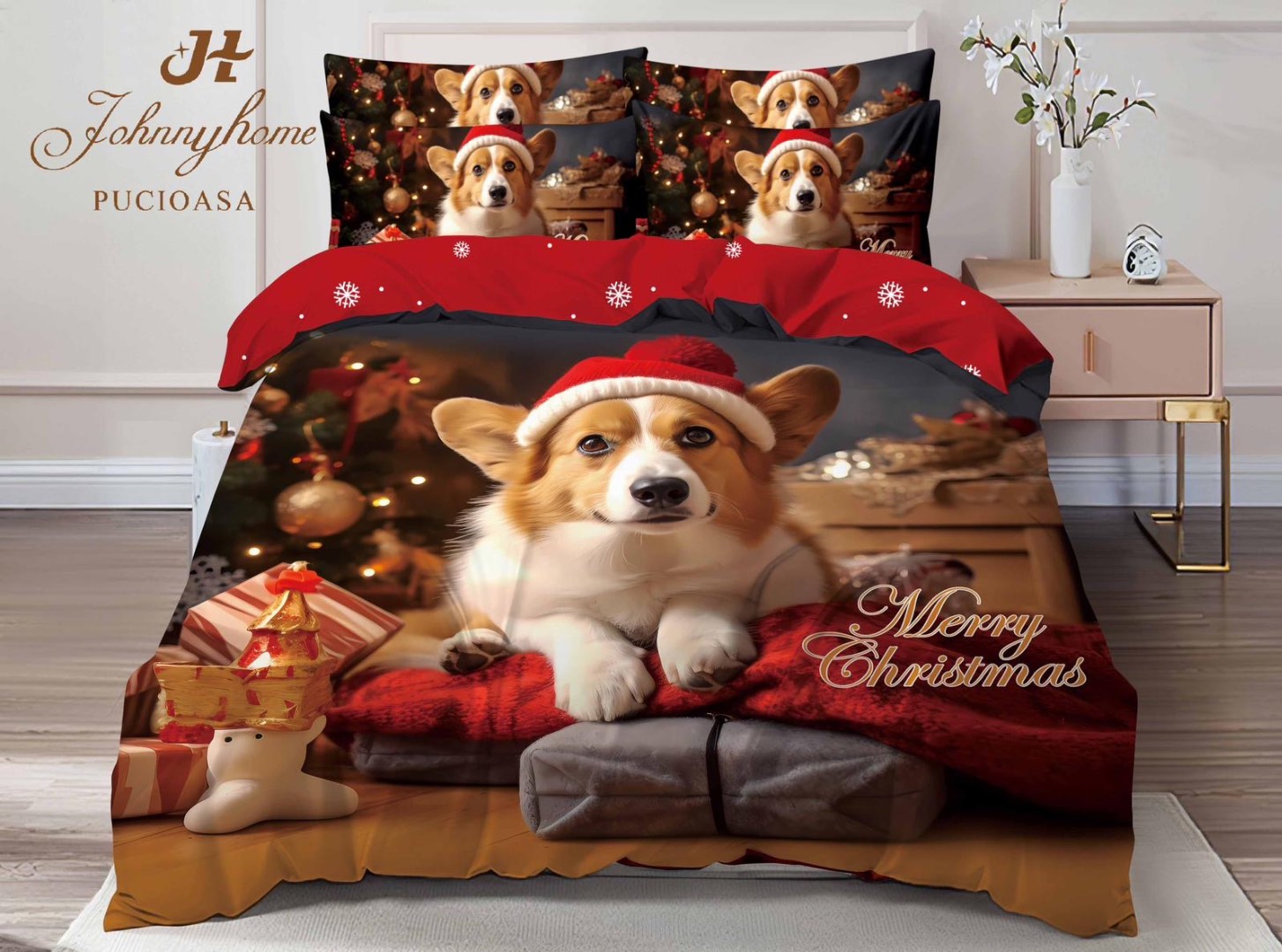 Lenjerie pat dublu, FINET, Digital Print, Craciun, Rosu, Maro, catel