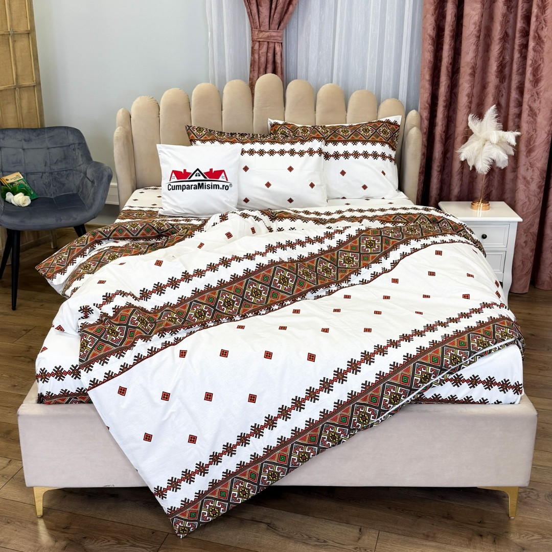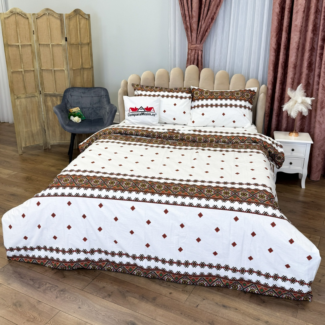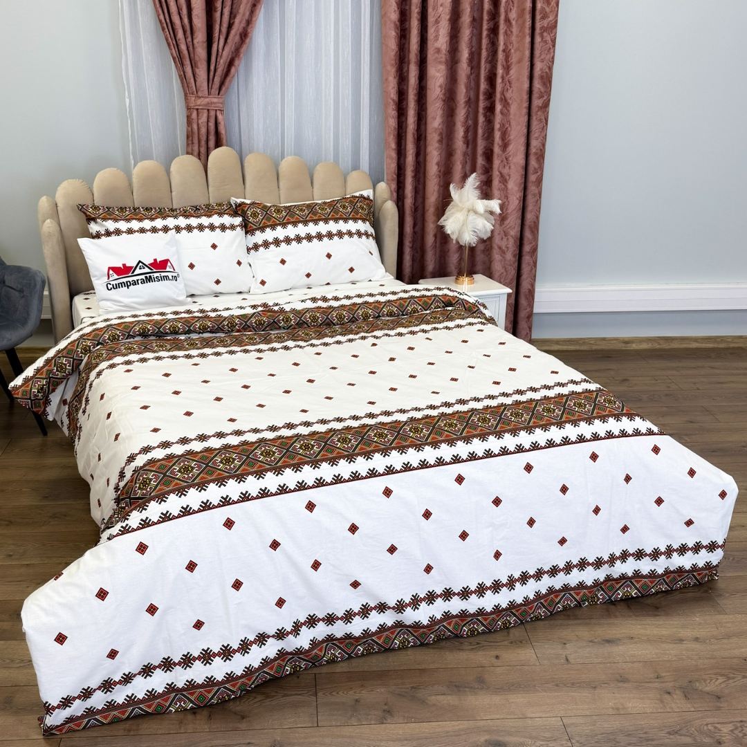 Lenjerie de pat dublu din bumbac ranforce - 4 piese, croita cu grija in atelierul Cumparamisim Transforma-ti dormitorul intr-un sanctuar al confortului si elegantei cu aceasta lenjerie de pat din bumbac ranforce, realizata manual in atelierul nostru. Fiecare set este creat cu o atentie desavarsita la detalii, asigurand un produs premium, adaptat nevoilor tale. Descriere detaliata a produsuluiMaterial: Bumbac ranforce de inalta calitate. Bumbacul ranforce este o tesatura de inalta calit