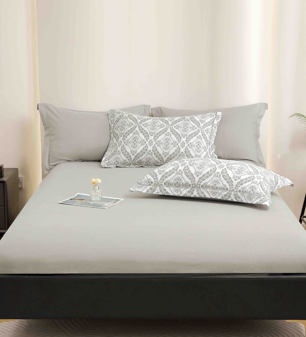 Lenjerie de Pat din Finet cu Elastic – 6 Piese Premium, Cu Cusatura Speciala si Ambalaj Elegant Tip Cutie       Adauga un plus de rafinament si confort dormitorului tau cu aceasta lenjerie de pat premium din bumbac tip finet, special conceputa pentru cei care apreciaza calitatea, detaliile fine si functionalitatea. Cu cearsaf cu elastic ce se asaza perfect pe saltea si cusaturi deosebite care sporesc rezistenta si eleganta, acest set este alegerea ideala pentru un somn linistit si un a