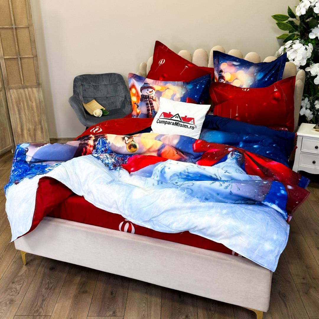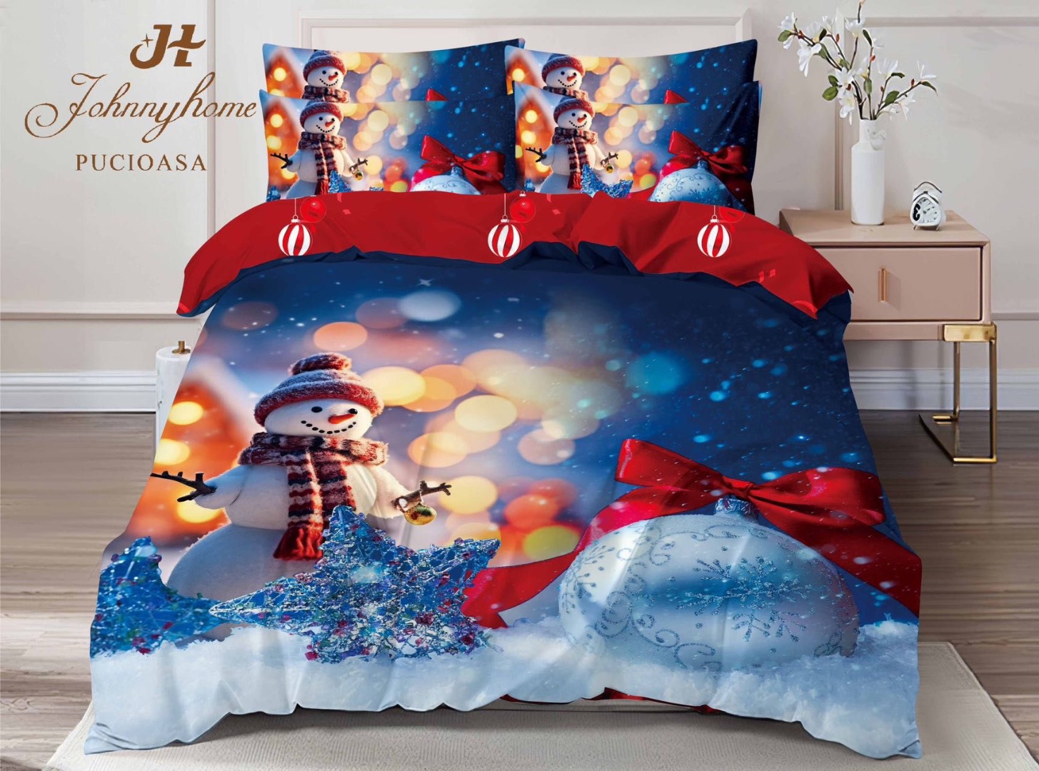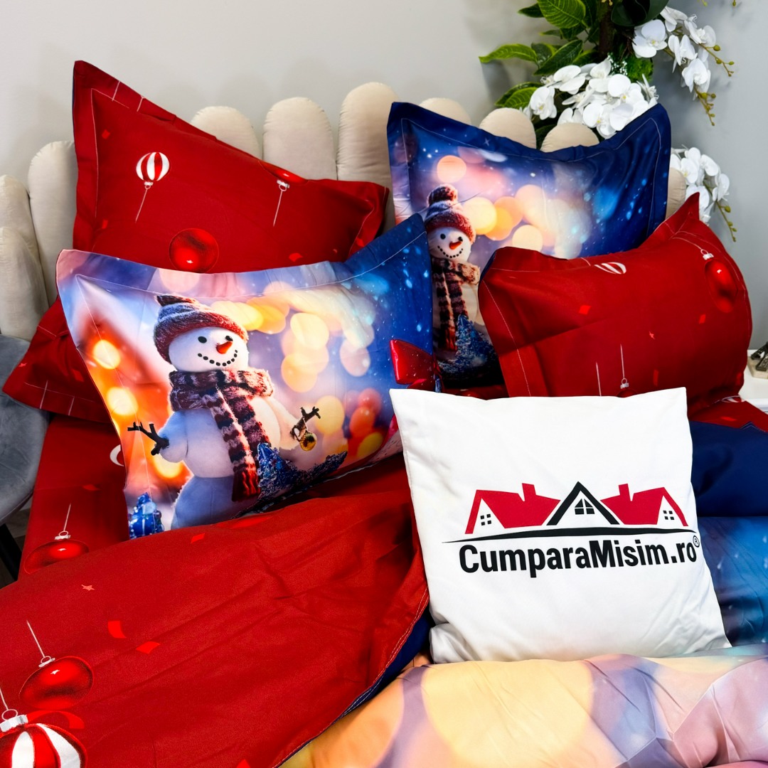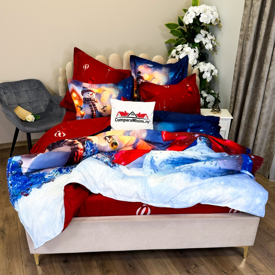 Lenjerie de pat Craciun din bumbac 100% finet - Confort si Eleganta Festiva Transforma-ti dormitorul intr-un colt de poveste de Craciun cu aceasta lenjerie de pat din bumbac 100% finet, imprimata cu motive festive exact asa cum sunt prezentate in poza de produs. Setul aduce nu doar un design spectaculos, ci si un confort maxim, datorita materialului de inalta calitate. Finetul este cunoscut pentru textura sa moale, neteda si placuta la atingere, oferind un somn odihnitor si o senzatie