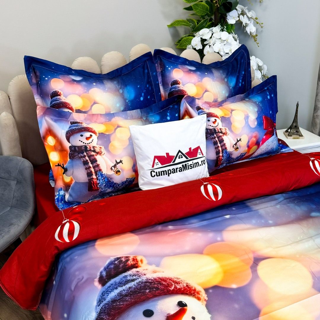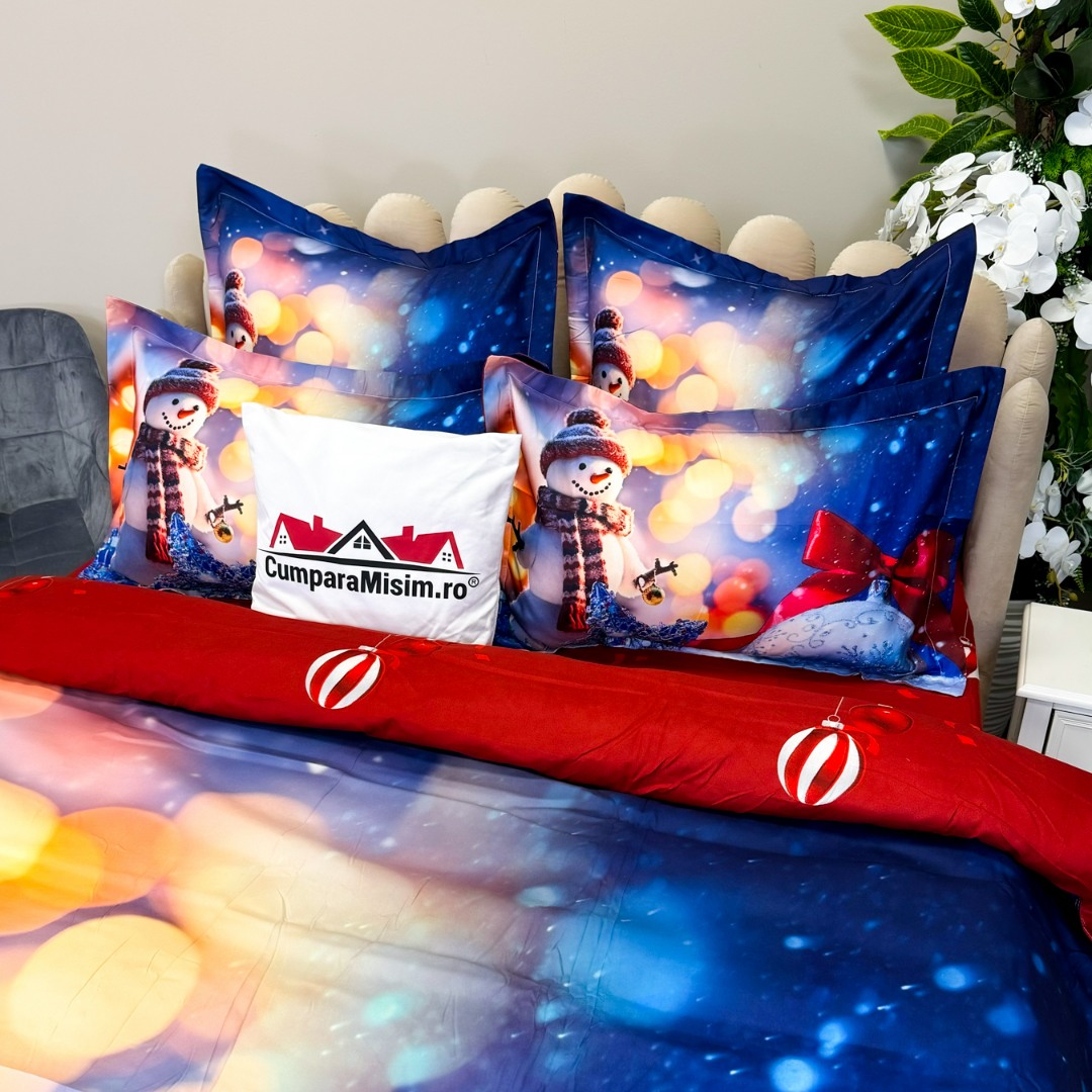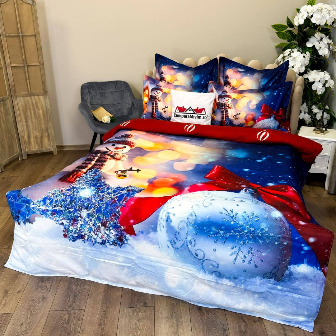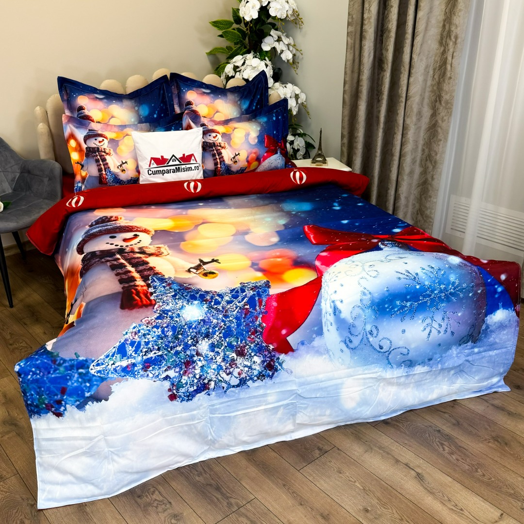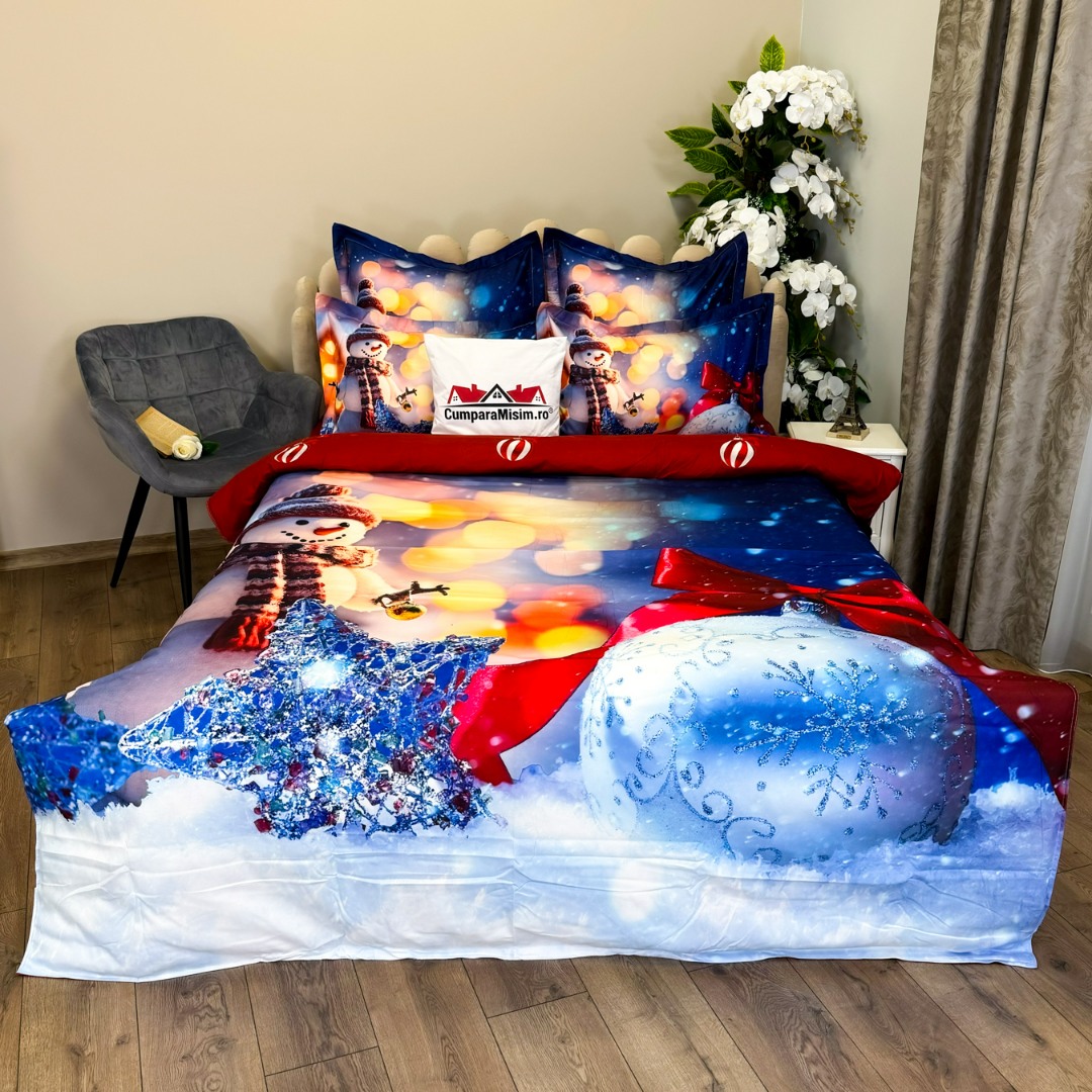 Lenjerie de pat Craciun din bumbac 100% finet - Confort si Eleganta Festiva Transforma-ti dormitorul intr-un colt de poveste de Craciun cu aceasta lenjerie de pat din bumbac 100% finet, imprimata cu motive festive exact asa cum sunt prezentate in poza de produs. Setul aduce nu doar un design spectaculos, ci si un confort maxim, datorita materialului de inalta calitate. Finetul este cunoscut pentru textura sa moale, neteda si placuta la atingere, oferind un somn odihnitor si o senzatie