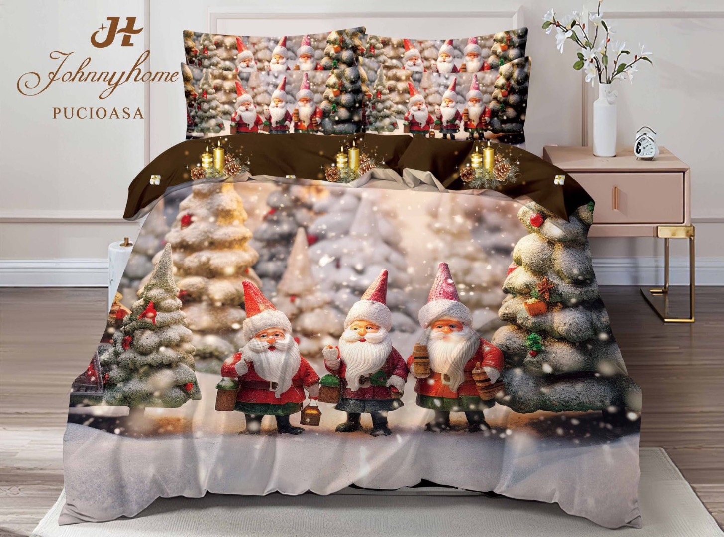 Lenjerie de pat Craciun din bumbac 100% finet - Confort si Eleganta Festiva Transforma-ti dormitorul intr-un colt de poveste de Craciun cu aceasta lenjerie de pat din bumbac 100% finet, imprimata cu motive festive exact asa cum sunt prezentate in poza de produs. Setul aduce nu doar un design spectaculos, ci si un confort maxim, datorita materialului de inalta calitate. Finetul este cunoscut pentru textura sa moale, neteda si placuta la atingere, oferind un somn odihnitor si o senzatie