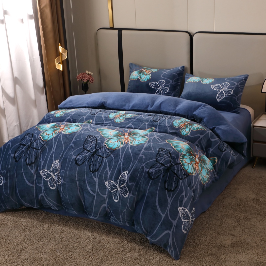 Lenjerie pat dublu, Super Pufoasa COCOLINO, 4 piese, Albastru, fluturi