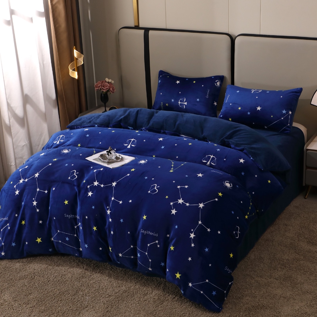 Lenjerie pat dublu, Super Pufoasa COCOLINO, 4 piese, Albastru, galaxie