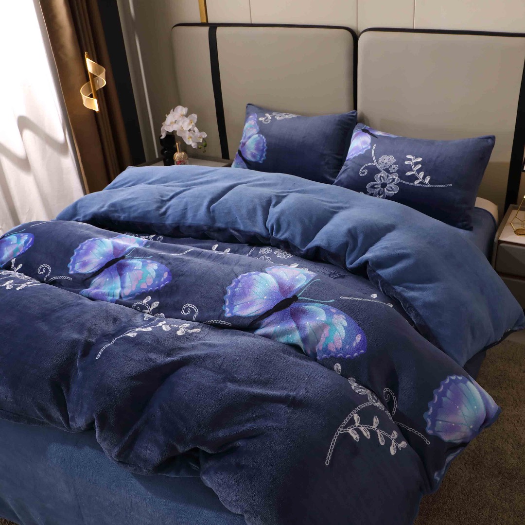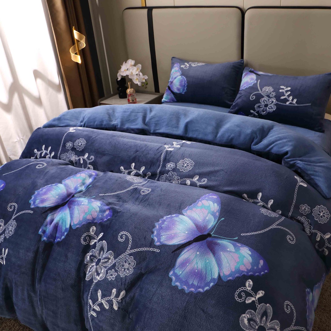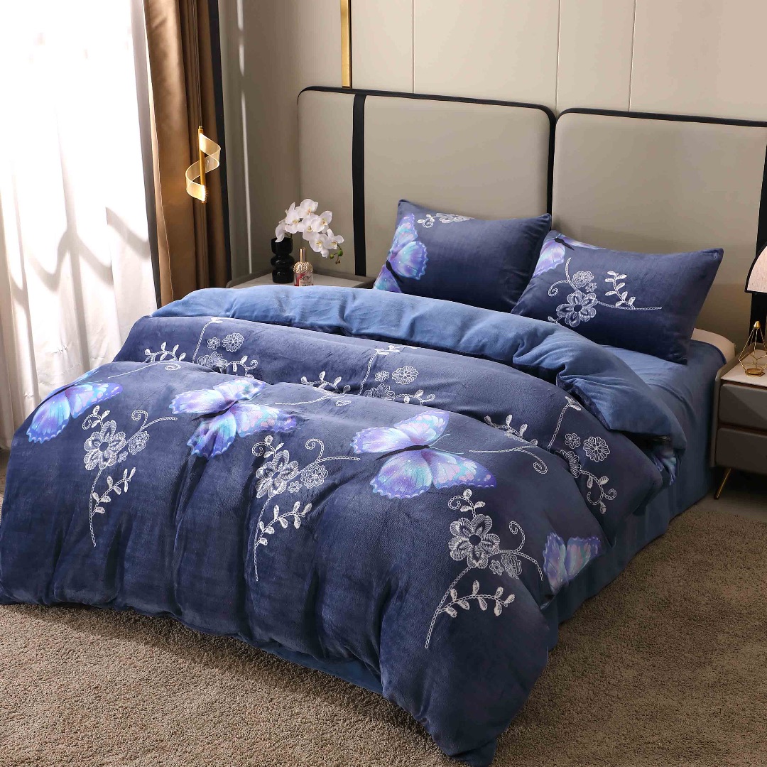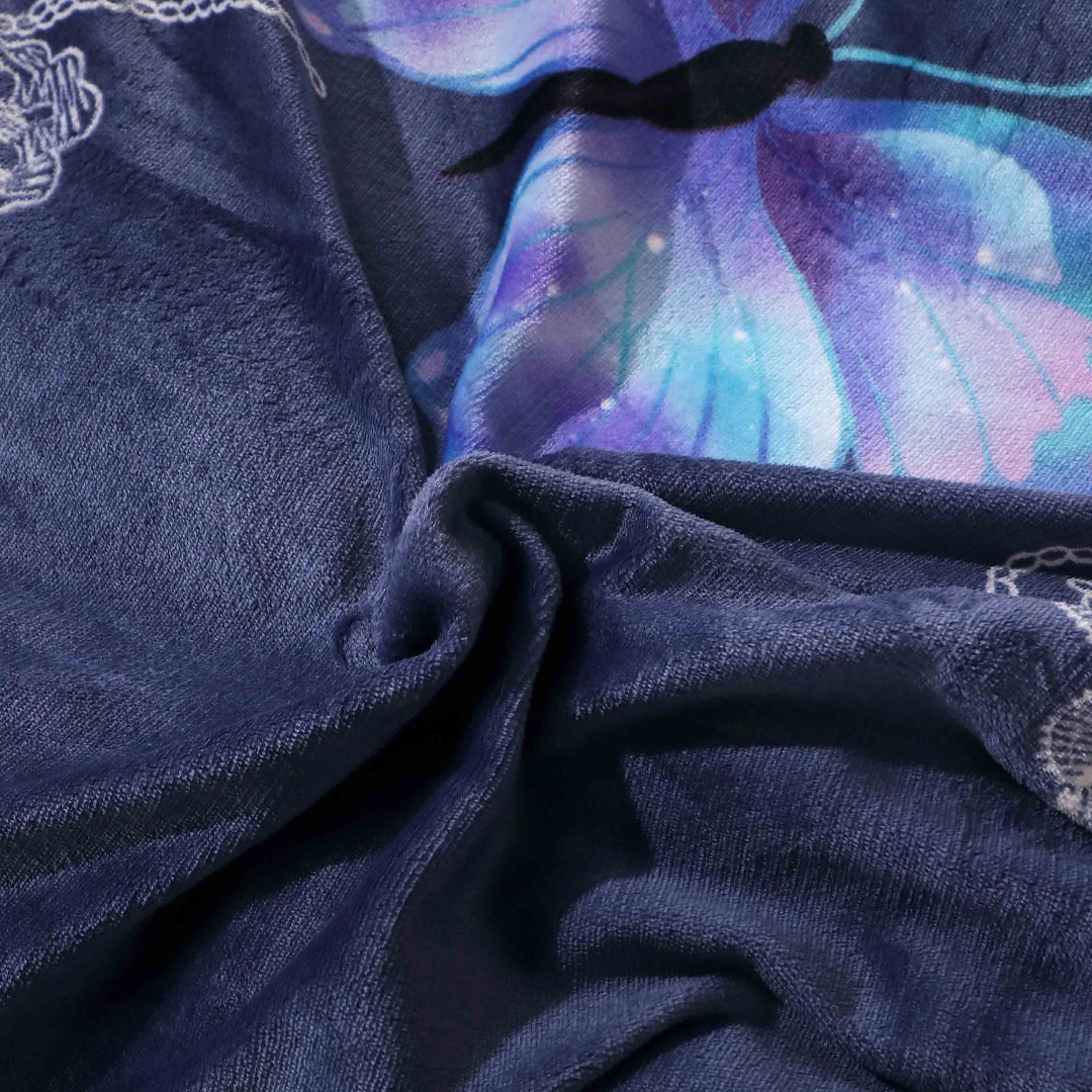 Lenjerie pat dublu, Super Pufoasa COCOLINO, 4 piese, Bleumarin, Fluturi
