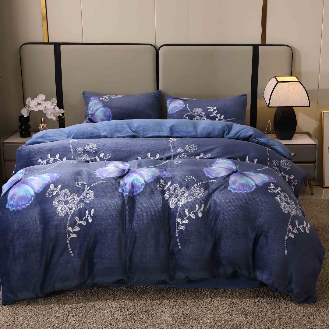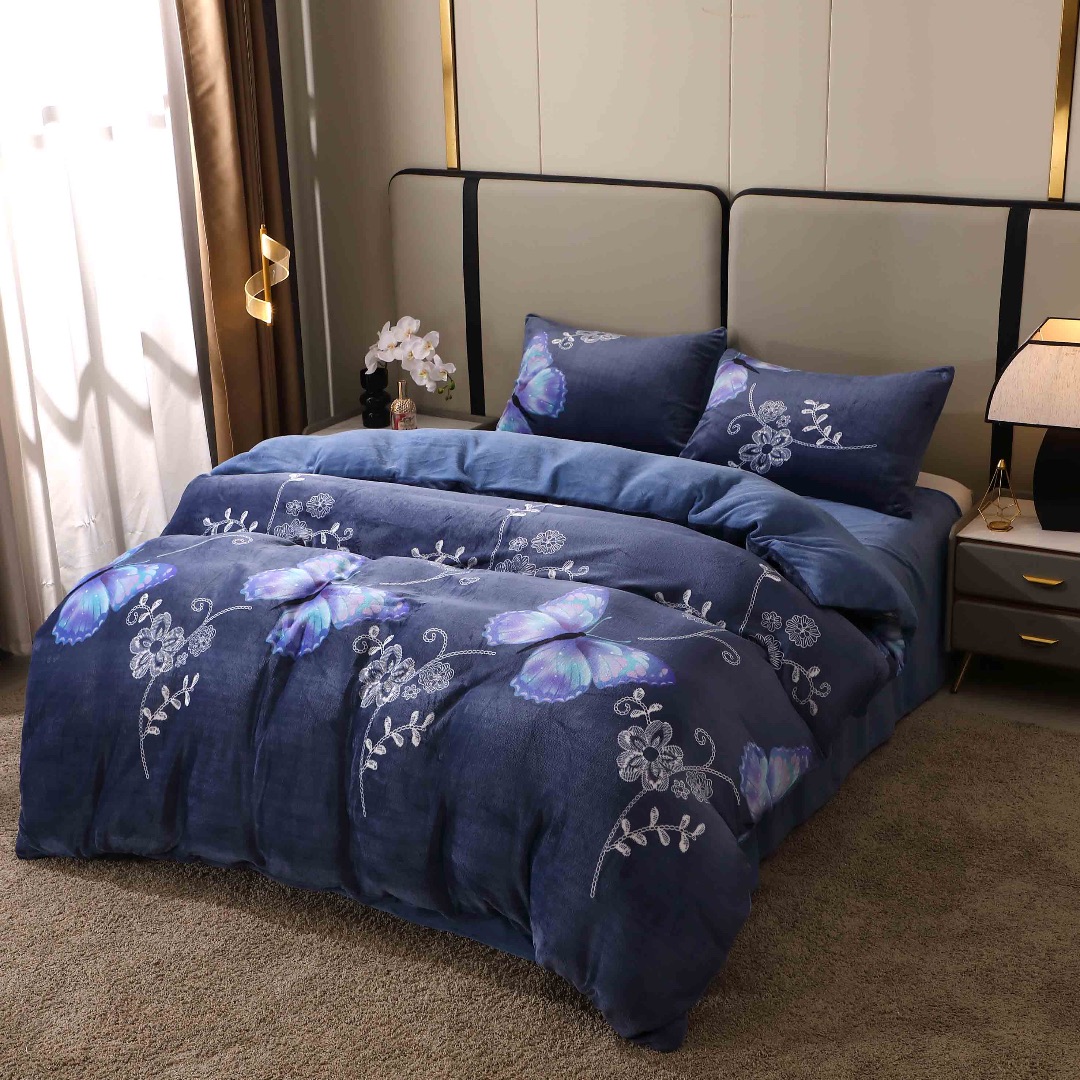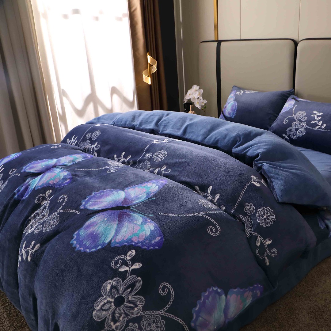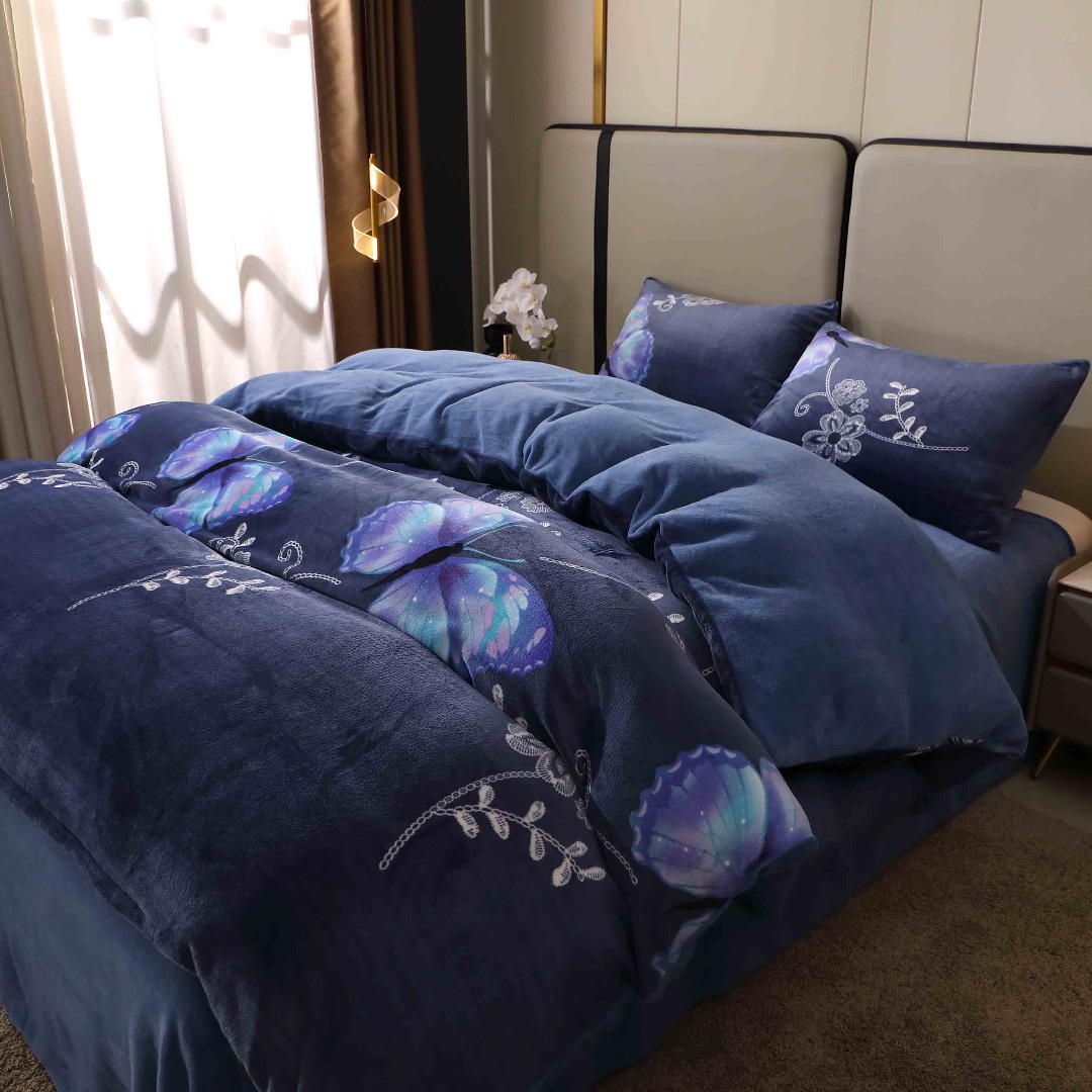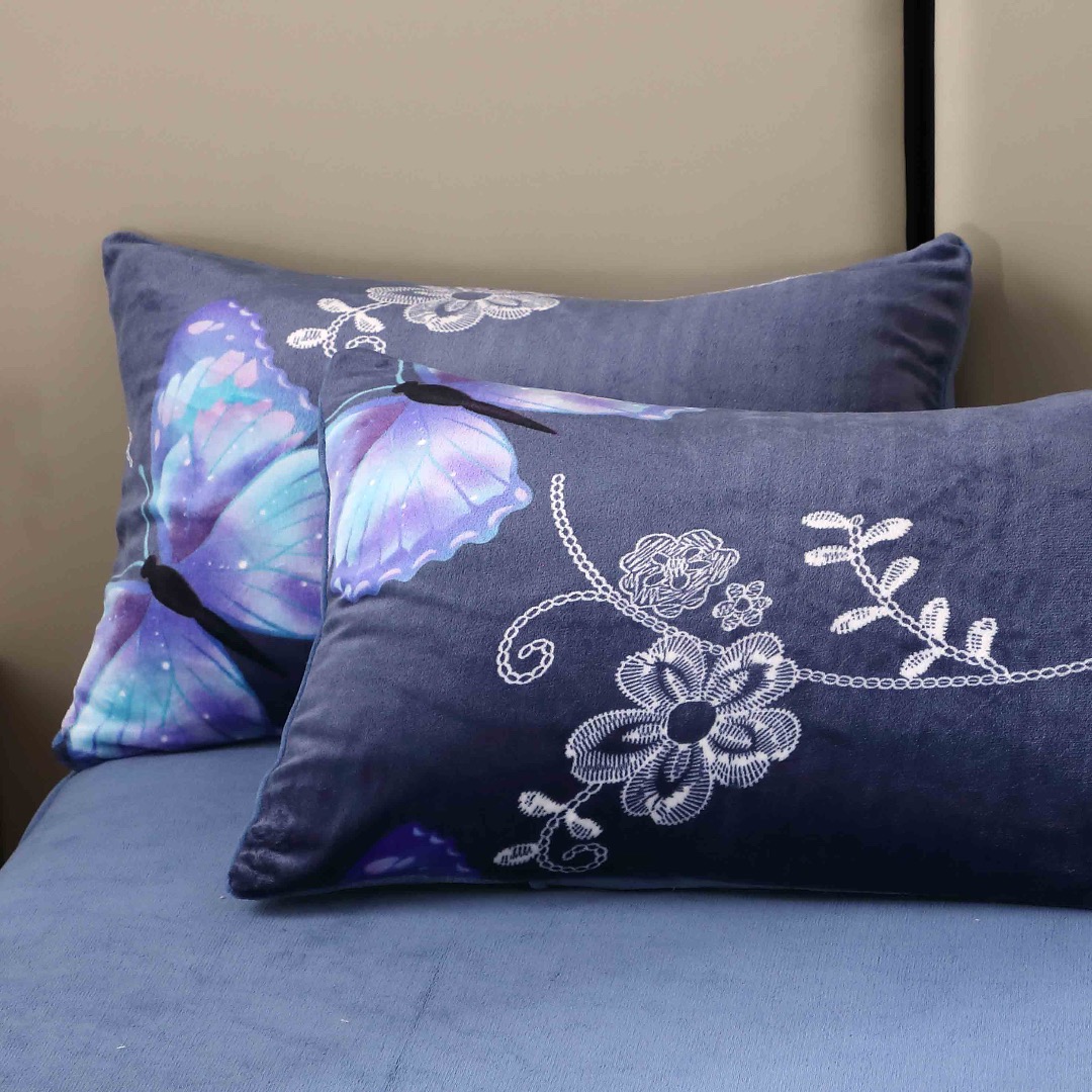 Lenjerie pat dublu, Super Pufoasa COCOLINO, 4 piese, Bleumarin, Fluturi