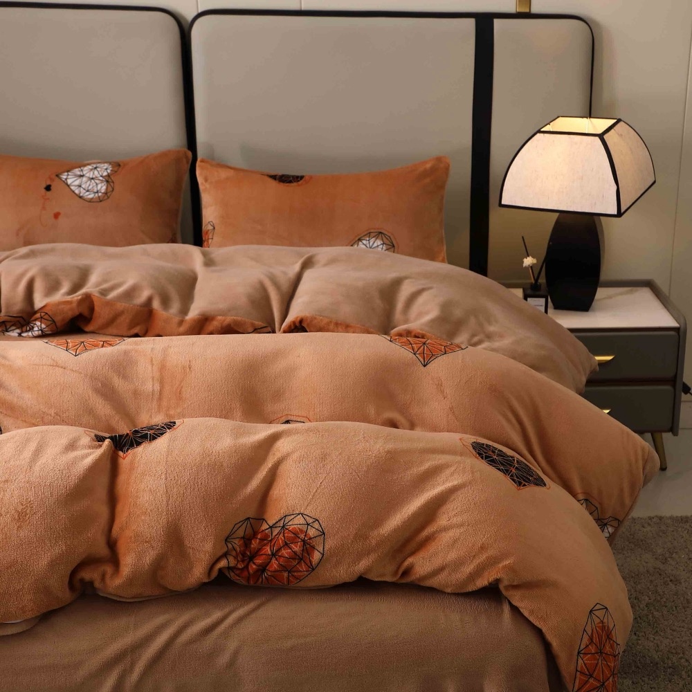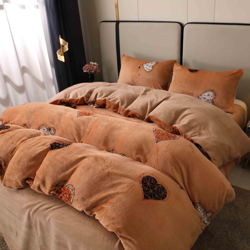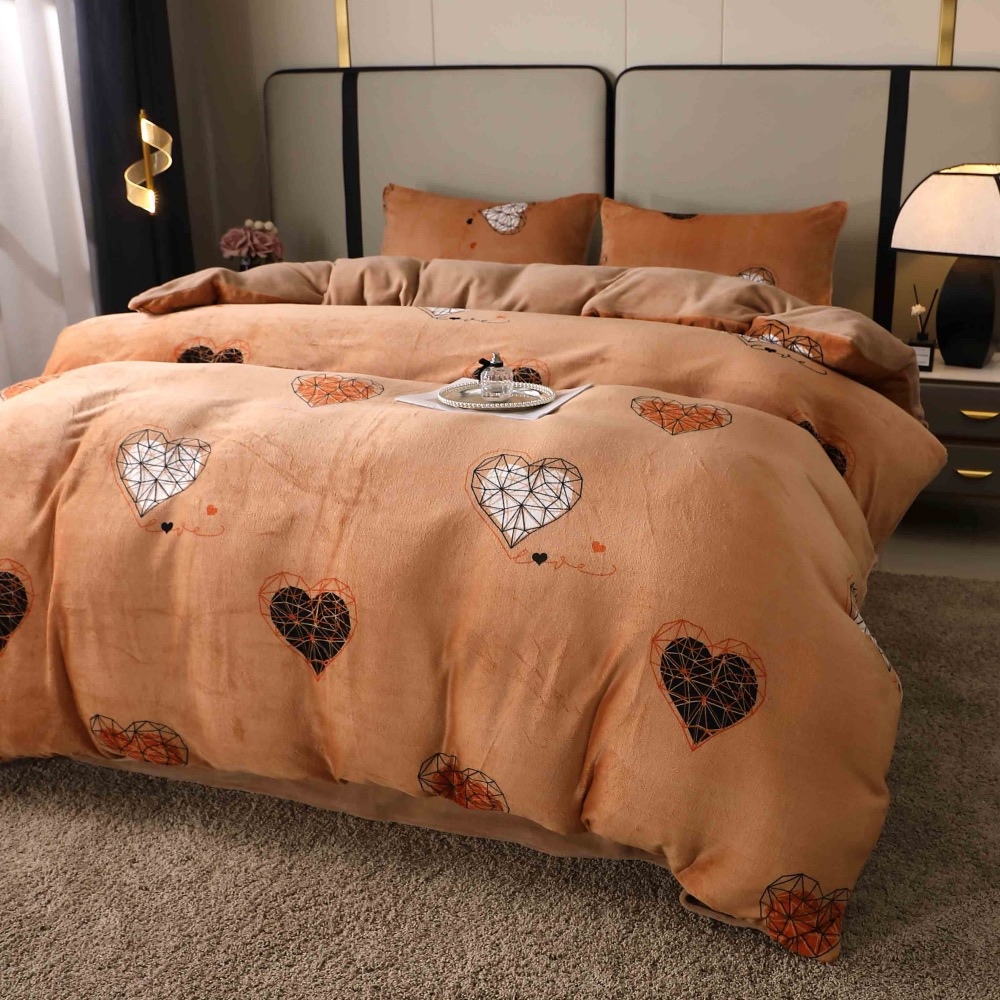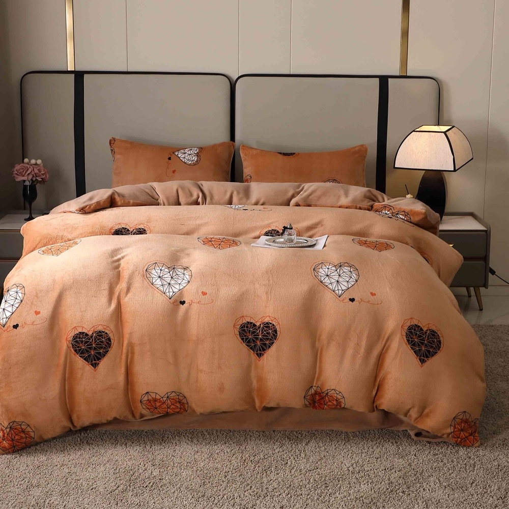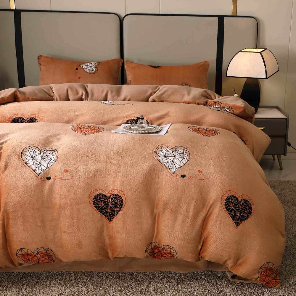 Lenjerie pat dublu, Super Pufoasa COCOLINO, 4 piese, Maro Camel, inimioare