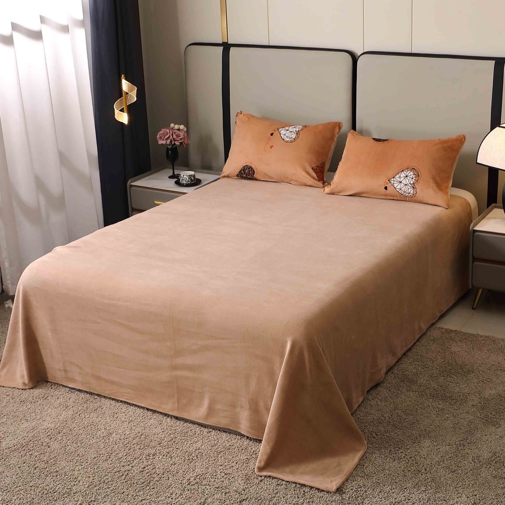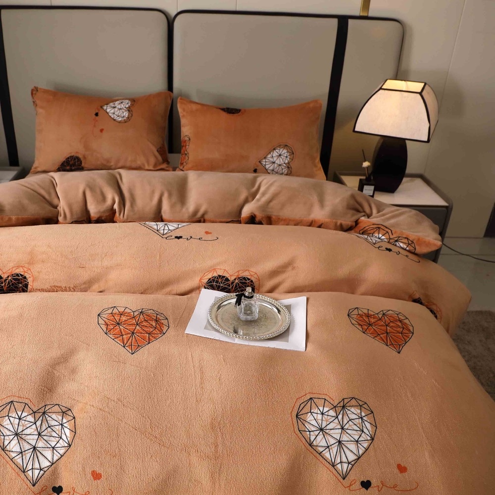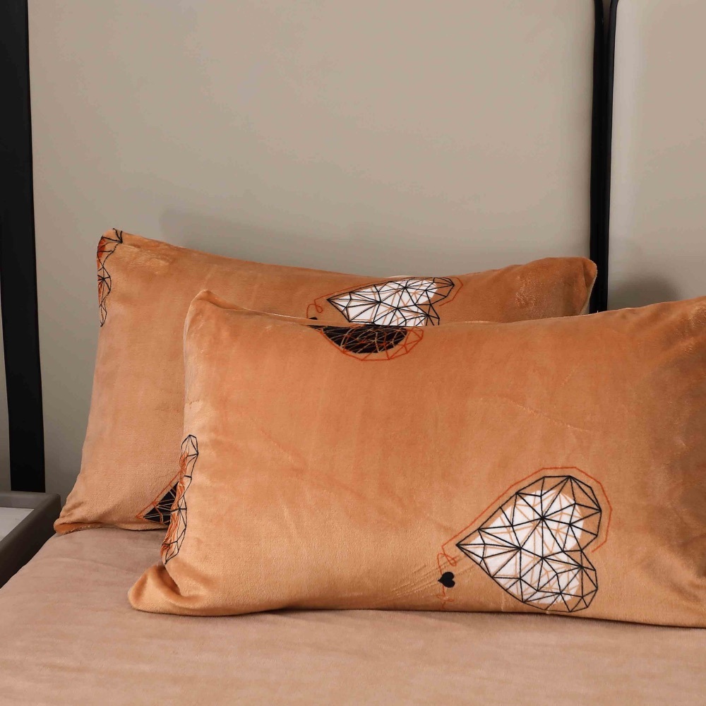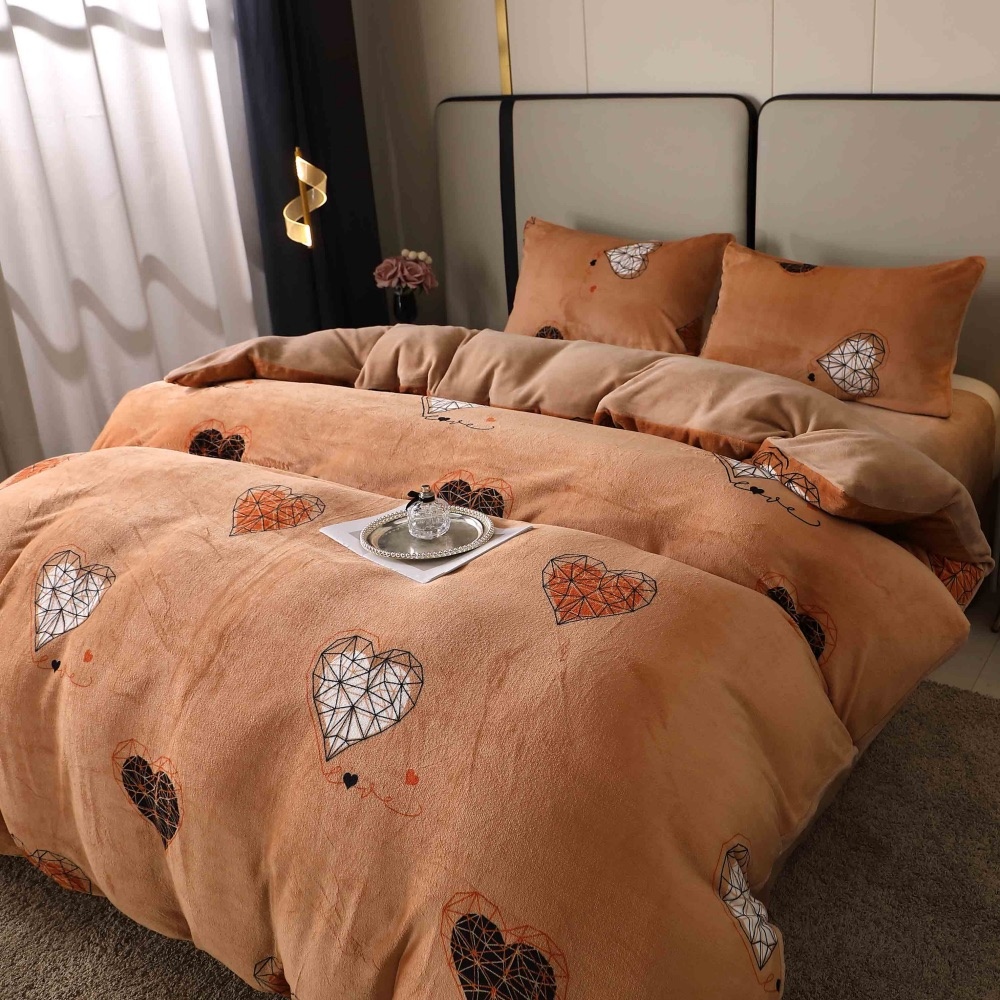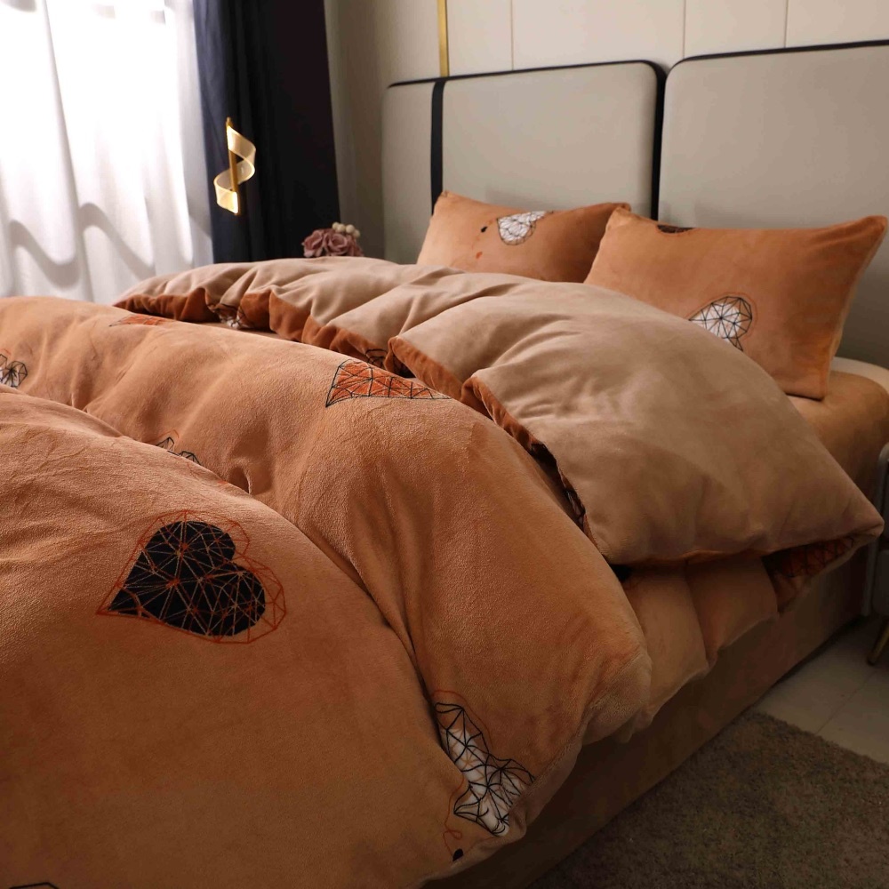 Lenjerie pat dublu, Super Pufoasa COCOLINO, 4 piese, Maro Camel, inimioare