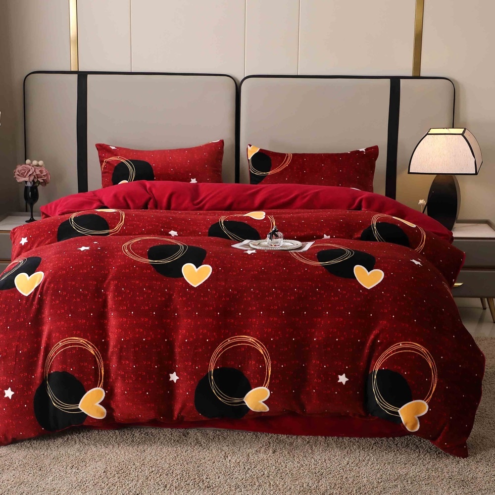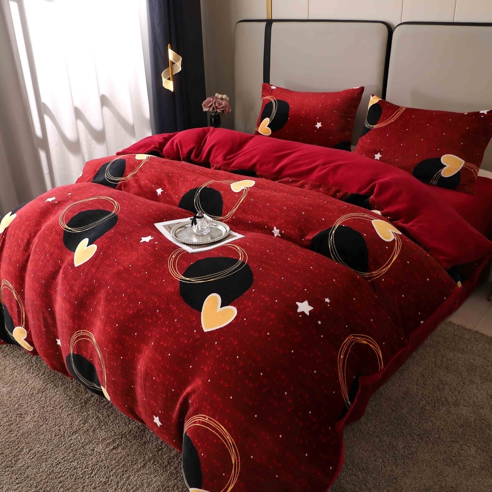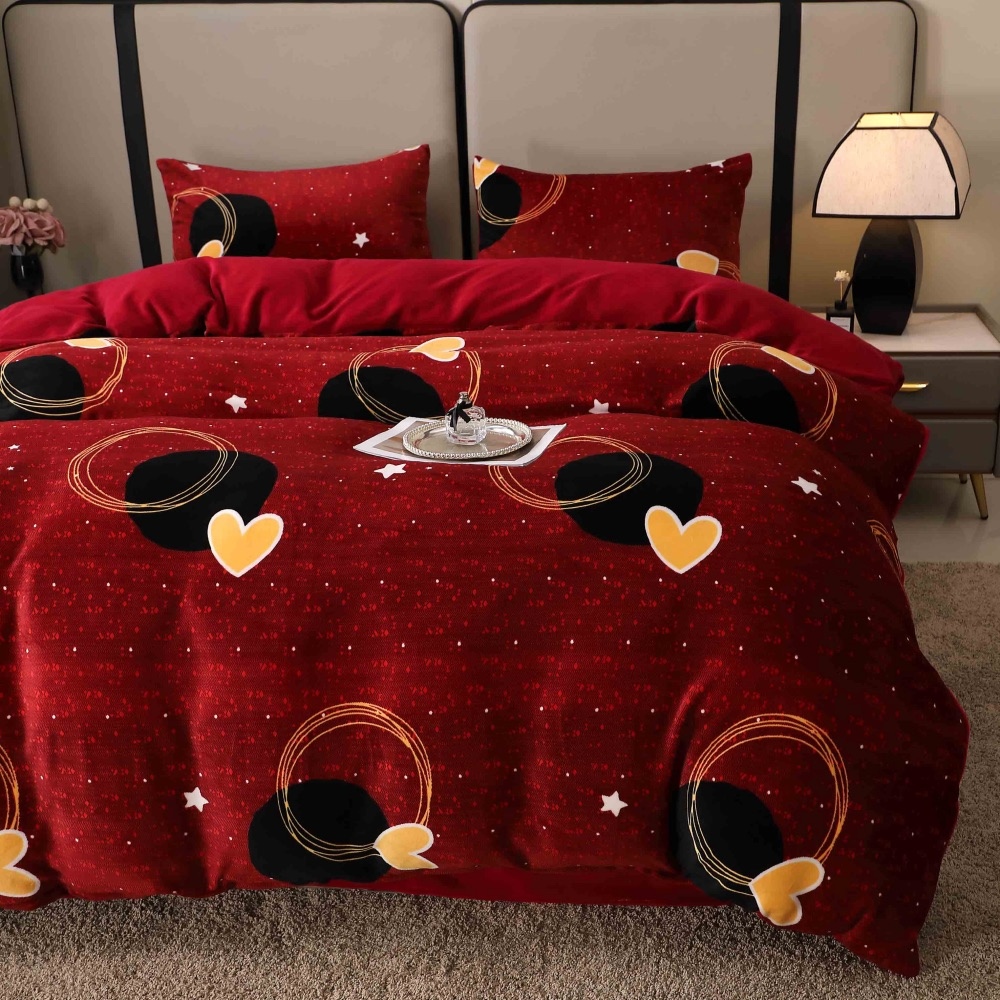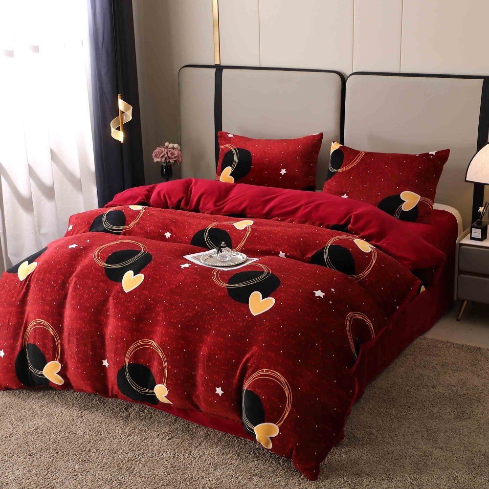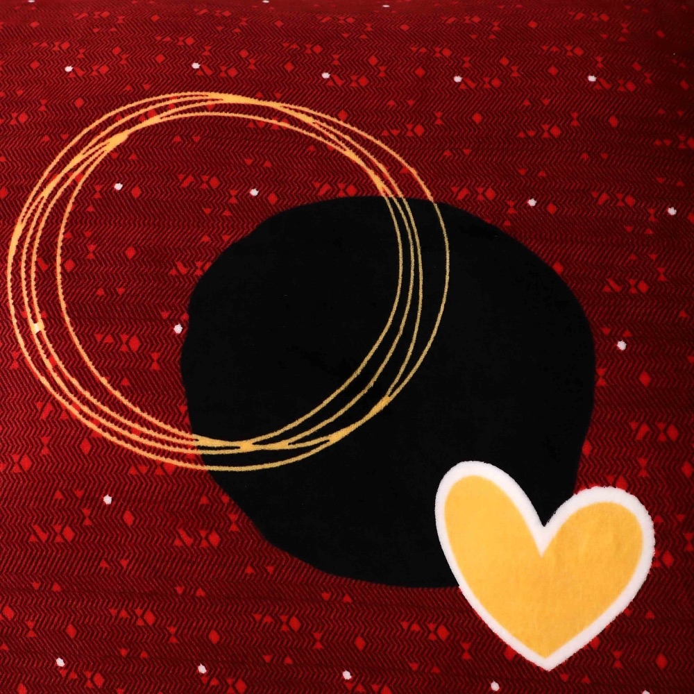 Lenjerie pat dublu, Super Pufoasa COCOLINO, 4 piese, Rosu Grena, inimioare