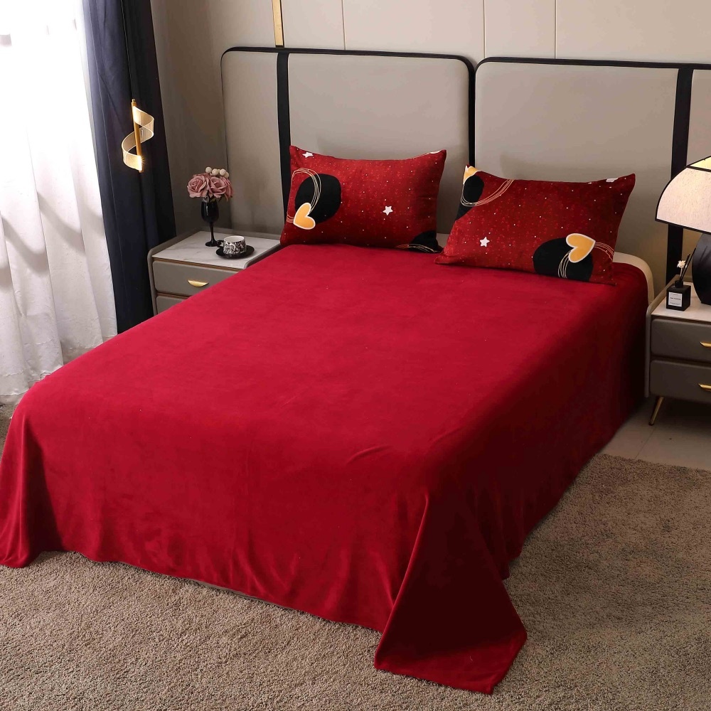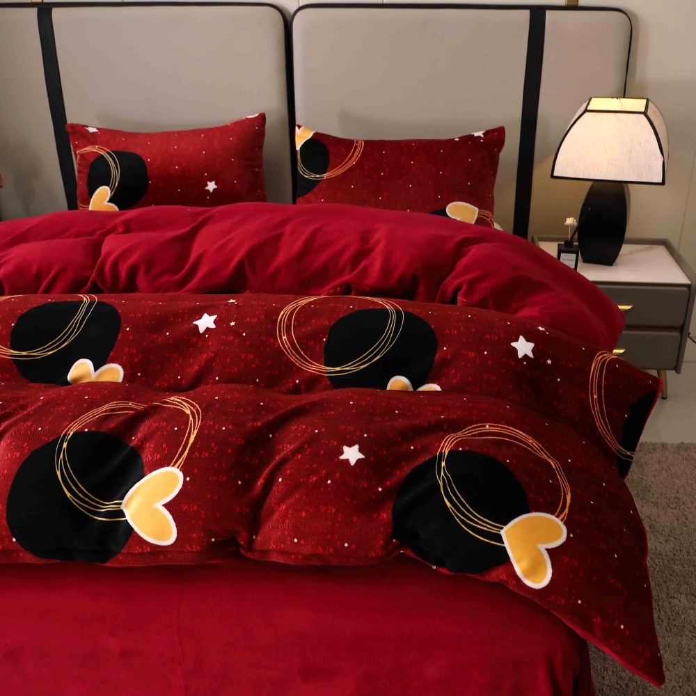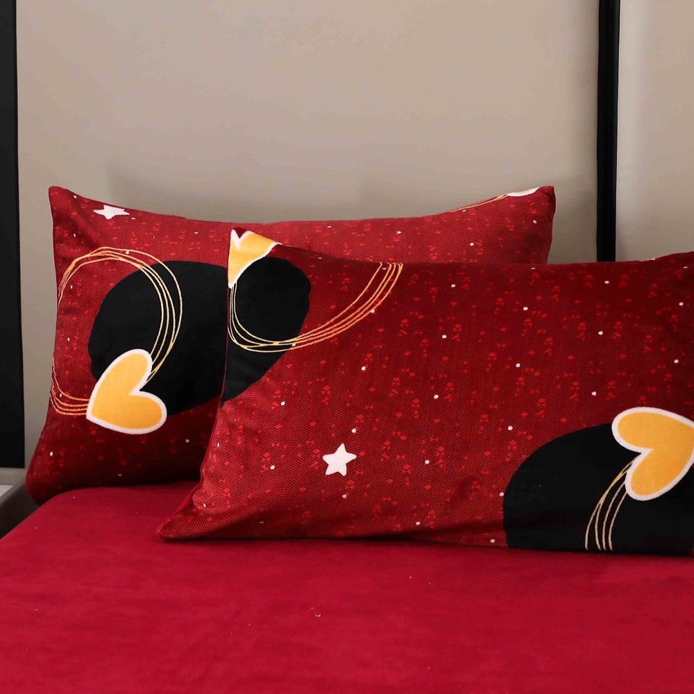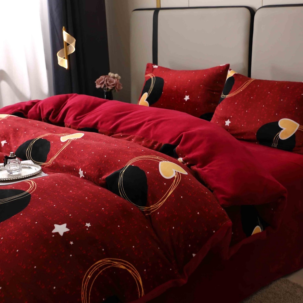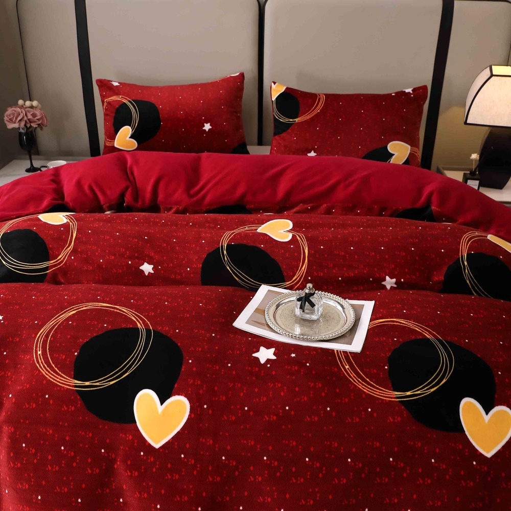 Lenjerie pat dublu, Super Pufoasa COCOLINO, 4 piese, Rosu Grena, inimioare