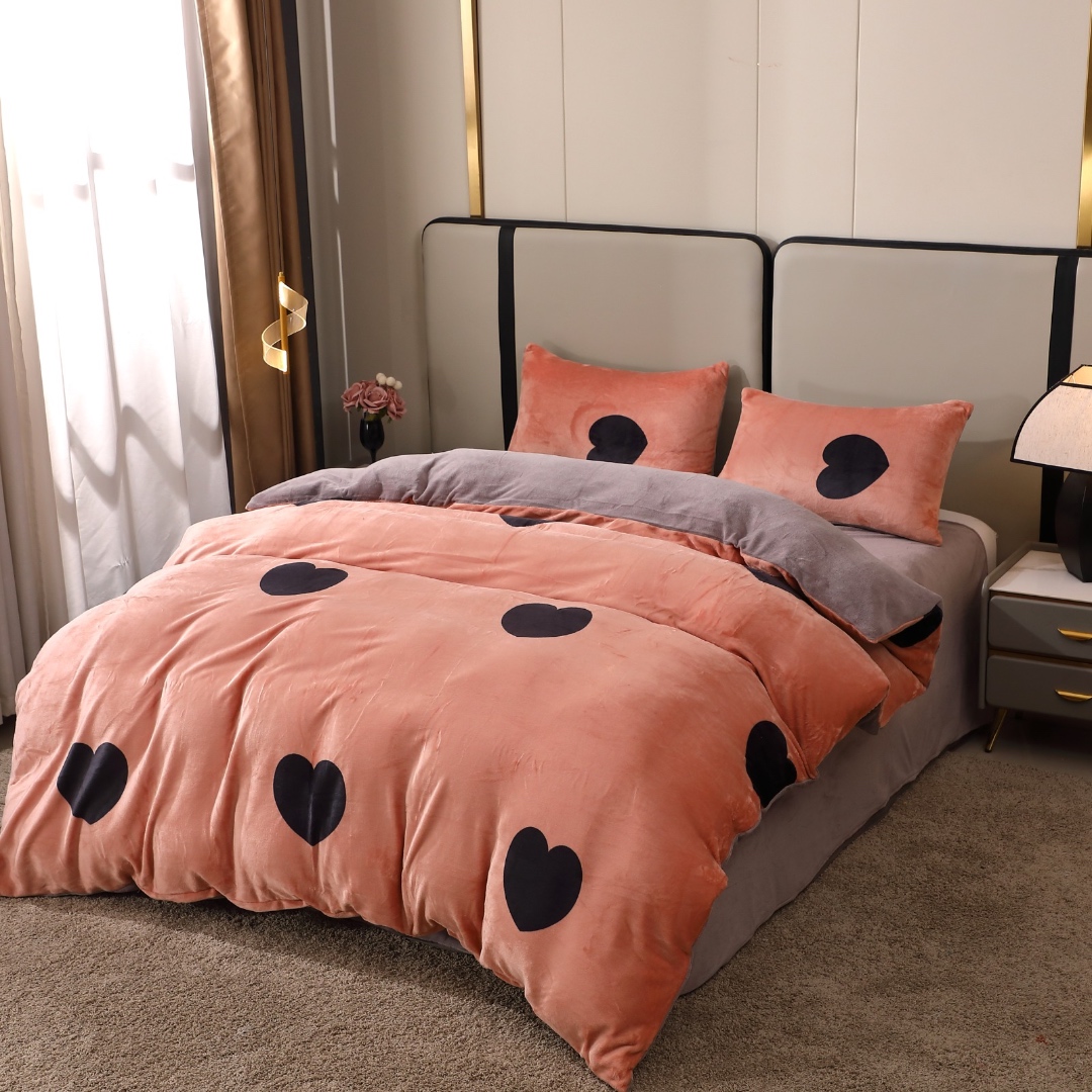 Lenjerie pat dublu, Super Pufoasa COCOLINO, 4 piese, Roz prafuit, inimioare