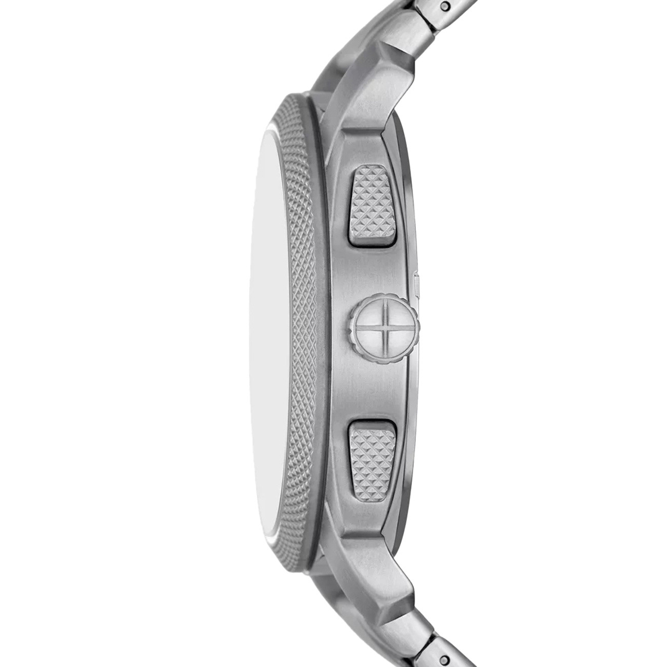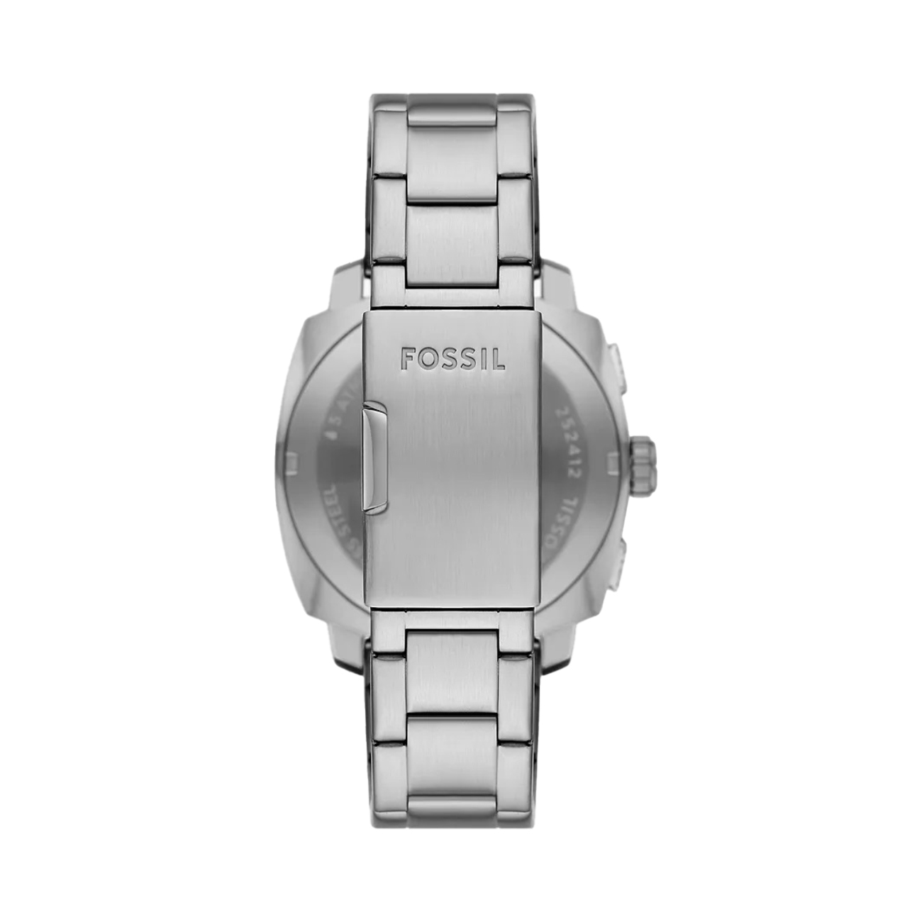 Fossil este un brand cunoscut pentru producerea și distribuirea de ceasuri la modă și de înaltă calitate în întreaga lume. Brand-ul își pune amprenta asupra bijuteriilor și ceasurilor create prin calitate, stil și creativitate. Inspirat de estetica mașinăriilor clasice americane, Machine Chronograph impresionează printr-un design puternic, cu accente industriale. Inelul zimțat impunător și carcasa robustă de 44 mm conferă ceasului un aspect indiscutabil masculin și dominator. Cadranul albastru periat, cu detalii texturate și bine definite, este protejat de un geam din cristal mineral și găzduiește un mecanism cronograf cu quartz de înaltă precizie – un echilibru perfect între formă și funcție. Brățara solidă din oțel inoxidabil adaugă durabilitate și subliniază caracterul puternic al ceasului.