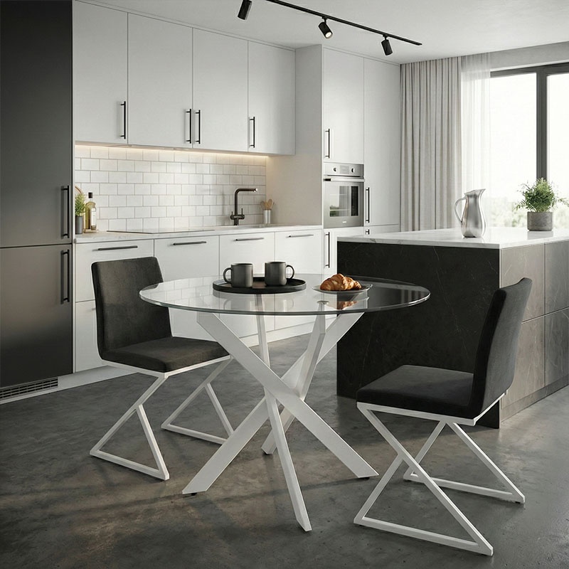 Masă Antoro, Transparent/Alb, 100x100x75 cm Descoperă eleganța modernă cu masa Antoro, o piesă de mobilier care îmbină sticla și metalul pentru a aduce un plus de stil și rafinament în orice spațiu. Ideală atât pentru locuința ta, cât și pentru spațiile profesionale, această masă impresionează prin designul său abstract și estetica minimalistă. Caracteristici cheie: Materiale premium: Blatul mesei este realizat din sticlă transparentă de înaltă calitate, oferind un aspect sofisticat și modern. Structură rezistentă: Cadrul metalic întărit asigură o rezistență excepțională la greutate și uzură, garantând durabilitate în timp. Design modern: Disponibilă în culoarea albă, masa se integrează perfect în decoruri contemporane. Dimensiuni produs: Lungime: 100 cm Lățime: 100 cm Înălțime: 75 cm Note de utilizare: Produsul este livrat neasamblat, ambalat în condiții de siguranță direct de la fabrică. Ghidul detaliat de asamblare inclus facilitează montajul rapid și eficient. Vă rugăm să rețineți că nuanța culorii produsului poate varia ușor față de reprezentarea fotografică de pe ecranul dumneavoastră. Masa Antoro nu este doar o piesă de mobilier, ci o declarație de stil, perfectă pentru cei care apreciază designul contemporan și funcționalitatea deopotrivă.