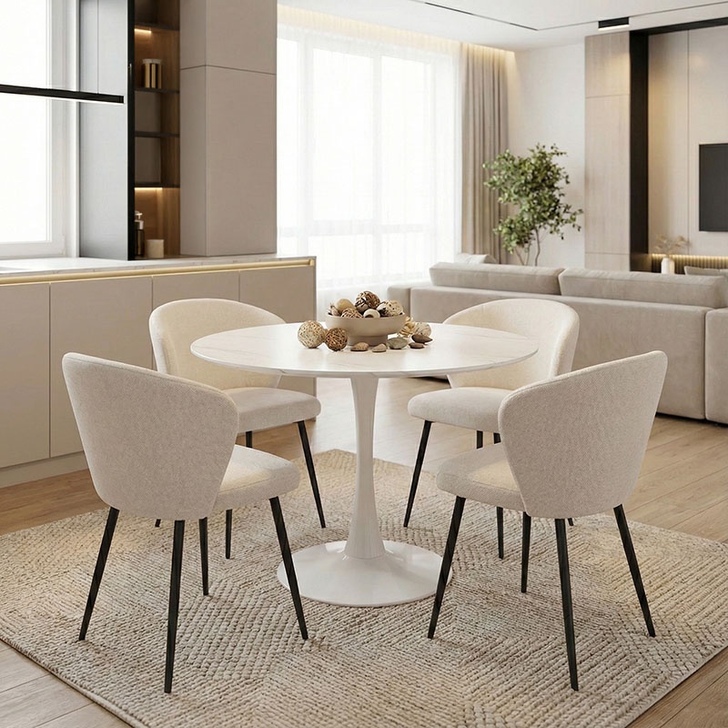 Masă Balou, alb, 100x100x73 cm Transformă-ți spațiul de locuit cu eleganța atemporală a mesei Balou, o piesă de mobilier care îmbină stilul sofisticat cu funcționalitatea practică. Ideală atât pentru utilizarea zilnică, cât și pentru ocazii speciale, această masă aduce un plus de rafinament oricărui interior modern sau clasic. Caracteristici cheie: Materiale de calitate: Fabricată din MDF de înaltă calitate, cu un finisaj de furnir din lemn cu efect de marmură, asigurând durabilitate și un aspect sofisticat. Design elegant: Disponibilă în culoarea albă cu un finisaj care imită marmura, adăugând un plus de stil și eleganță oricărui spațiu. Dimensiuni: Lungime: 100 cm, Lățime: 100 cm, Înălțime: 73 cm. Diametru bază: 60 cm. Cu un design rafinat și o construcție robustă, masa Balou este alegerea perfectă pentru cei care apreciază calitatea și estetica deosebită. Este ideală pentru a completa decorul sufrageriei sau al bucătăriei tale, oferind un spațiu generos pentru mese și întâlniri cu cei dragi. Informații suplimentare: Produsul este livrat neasamblat, în ambalajul original, alături de un ghid detaliat de asamblare pentru o montare ușoară și rapidă. Nuantele de culoare pot varia ușor față de reprezentarea fotografică, în funcție de setările ecranului. Cu masa Balou, aduci un plus de eleganță și lux în casa ta, fiind o piesă de mobilier care nu doar că îmbunătățește funcționalitatea spațiului, dar și completează armonios decorul existent.