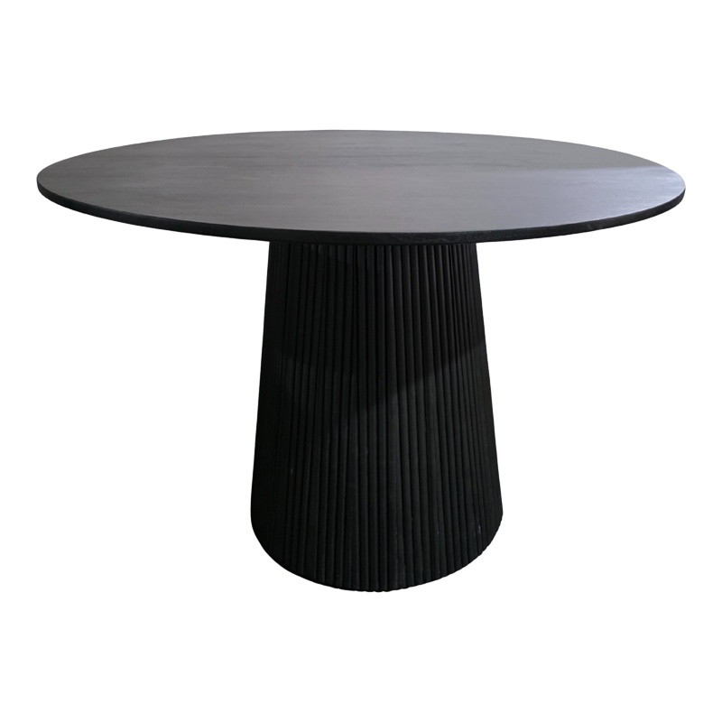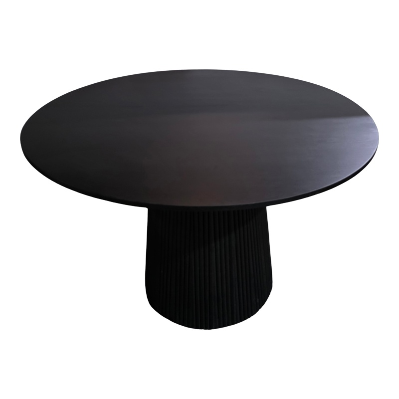 Masă Canicule, negru, 120x75 cm Căutați o masă care să îmbine eleganța, căldura lemnului și un design subtil, dar remarcabil? Masă Canicule este aici pentru a transforma sala de mese, bucătăria sau chiar biroul dumneavoastră! Caracteristici cheie Fabricată din lemn masiv de acacia, această masă aduce un plus de rafinament și funcționalitate în orice spațiu. Suprafața sa rotundă din lemn natural adaugă o notă de căldură și ospitalitate, iar finisajul neted îi evidențiază frumusețea naturală. Material: Lemn masiv de acacia, cunoscut pentru durabilitatea și rezistența sa. Eleganță atemporală: Designul său aduce un plus de stil și căldură în orice încăpere. Bază unică: Textura verticală cu caneluri adaugă profunzime și caracter, oferind un aspect modern fără a fi copleșitor. Design prietenos cu spațiul: Forma rotundă este ideală pentru spații mai mici, facilitând mișcarea și creând o atmosferă intimă pentru conversații și întâlniri. Culoare disponibilă: Negru. Dimensiuni produs Lungime: 120 cm Lățime: 120 cm Înălțime: 75 cm Informații despre material Lemn de acacia: Recunoscut pentru durabilitatea și frumusețea sa naturală, lemnul de acacia este ideal pentru mobilier și utilizări exterioare. Instrucțiuni de întreținere Lemn de acacia: Pentru a menține calitatea, se recomandă curățarea cu apă și săpun și aplicarea regulată a produselor de protecție a lemnului pentru a-i păstra aspectul natural și durabilitatea. Note suplimentare Produsul este livrat neasamblat, în ambalaj de fabrică, și include un ghid detaliat de asamblare. Tonul de culoare al produsului poate varia ușor față de cum apare pe ecranul dumneavoastră din cauza variațiilor de afișare. Imaginați-vă: Masă Canicule găzduind momentele de familie, cafeaua de dimineață sau chiar acele momente de inspirație în spațiul dumneavoastră de lucru. Faceți-o a dumneavoastră acum și oferiți spațiului atmosfera pe care o merită!