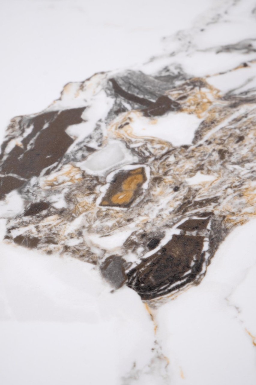 Masa de cafea Rosa cu blat de marmură albă este piesa ideală pentru un living sofisticat și modern. Designul său contemporan și finisajele premium o fac să iasă în evidență. Blatul în nuanța de marmură albă adaugă un plus de rafinament, oferind mesei Rosa o eleganță clasică și un aspect de lux. Dimensiuni: Diametru: 50 cm Înălțime: 59 cm Detalii tehnice: Sinterizat / oțel acoperit cu pulbere / oțel inoxidabil Culoare: Marmura albă / marmură gri / auriu Produsul nu este montat, este destinat pentru auto-asamblare. Instructiunile de montaj vin in colet.