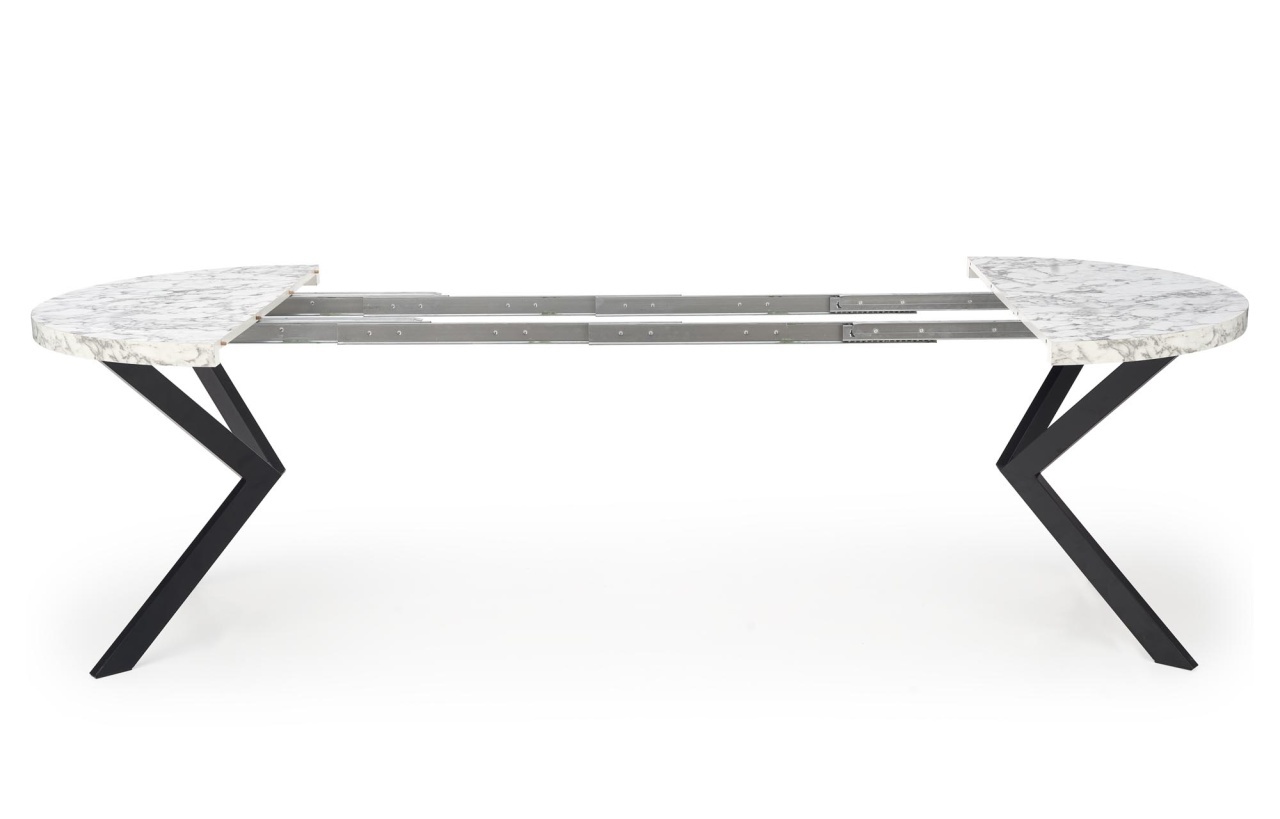 Masa extensibila Peroni are un un design simplu, fiind potrivita pentru interioarele moderne si clasice. Se integreaza perfect in livingul tau oferindu-i o nota de eleganta si spatiu suficient pentru mesele in familie. Este alegerea perfecta pentru cei care opteaza pentru un aspect glamour. Dimensiuni: Latime: 100 cm Lungime: 100-250 cm Inaltime: 75 cm Detalii tehnice: material : Metal / Furnir Culoare: Marmura alba / negru Scaunele din imaginile de prezentare nu sunt incluse in pret. Produsul nu este montat, este destinat pentru auto-asamblare. Instructiunile de montaj vin in colet.