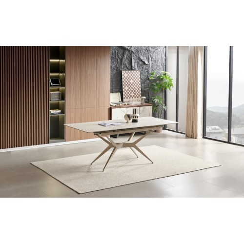 Masa extensibila Spectral 003 Dimensiuni: Lungime: 160 - 200 cm Latime: 90 cm Inaltime: 76 cm Materiale: Cadru: Fier vopsit gri Blat: Piatra sinterizata cu grosimea de 12 mm de culoare Travertin Alb Mat Ce este piatra sinterizata? Piatra sinterizata este un material inovator, obtinut printr-un proces avansat de sinterizare a mineralelor naturale. Piatra sinterizată este fabricată printr-un proces de sinterizare care implică presiuni și temperaturi foarte ridicate, rezultând un material extrem de durabil și rezistent la uzură. Aceasta poate rezista la fluctuații extreme de temperatură, îngheț-dezgheț și la abraziune, făcând-o ideală pentru zonele cu trafic intens. Avantajele pietrei sinterizate: # Foarte rezistentă la zgârieturi: rezistentă la pete și zgârieturi datorită durității materialului. Cea mai rezistentă suprafață la zgârieturi de pe piață. # Complet natural: fără rășini. Nu eliberează nicio substanță nocivă în mediu. # Rezistentă la gheață și îngheț: temperaturile de îngheț nu afectează rezistența sau durabilitatea. # Rezistentă la razele UV: având în vedere că culoarea este 100% naturală, nu se deteriorează datorită expunerii la soare sau temperatură. # Ușor de curățat: doar apă și săpun sunt necesare. # Rezistentă la îndoire: capabil să suporte presiuni și greutăți mari. # Rezistență înaltă la foc și căldură: nu arde în contact cu focul, nu se decolorează, nu se crapă, nu degajă fum și substanțe toxice. # Întreținere redusă: rezistent la agenții chimici de curățare datorită proprietăților neporoase. # Igienic: complet adecvat pentru contactul cu alimentele. Nu adăpostește bacterii.