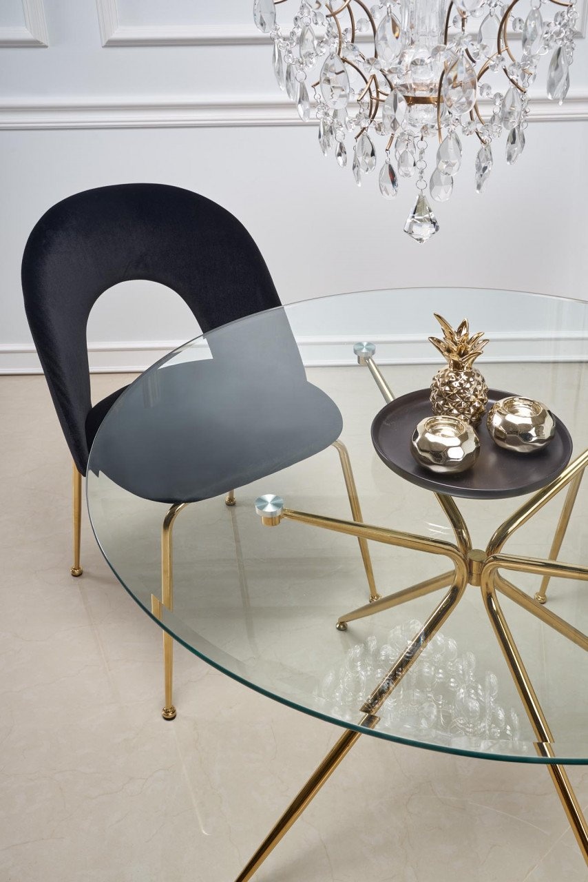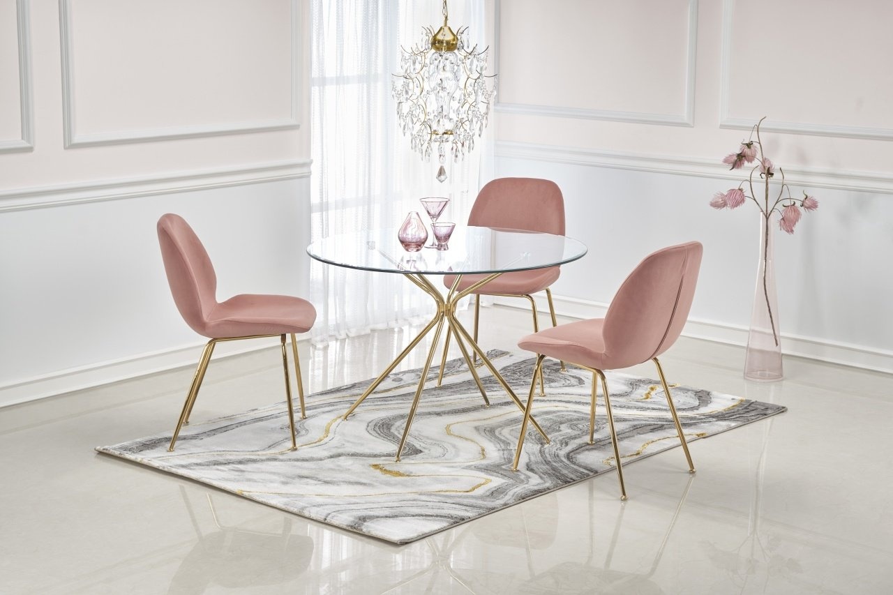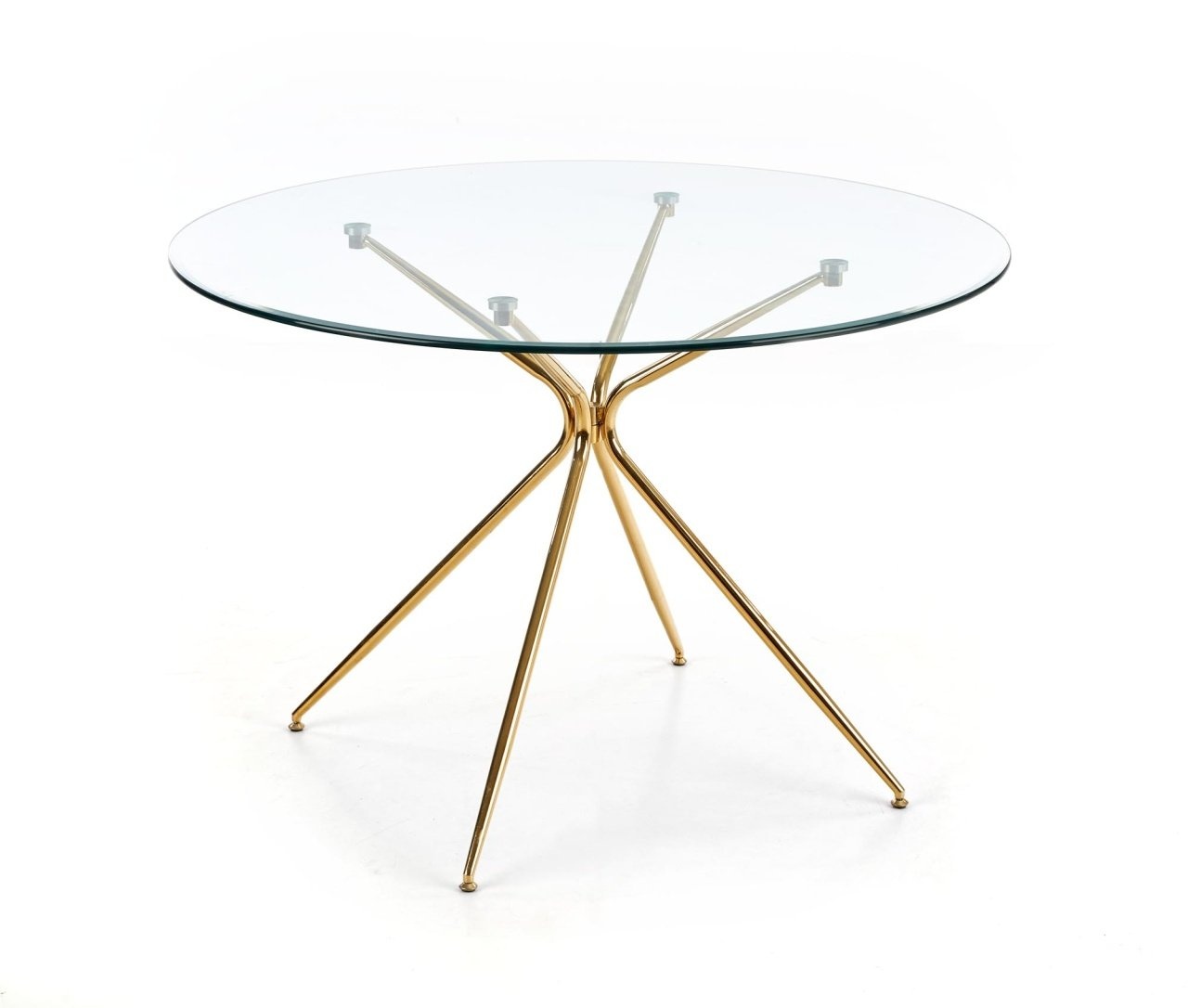 Masa Rondo Descriere: Masa Rondo are un aer aparte, un design simplu fiind potrivita pentru interioarele moderne si clasice. Se integreaza perfect in livingul dumneavoastra oferindu-i o nota de eleganta si spatiu suficient. Partea superioara este realizata din sticla, pe o structura de otel cromat auriu. Designul mesei care incorporeaza sticla si otelul ofera acesteia eleganta. Forma sa simpla nu va coplesi bucataria sau sala de mese unde va sta, ci ii va oferi o nota distincta. Dimensiuni: Diametru: 110 cm Inaltime: 74 cm Culoare: Sticla / Cromat auriu Produsul nu este montat. Instructiunile de montaj se gasesc in colet.