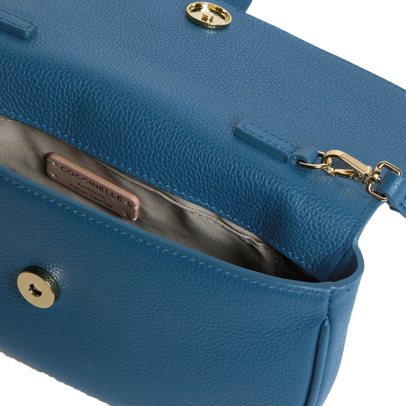 Mavery îmbină eleganța curbelor cu armonia liniilor fluide, într-un minibag creat pentru femeia care care apreciază rafinamentul discret. Detaliul frontal inspirat din universul selleriei, accentuat de două elemente metalice luminoase, adaugă o notă prețioasă și distinctivă. Realizată din piele micro-grained, prelucrată specială pentru a-și păstra suplețea și rezistența, geanta este robustă, ușor de întreținut și perfectă pentru utilizare zilnică. Are clapetă cu închidere magnetică, buzunar interior și o baretă ajustabilă și detașabilă, ideală pentru purtarea crossbody. Finisajele light gold și logo-ul ștampilat completează un design modern, chic și funcțional — accesoriul perfect pentru orice ocazie.