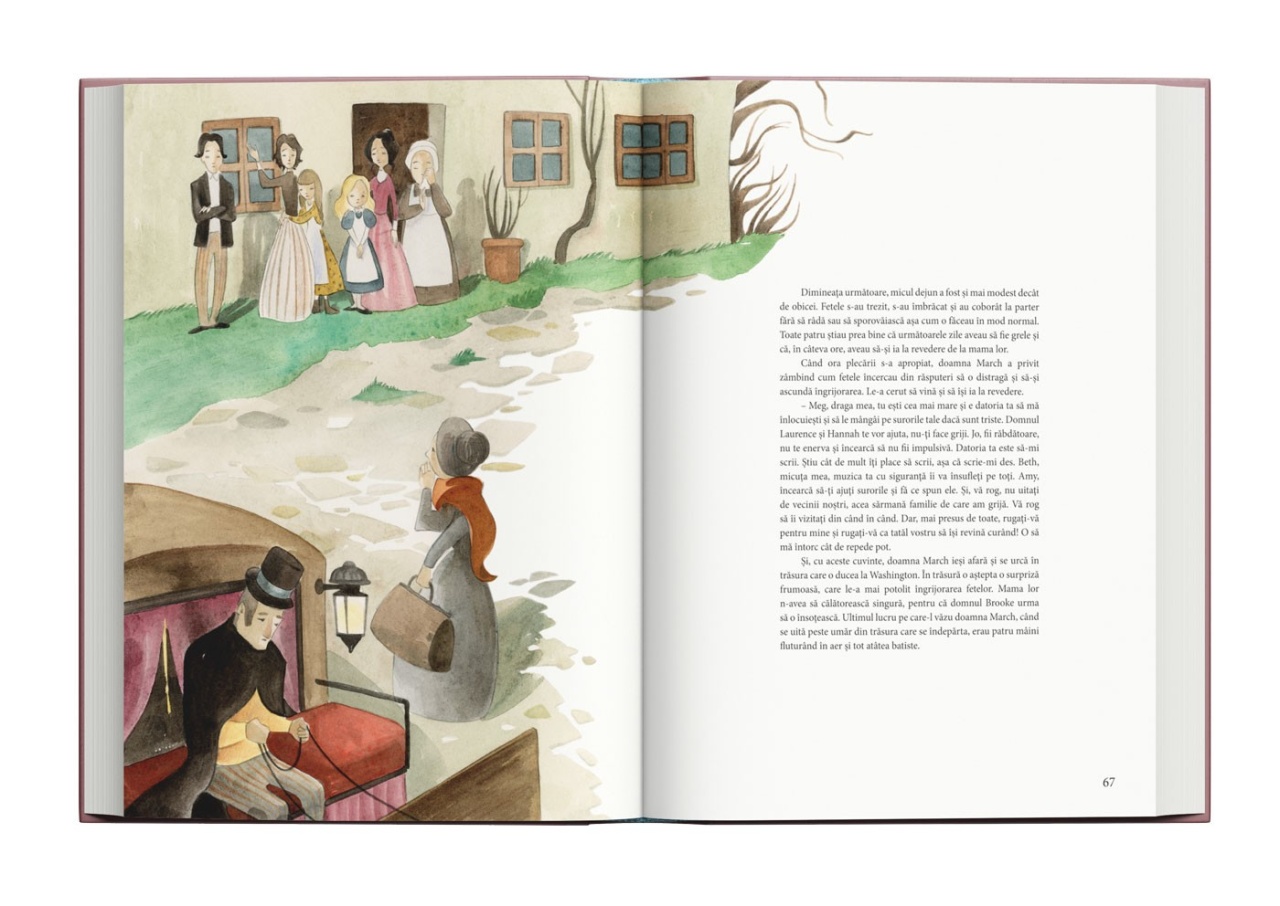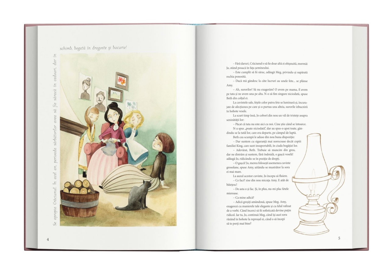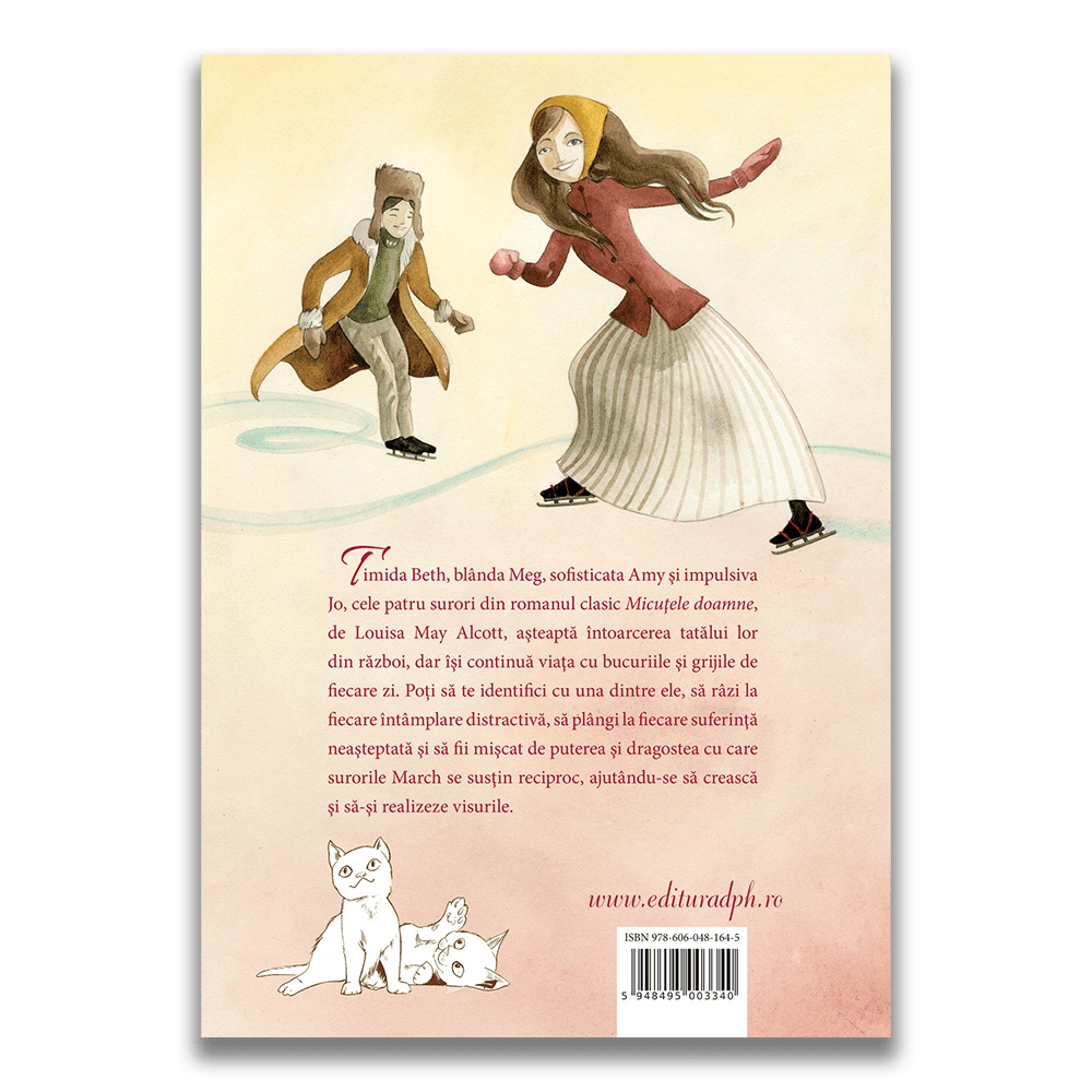 De când a fost scrisă în 1868, Micuțele doamne a Louisei May Alcott a încântat tinerii cititori, care se identifică cu personalitățile realiste și pline de viață ale celor patru surori March. Crescând pe măsură ce Războiul Civil se dezlănțuie, cele 4 surori se confruntă cu provocările și dificultățile vieții. Timida Beth, blânda Meg, sofisticata Amy și impulsiva Jo așteaptă întoarcerea tatălui lor din război, dar în același timp își continuă viața cu bucuriile și grijile de fiecare zi. Poți să te identifici cu una dintre ele, să râzi la fiecare întâmplare distractivă, să plângi la fiecare suferință neașteptată și să fii mișcat de puterea și dragostea cu care surorile March se susțin reciproc, ajutându-se să crească și să-și realizeze visurile. Cartea Micuțele doamne este o lectură plăcută, plină de învățături, pe care oricine ar trebui să o citească. Ilustrațiile minunate ale Francescăi Rossi sunt perfecte și vă fac să pătrundeți în lumea contemporană. DESPRE AUTOR: Louisa May Alcott a fost romancieră, scriitoare de nuvele și poetă, cunoscută mai ales pentru romanul „Little Women” (1868) și continuările sale, „Little Men” (1871) și „Jos Boys” (1886). Alcott a fost aboliționistă și feministă și nu s-a căsătorit niciodată. Toată viața a fost activă în mișcări de reformă precum cumpătarea și votul femeilor. Francesca Rossi - născută în 1983, a absolvit International School of Comics în Florenţa. Publică diverse cărţi ilustrate la diferite edituri italiene şi ilustrează coperţi şi afişe. Pe lângă ilustraţii, oferă workshopuri educaţionale în şcoli şi biblioteci şi sculptează şi decorează ceramică. În ultimii ani, Rossi a ilustrat mai multe cărţi pentru White Star Kids, precum Ocolul pământului în 80 de zile, 20 000 de leghe sub mări, Călătoriile lui Gulliver, Insula comorii, din aceeași serie ca și această carte. Caracteristici: După capodopera Louisei May Alcott; Ilustrații: Francesca Rossi; Vârsta: 6 ani +; Pagini: 96; Mărimi: 21 x 29 cm; Copertă: cartonată.