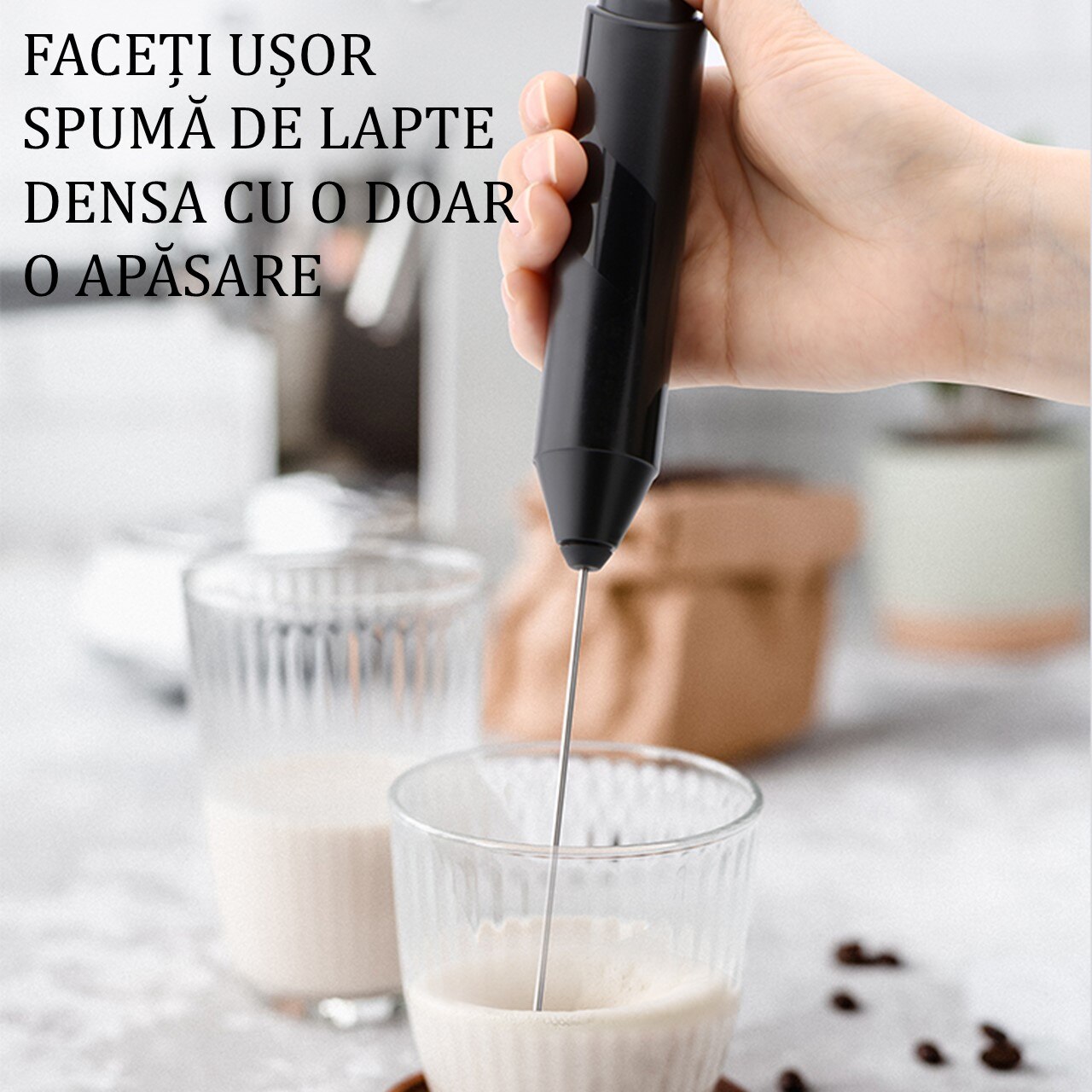 Mixer pentru spuma de lapte pentru cafea Aparatul pentru spumarea laptelui nu trebuie sa lipseasca din bucataria unui iubitor de cafea! Fie ca preferati cafeaua cu lapte, cappucino, frappe sau vreti sa preparati o ciocolata calda cremoasa copiilor, aparatul Fomini de la Caso Germany va fi ajutorul de nadejde. Simplu, rapid si usor de curatat! Aparatul spumeaza lapte cald sau rece rapid si fara a fi nevoie sa fie conectat la o priza. Dispozitivul functioneaza cu 2 baterii AA care NU sunt incluse! Veti putea pregati cafeaua late preferata chiar la dumneavoastra acasa si sa o serviti pe terasa sau balcon in fiecare dimineata. Se poate folosi si la maioneza, oua, caffe latte, ciocolata calda, cappuccino. Aparat pentru spuma de lapte Dimensiune: 21,5 cm x 5 cm Functioneaza cu 2 baterii AA (nu sunt incluse) Nu se foloseste in masina de spalat vase Ideal pentru bauturi calde sau reci Maner izolat termic Suport inclus - DA Rotatii pe minut: 10.000