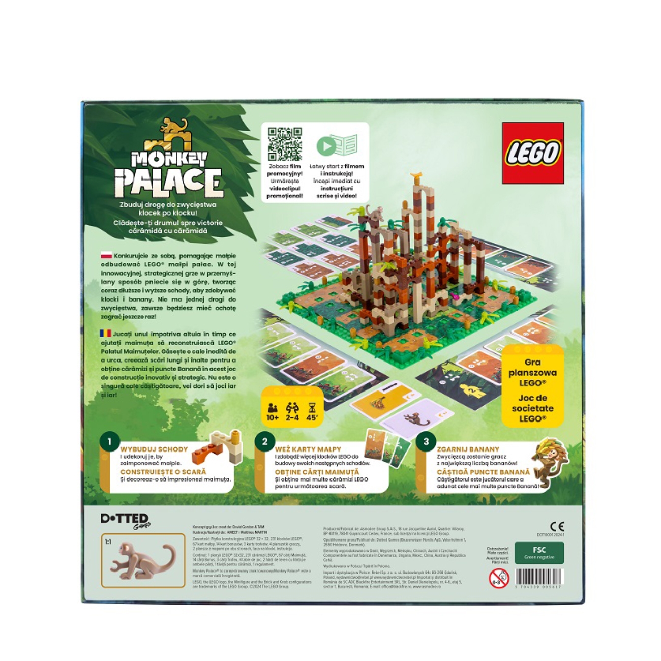Jocul de societate LEGO Monkey Palace oferă o experiență captivantă de construcție și strategie, în care jucătorii își unesc forțele pentru a ridica palatul maimuțelor, cărămidă cu cărămidă. Participanții trebuie să adune piese, să construiască trepte și să obțină puncte Banana pentru a ajunge primii în vârful palatului. Ideal pentru 2–4 jucători, acest joc dezvoltă gândirea logică și spiritul de echipă, oferind ore întregi de distracție creativă.