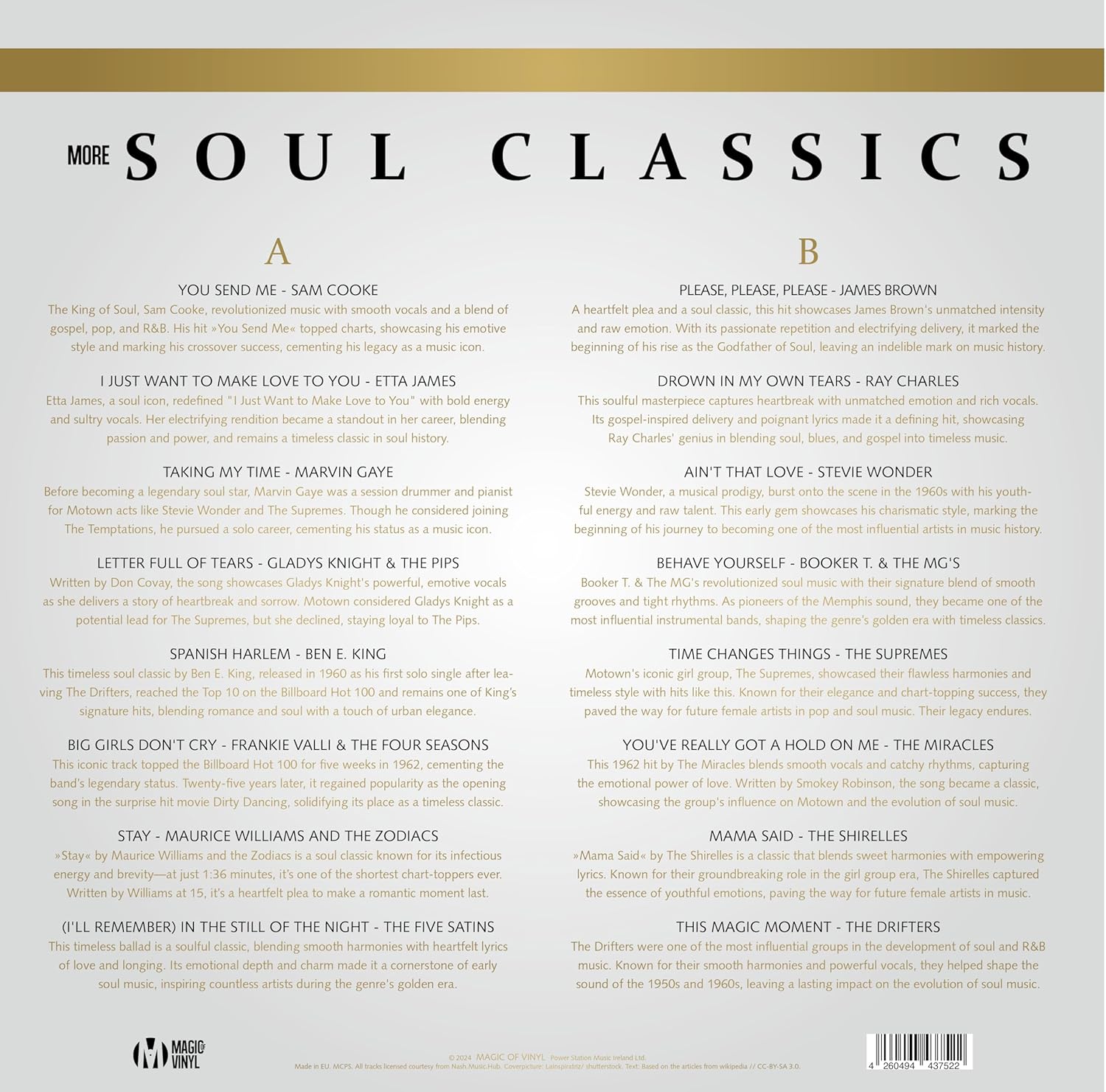 Side A:You Send Me - Sam CookeI Just Want to Make Love to You - Etta JamesTaking My Time - Marvin GayeLetter Full of Tears - Gladys Knight & The Pips Spanish Harlem - Ben E. KingBig Girls Don‘t Cry - Frankie Valli & The Four SeasonsStay - Maurice Williams and the Zodiacs (I‘ll Remember) In The Still of the Night - The Five SatinsSide B:Please, Please, Please - James BrownDrown In My Own Tears - Ray CharlesAin‘t That Love - Stevie WonderBehave Yourself - Booker T. & The MG‘s Time Changes Things - The SupremesYou‘ve Really Got a Hold On Me - The MiraclesMama Said - The Shirelles This Magic Moment - The Drifters