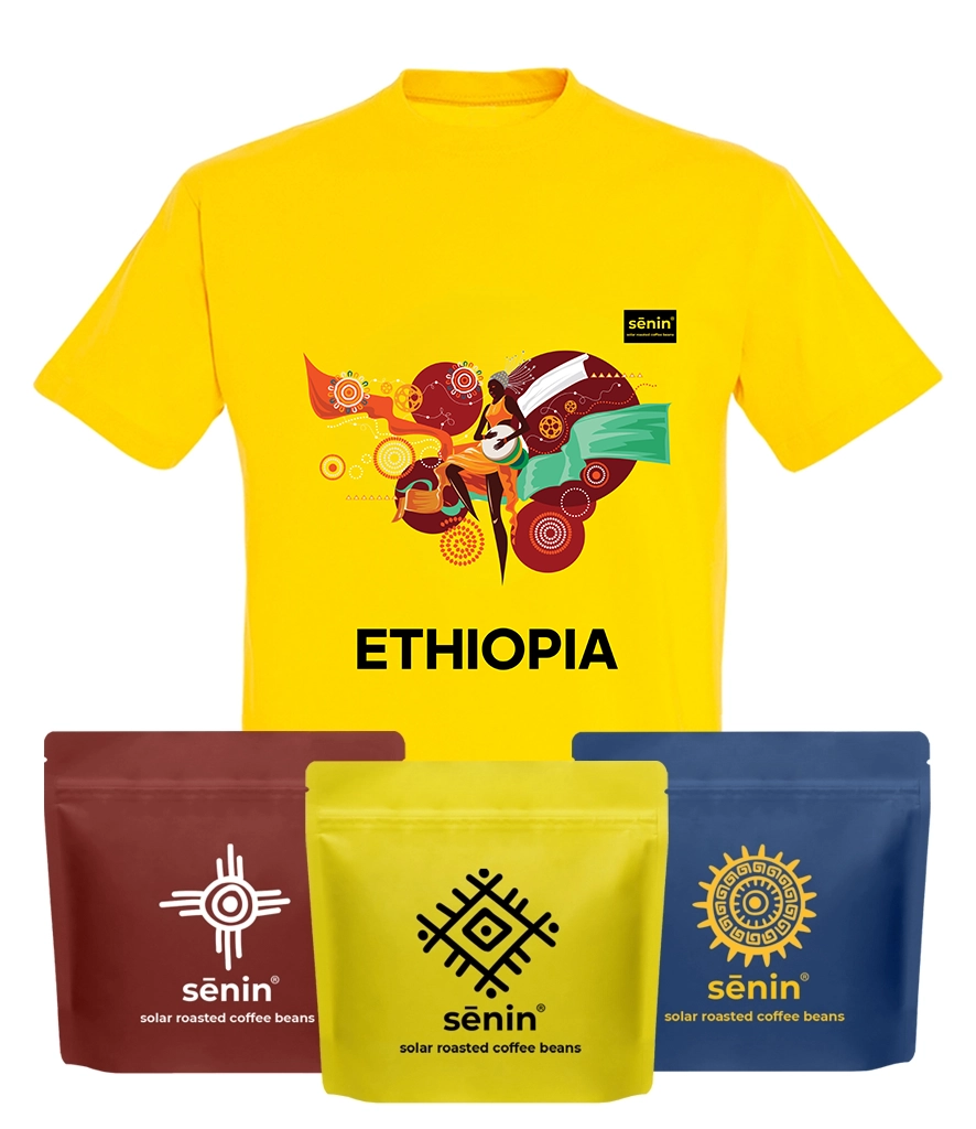 Pachet Cafea boabe Senin + Tricou Senin CADOU XL, Solar, Galben