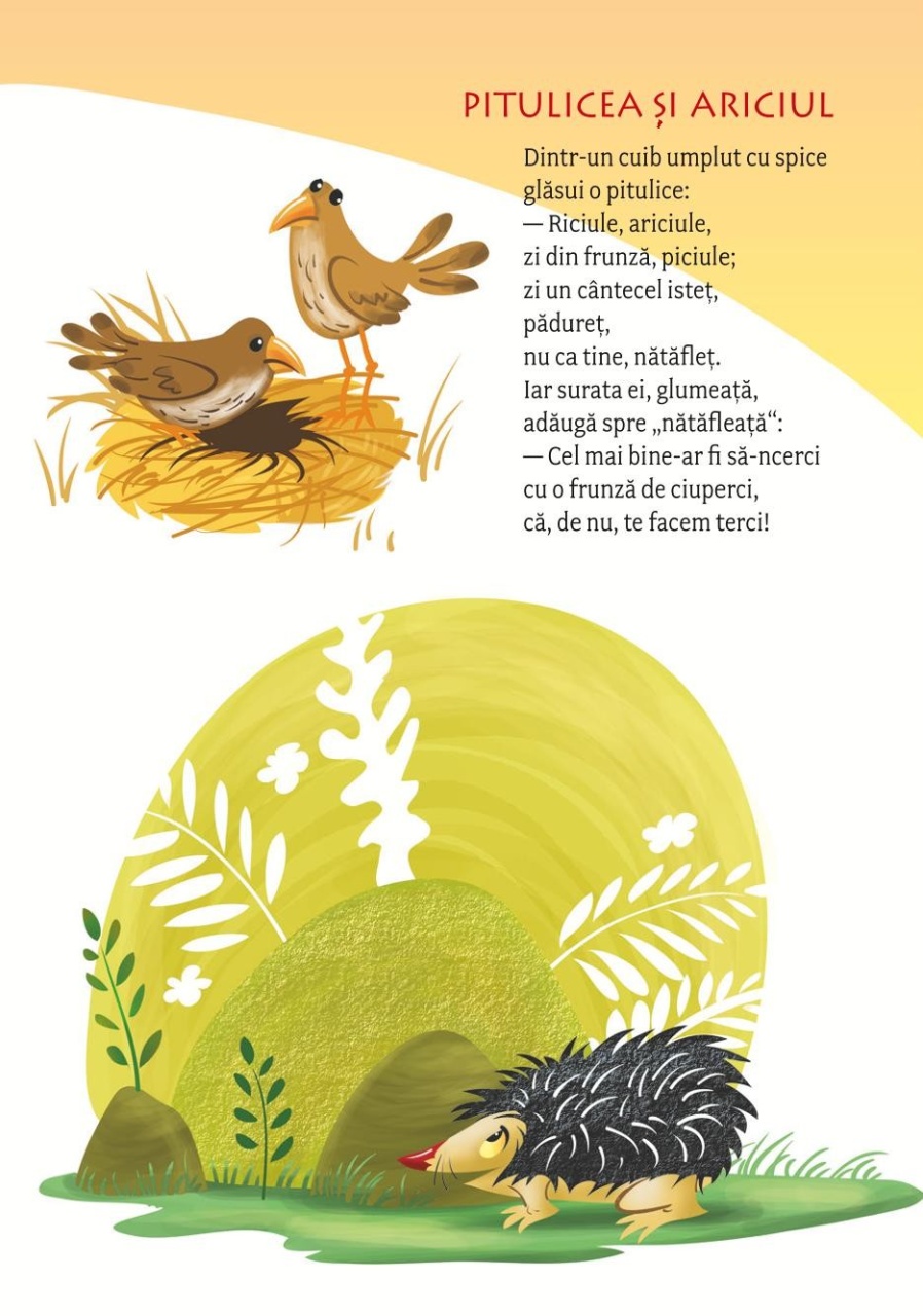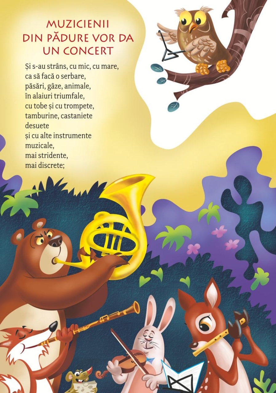 Orchestra din pădure – o încântătoare carte cu poezii, ilustrată într-un mod absolut minunat, se adresează tuturor copiilor cu vârstele peste 4 ani. În această carte autorul ne ajută să descoperim animalele și ne arată petrecerea pe care o pot da acestea în pădure. “Lupul și-a schimbat năravul, mititelul și firavul: Nu mai dă iama prin oi, suflă-ntruna în cimpoi. Nu-ți mai vine să-l mai scuturi, că în jurul lui sunt fluturi; Și s-a-ncins o horă mare de berbeci și de mioare.” DESPRE AUTOR: Serban Andreescu este ilustrator român de carte pentru copii și bandă desenată. Se ocupă de grafică publicitară și desenează în manieră clasică sau la computer. Printre cărțile ilustrate de acesta amintim 40 de fabule romanești, Mitologia românească – antologie și Micuța Alexia și nu-poții ei, apărute la Editura Didactica Publishing House. Specificații Autor: Eugen Chirovici; Ilustrator: Șerban Andreescu; Vârsta: 4 ani+; Pagini: 32 pagini; Mărimi: 16,5 x 24,5 cm; Copertă: Necartonată.
