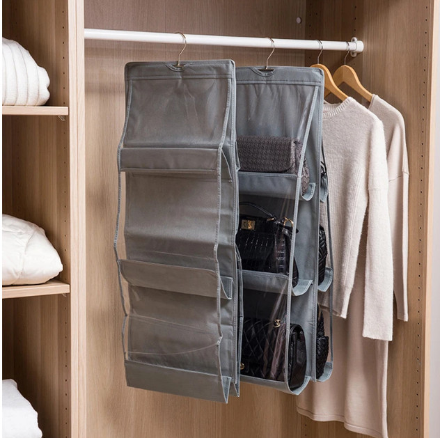 Detalii produs: Material: textil; 6 compartimente pentru depozitare genti; dimensiune: 90 x 16 x 35 cm;