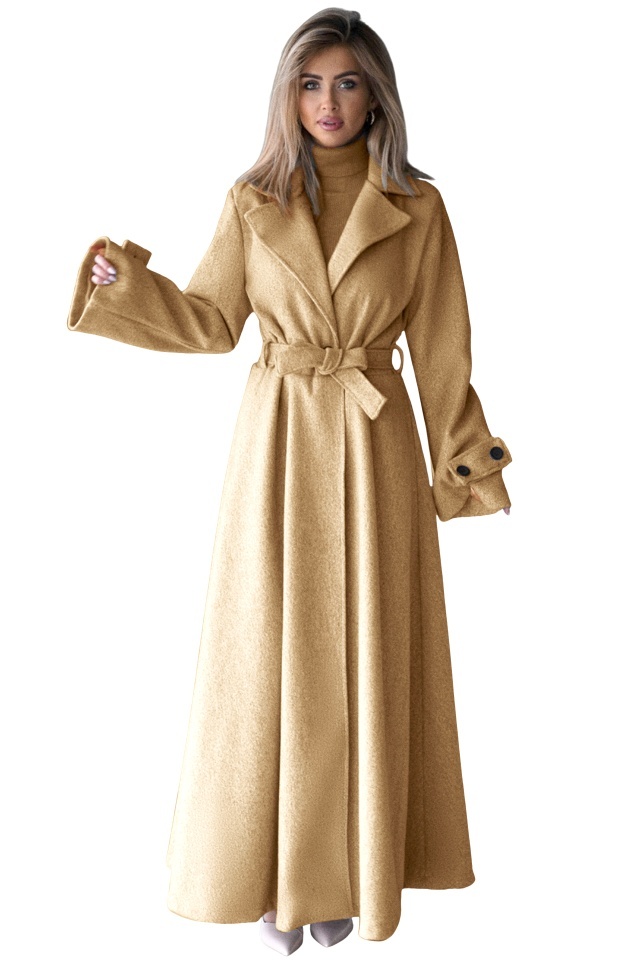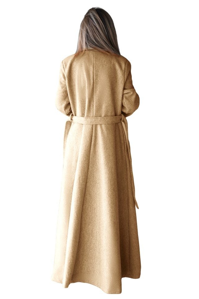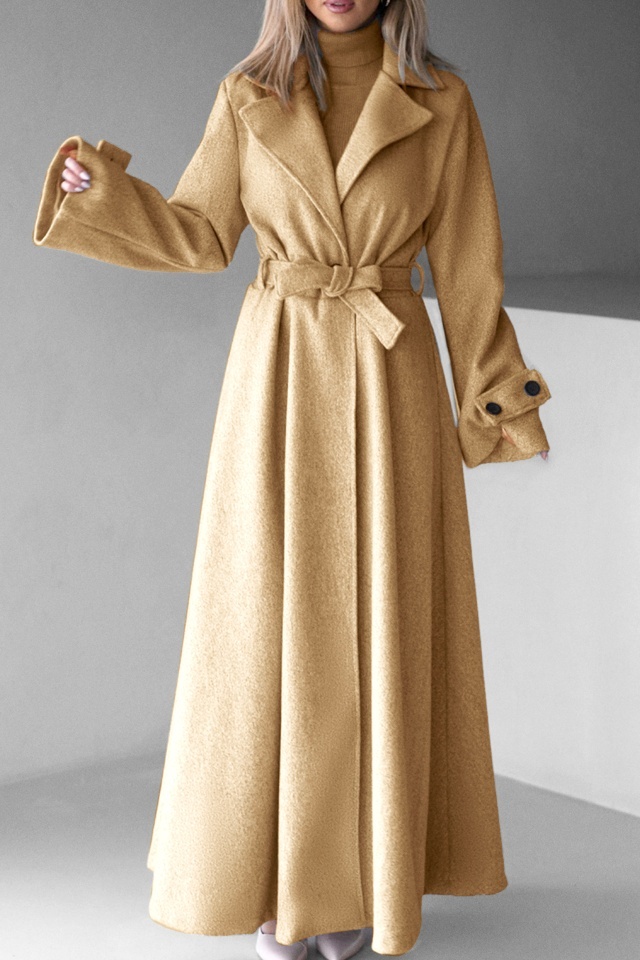 Palton lung cu nasturi Merina, falduri si cordon, Bej, Marime S/M