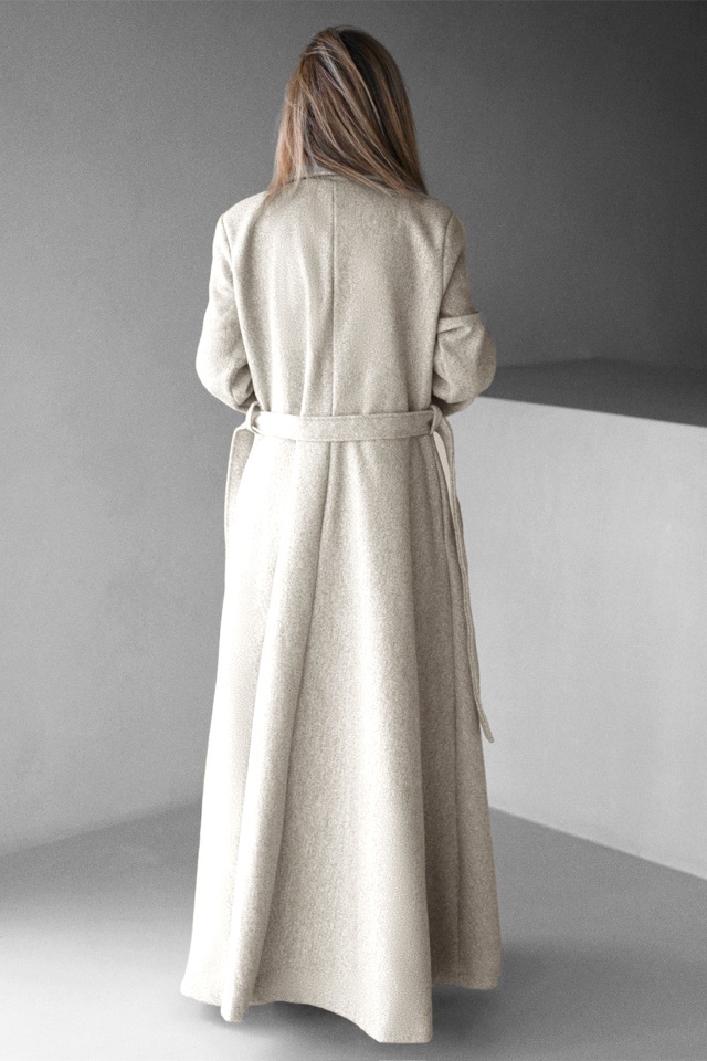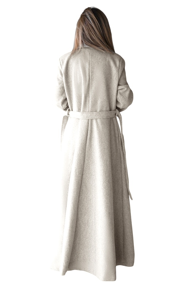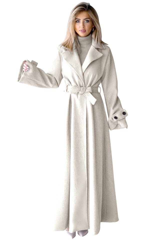 Palton lung cu nasturi Merina, falduri si cordon, Crem, Marime S/M