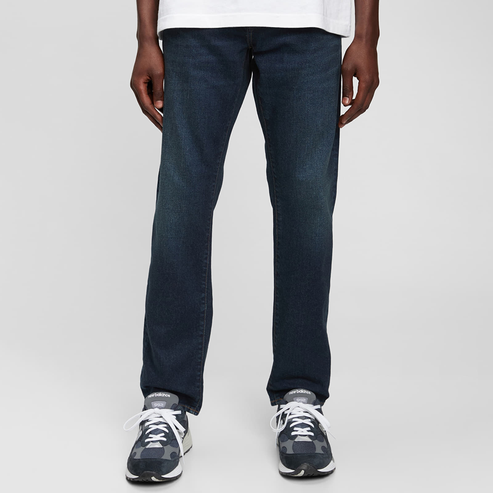 Pantaloni GAP Denim Pants Slim Straight Worn Dark pentru 359 lei. Cod produs: 709153-00, material: 94% Bumbac / 1% Elastan / 5% Bumbac reciclat