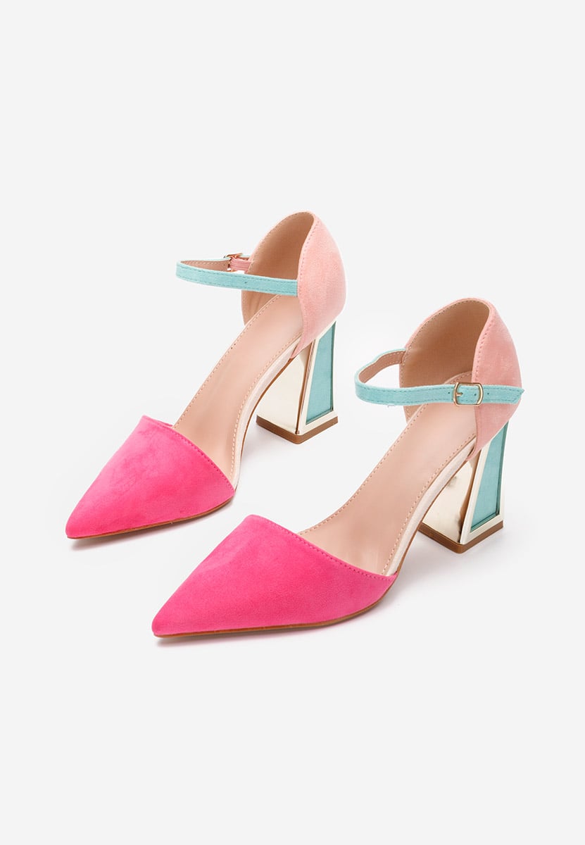 Pantofi dama engros, din material sintetic, culori combinate, toc gros cu inaltimea de 8.5cm