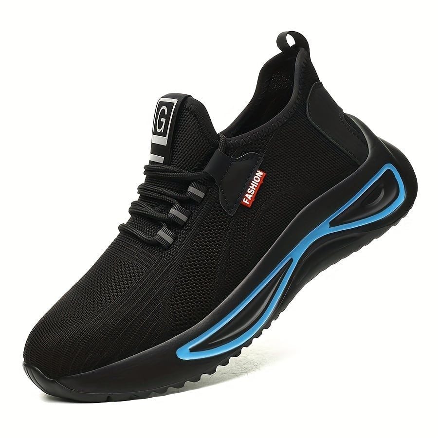 Pantofi de siguranță cu vârf din oțel și talpă anti-înțepare – model sport, negru cu albastru, TMXP128273
