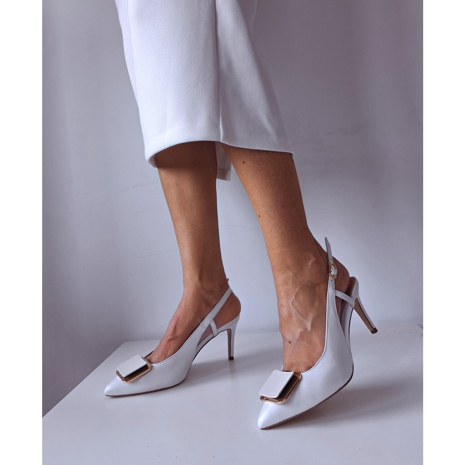 Pantofi de dama din piele naturala acesorizati cu capse aurii piramide Exterior : Piele naturala somon, bej roze Interior; Piele naturala Inaltime toc de 6.5 cm Brantul pantofilor este prevazut cu un buret special care ofera un plus de comoditate Pantofi produsi in Romania Producator: Garkony
